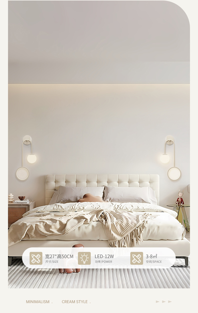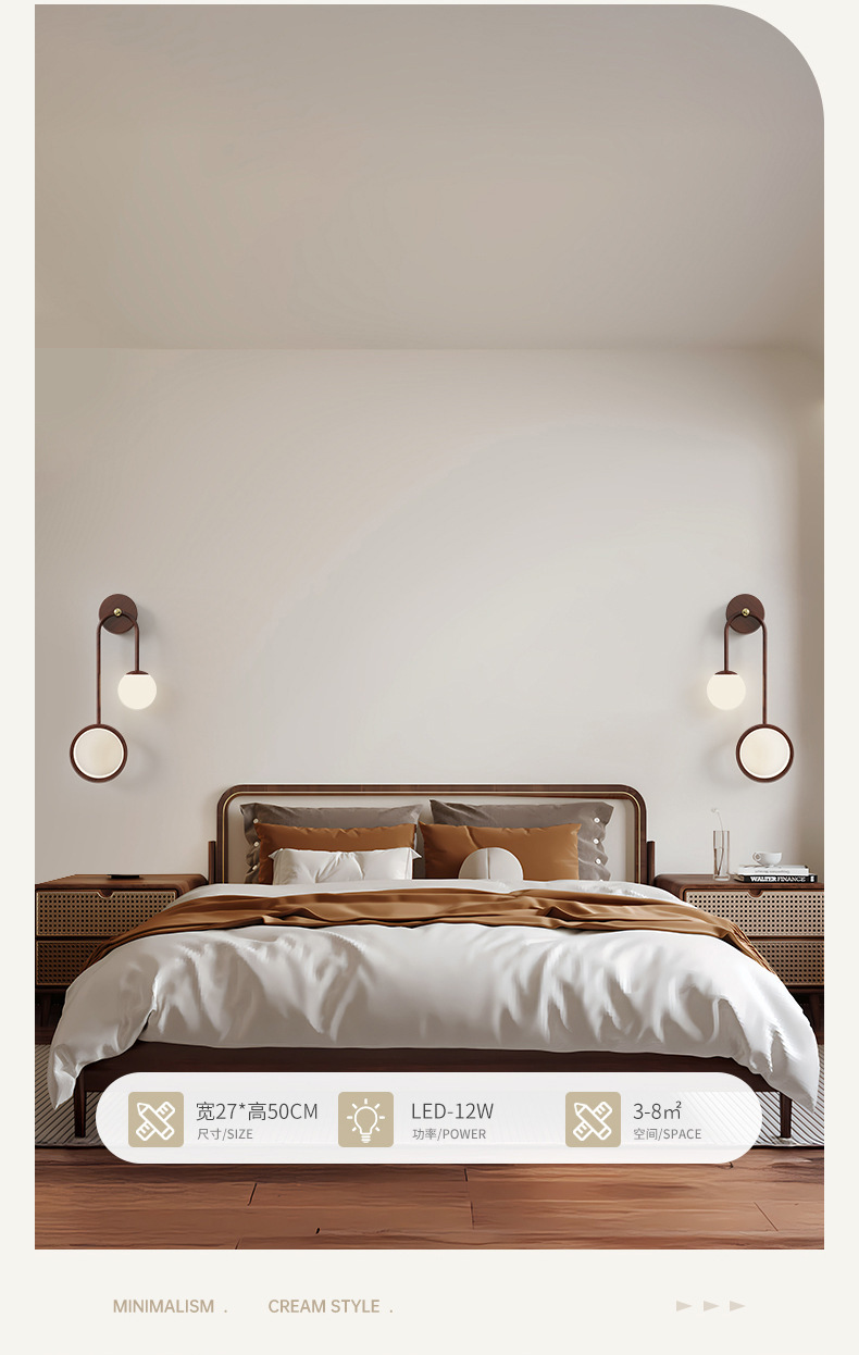 침대 옆 벽 램프 침실 크림 스타일 2025 새로운 분위기 램프 따뜻한 배경 벽 눈 보호 어린이 방 LED 램프스토어 가기