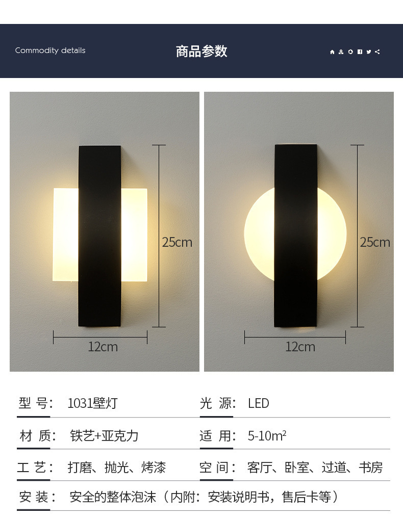 침대 옆 벽 램프 간단한 현대 창조적 인 홈 침실 램프 북유럽 인터넷 연예인 통로 복도 발코니 벽 조명스토어 가기