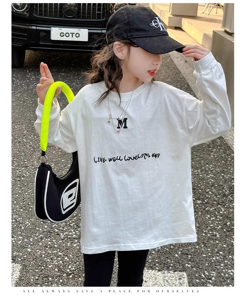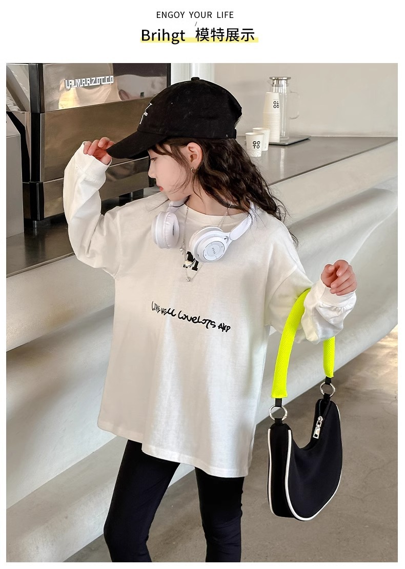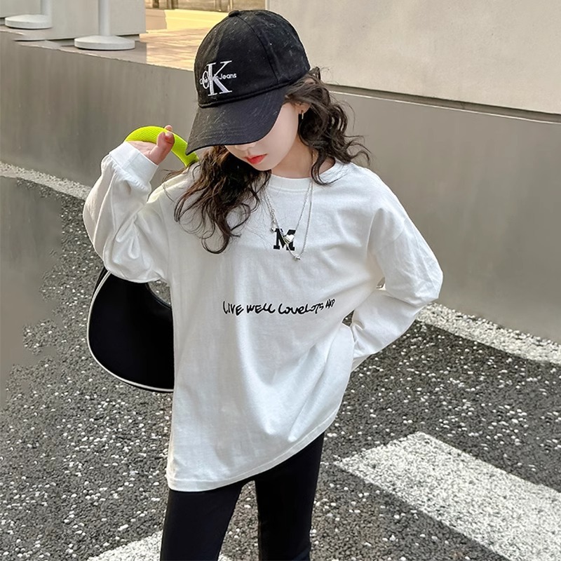 여아 티셔츠 긴팔 2025 봄 가을 새로운 스타일 아동용 바닥 셔츠 봄 의류 중대형 아동 캐주얼상의스토어 가기