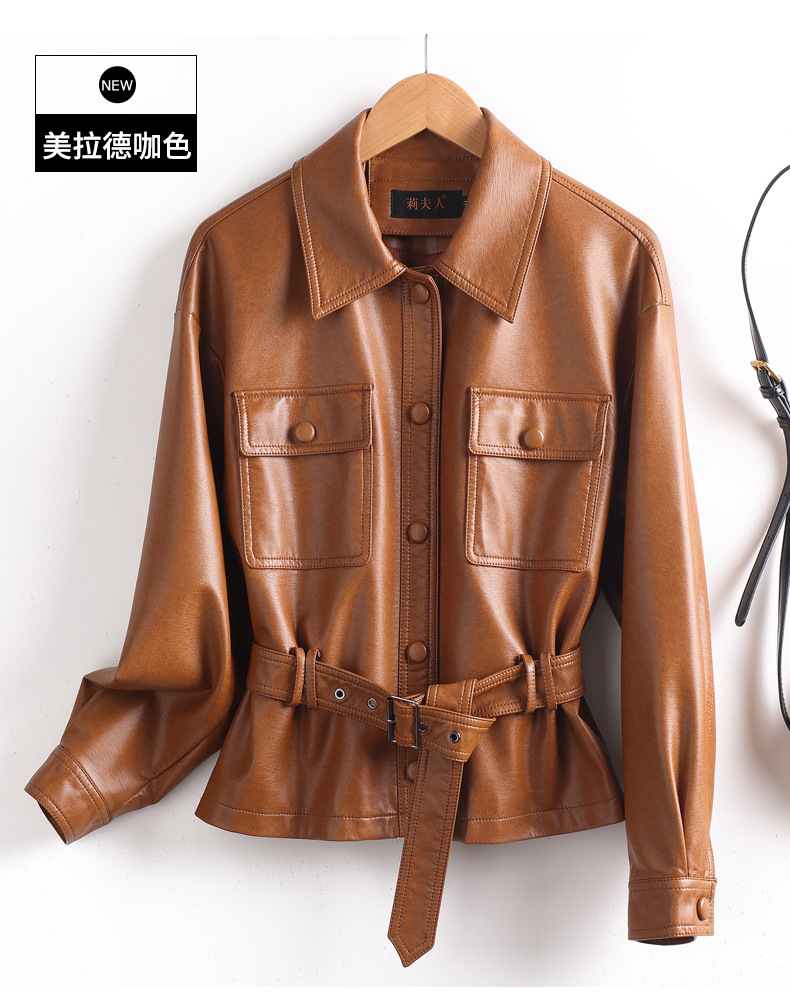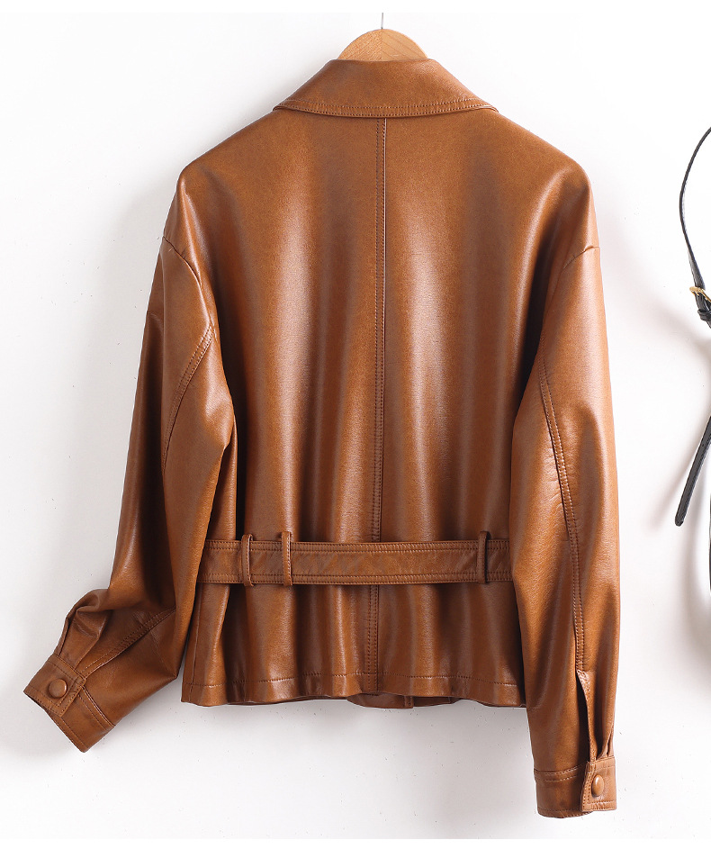 Haining 가죽 자켓 여성 짧은 2025 새로운 가죽 자켓 코트 버블 가죽 오토바이 자켓 새로운 트렌드