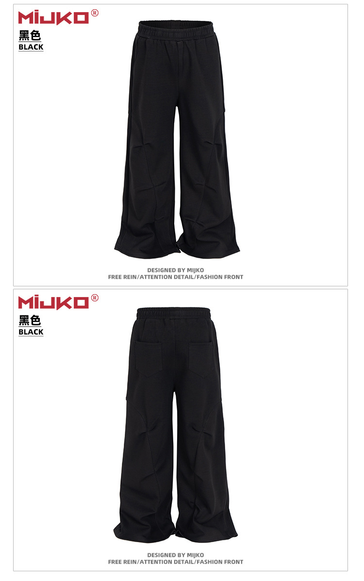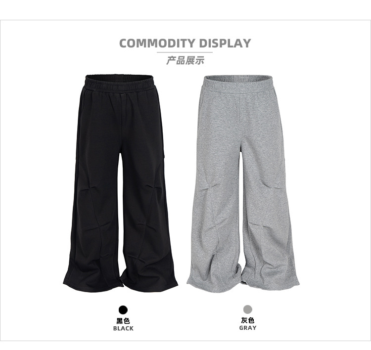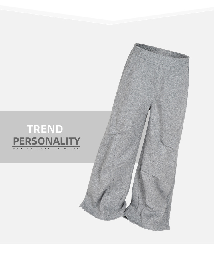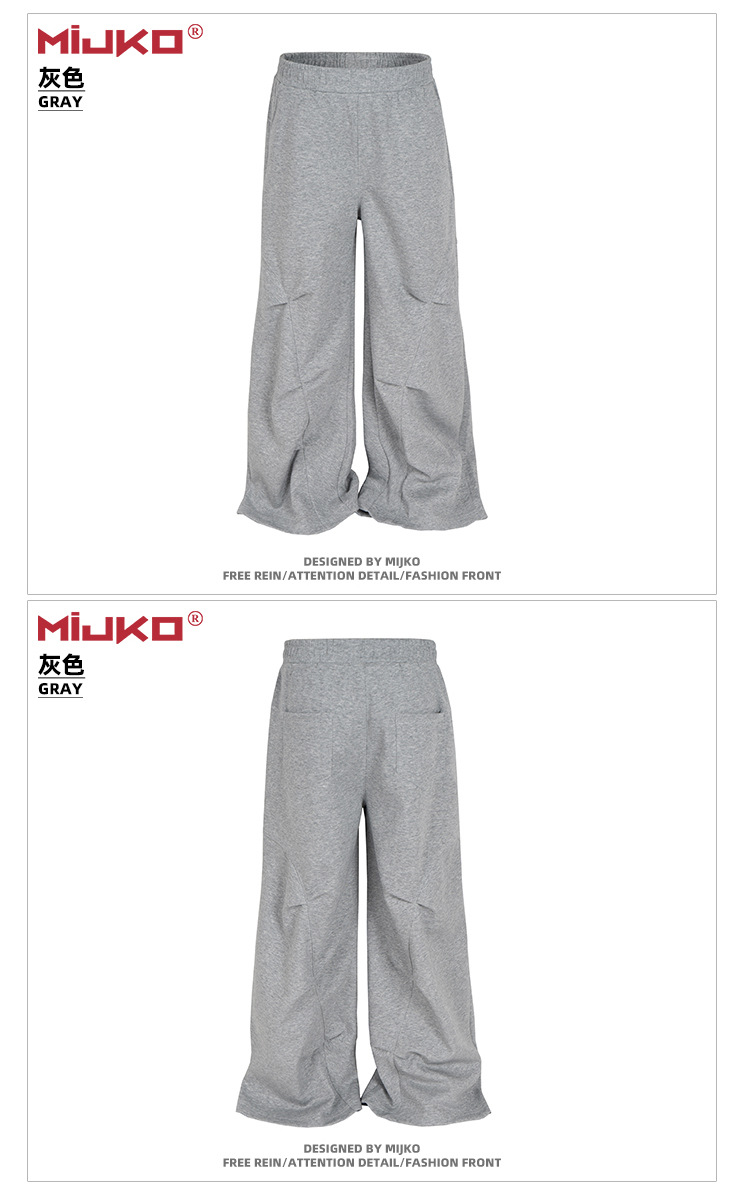 MIJKO 남성복 여성 하이 스트리트 스포츠 바지 디자인 센스 주름 장식 남성과 여성의 넓은 발 캐주얼 바지스토어 가기