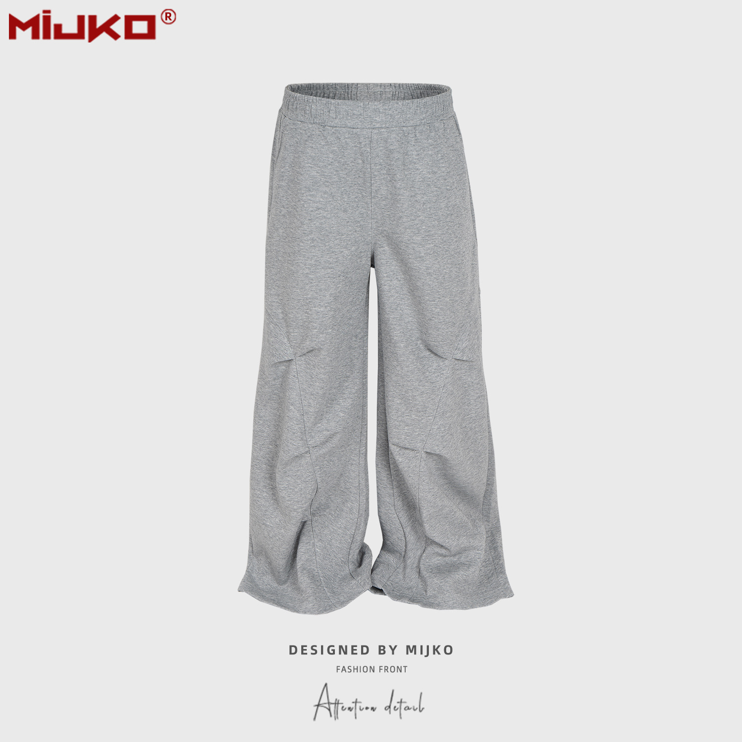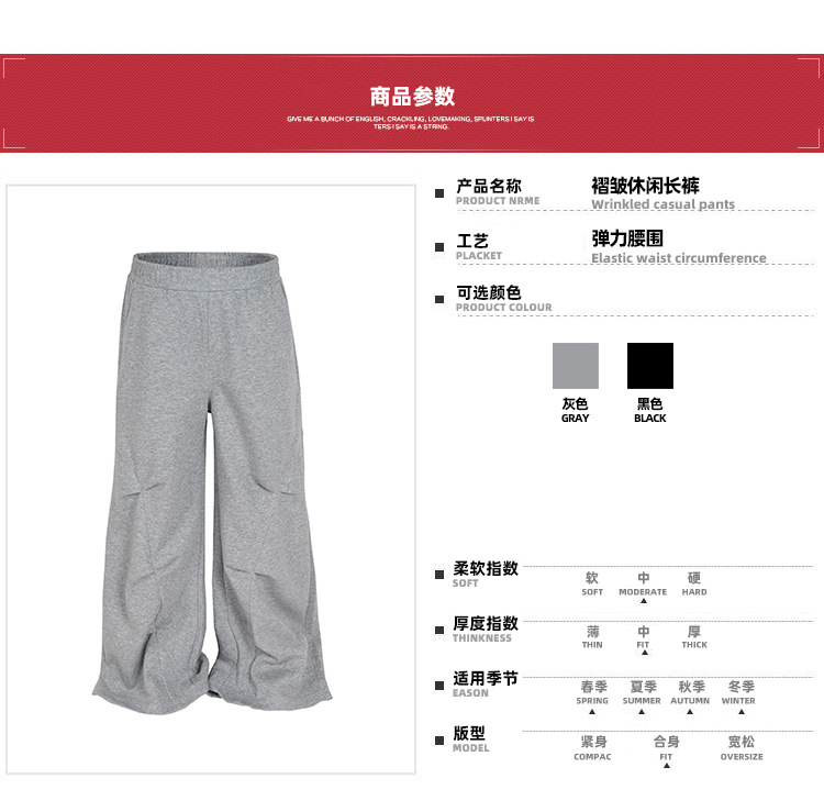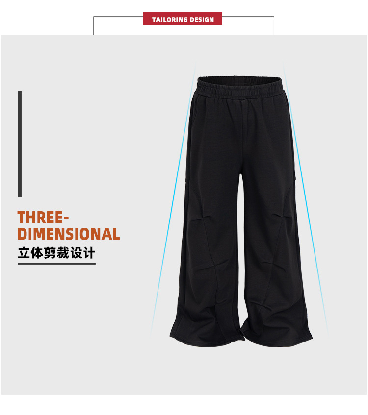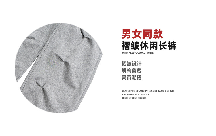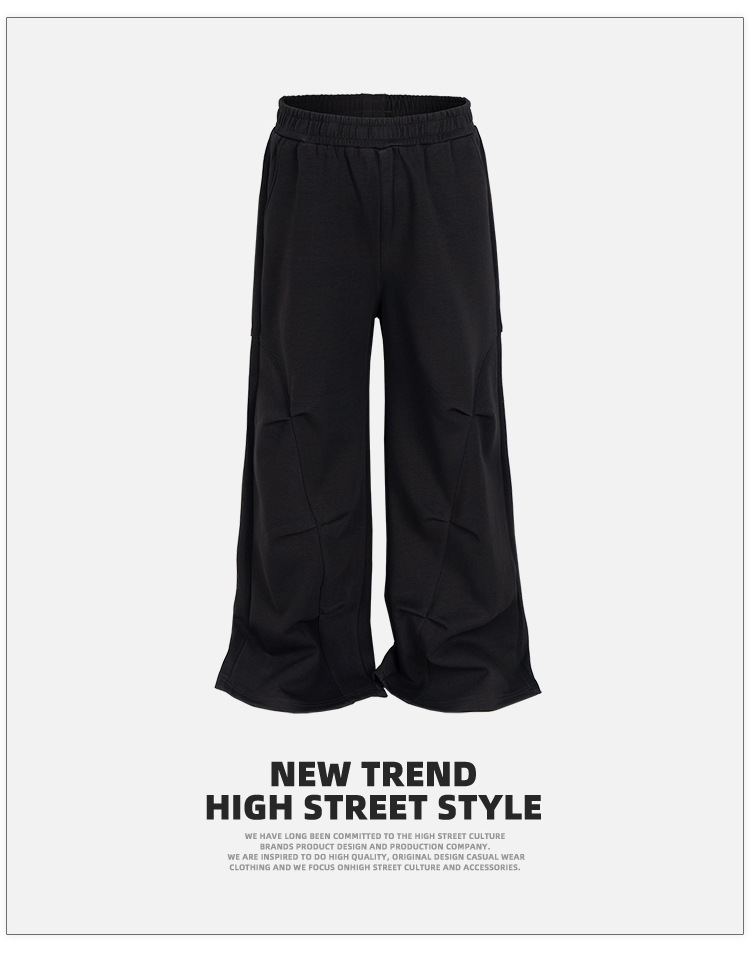 MIJKO 남성복 여성 하이 스트리트 스포츠 바지 디자인 센스 주름 장식 남성과 여성의 넓은 발 캐주얼 바지스토어 가기