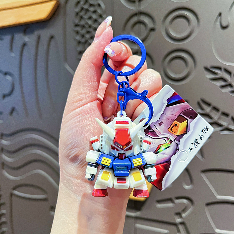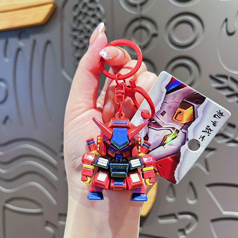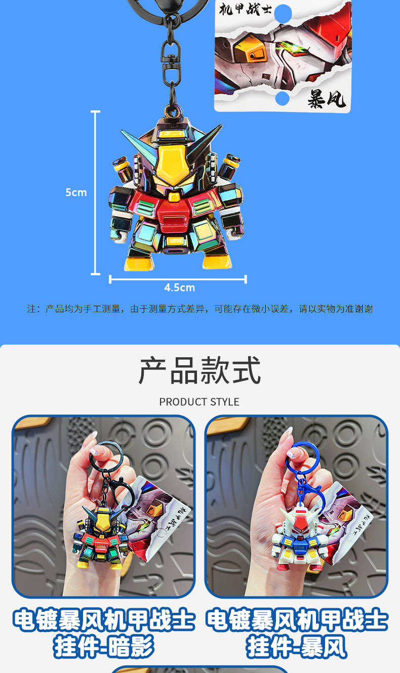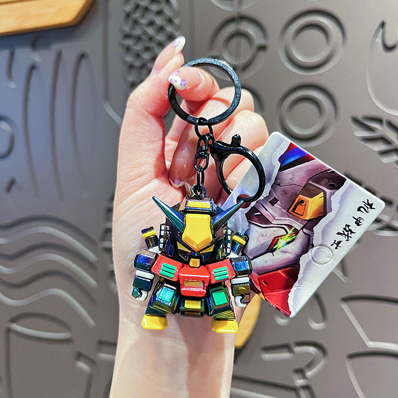 Hangli 원래 전기 도금 폭풍 메카 전사 키 체인 귀여운 만화 로봇 인형 소년 가방 펜던트