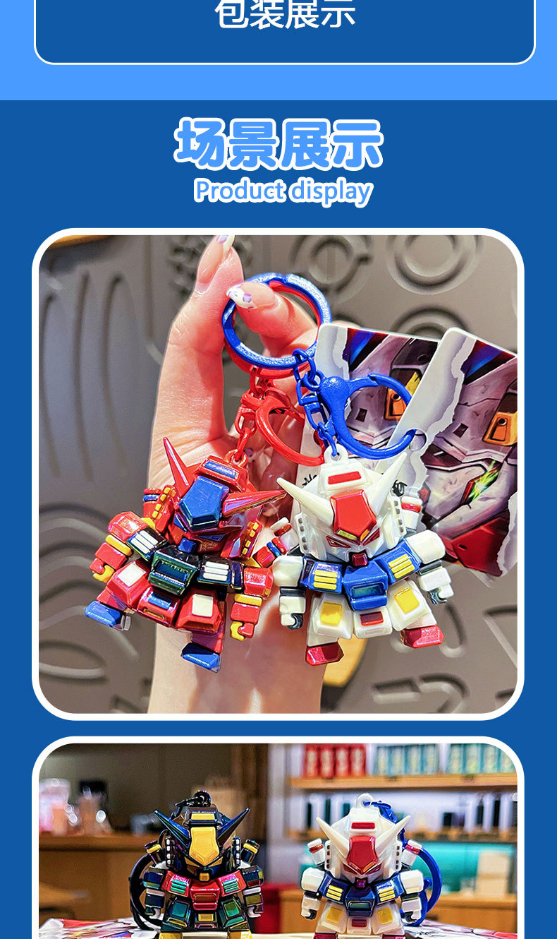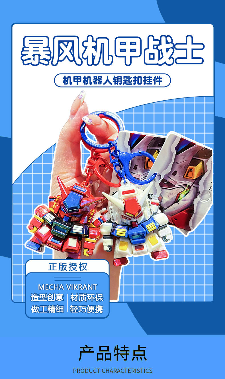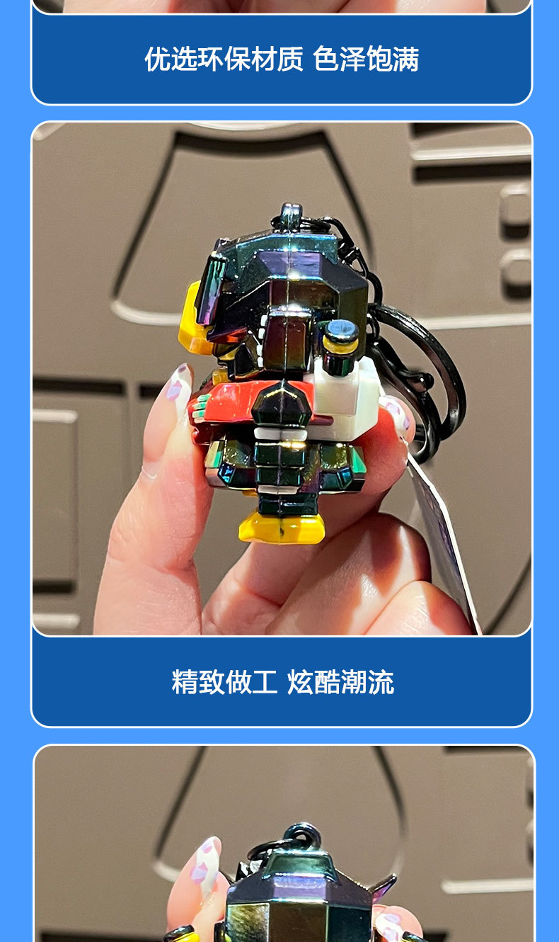 Hangli 원래 전기 도금 폭풍 메카 전사 키 체인 귀여운 만화 로봇 인형 소년 가방 펜던트스토어 가기