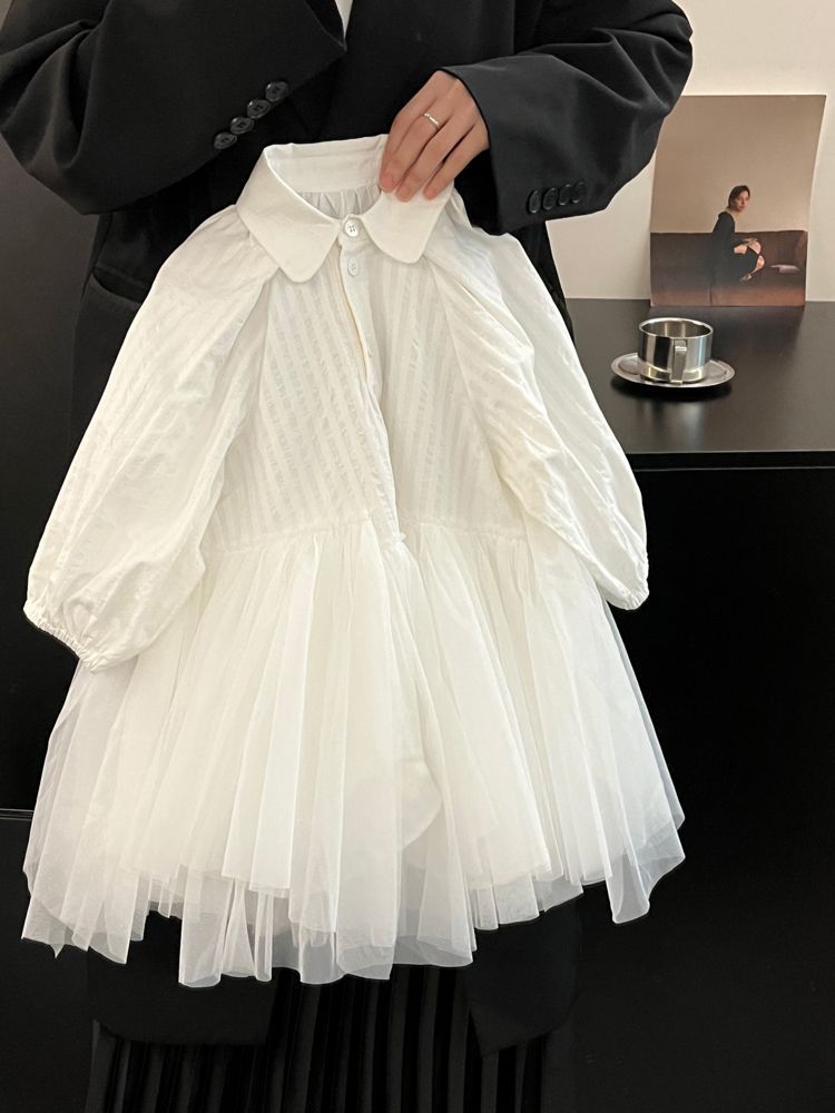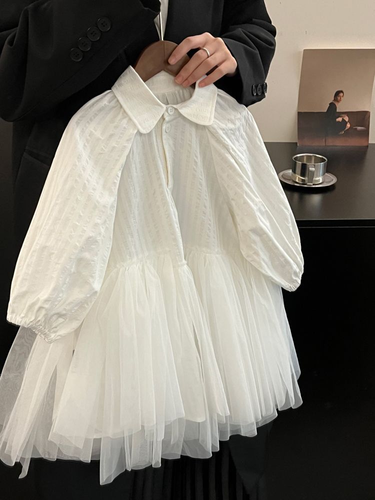 소녀 원피스 봄과 가을 새로운 어린이 긴 소매 메쉬 스커트 얇은 서양 스타일 아기 소녀 공주 스커트 긴 치마