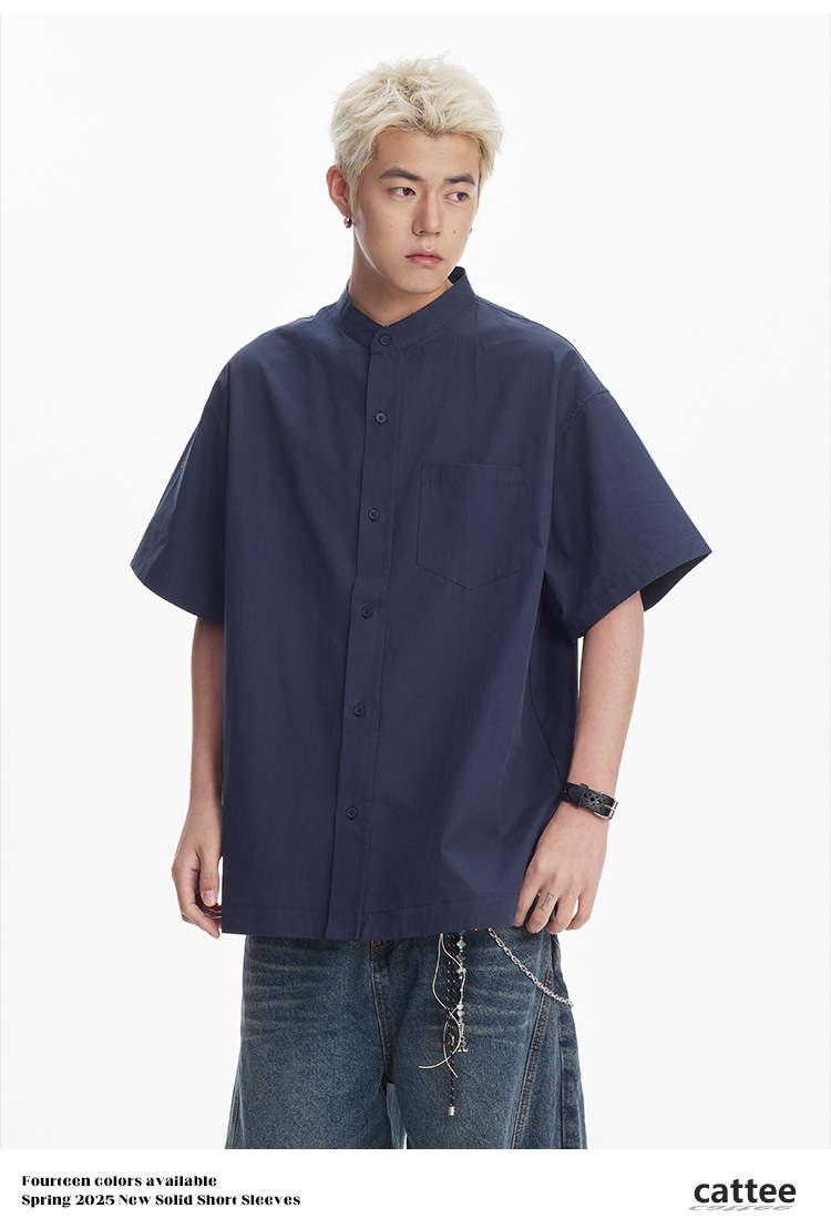 CATTEEIUS 여름 신상품 일본식 심플 솔리드 컬러 다용도 셔츠 남성용 아이스 플라워 코튼 루즈핏 캐주얼 셔츠스토어 가기