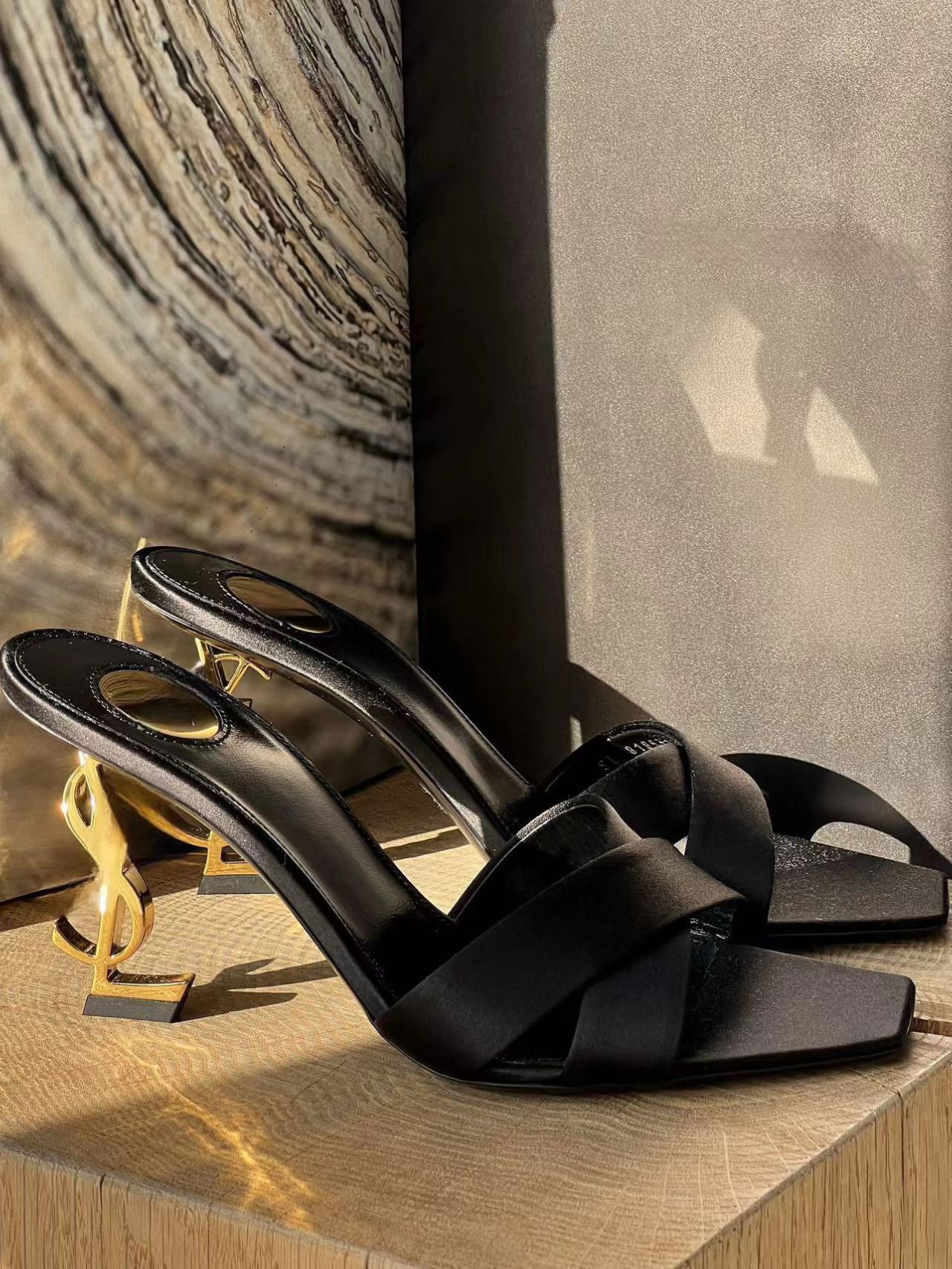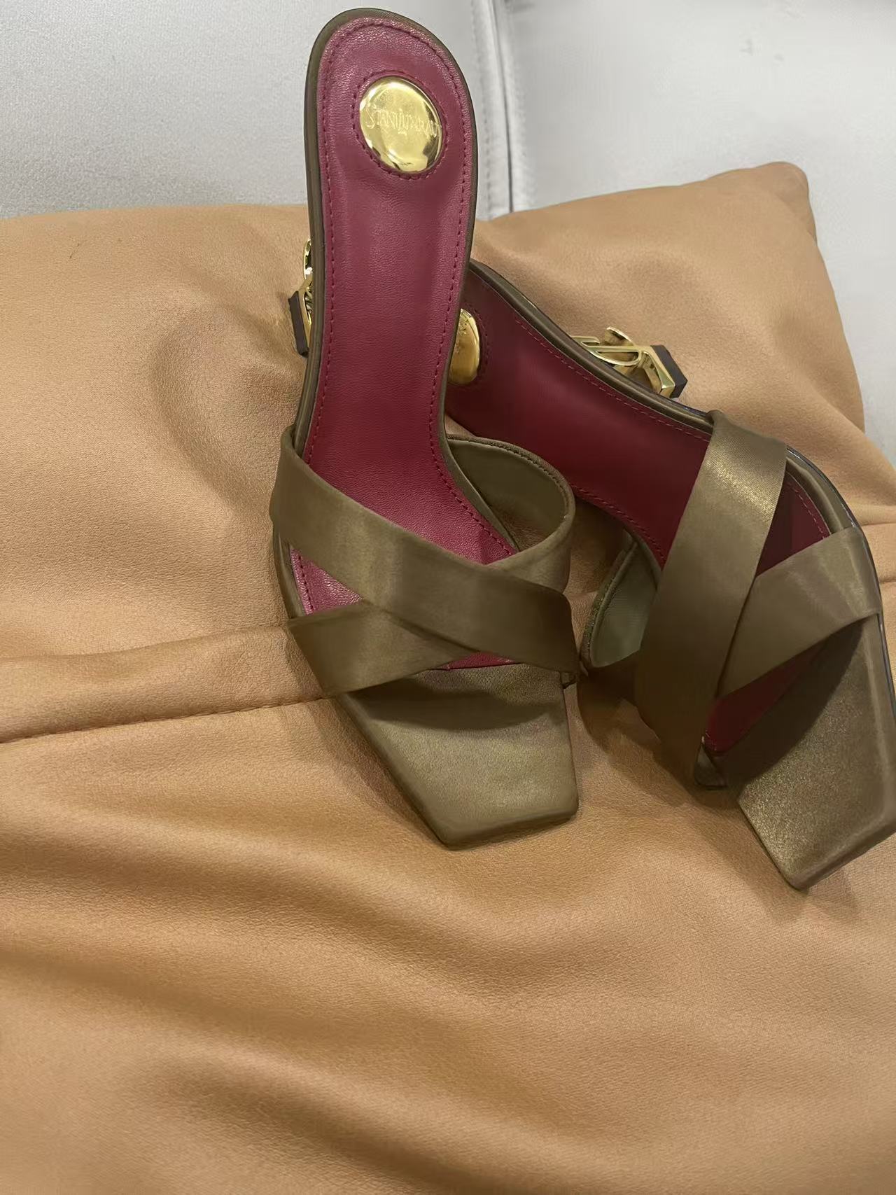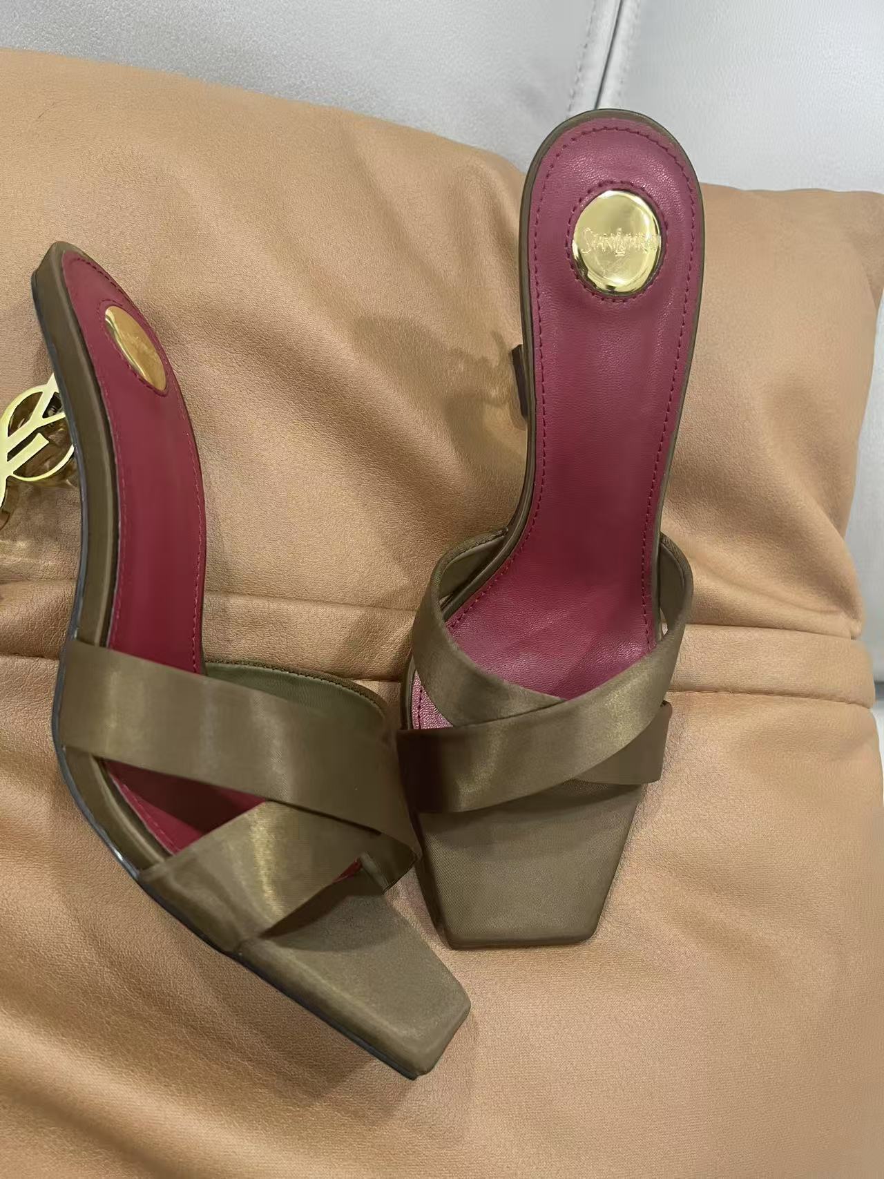 2026 봄 신상 크로스 스트랩 메탈 레터링 힐 오픈토 샌들 섹시한 스틸레토 힐 프렌치 스타일 여성용 하이힐스토어 가기
