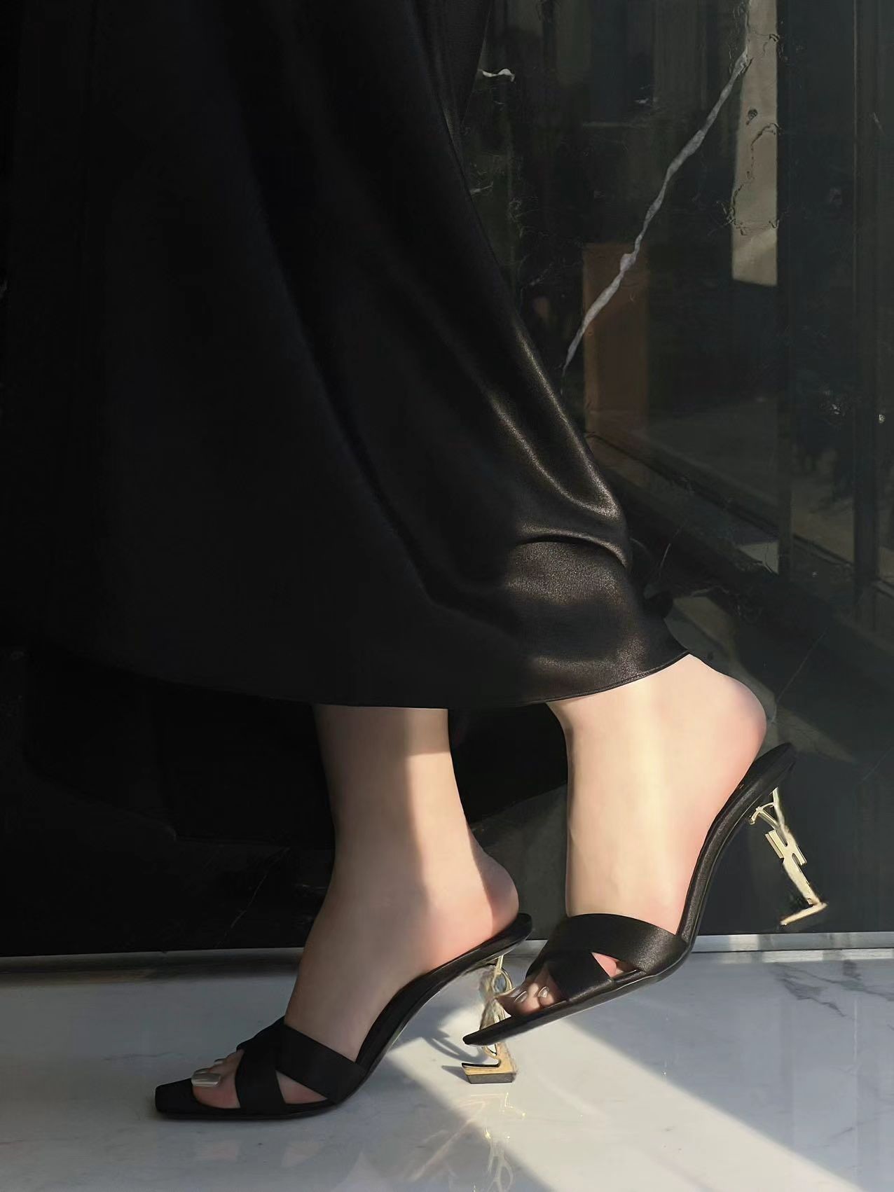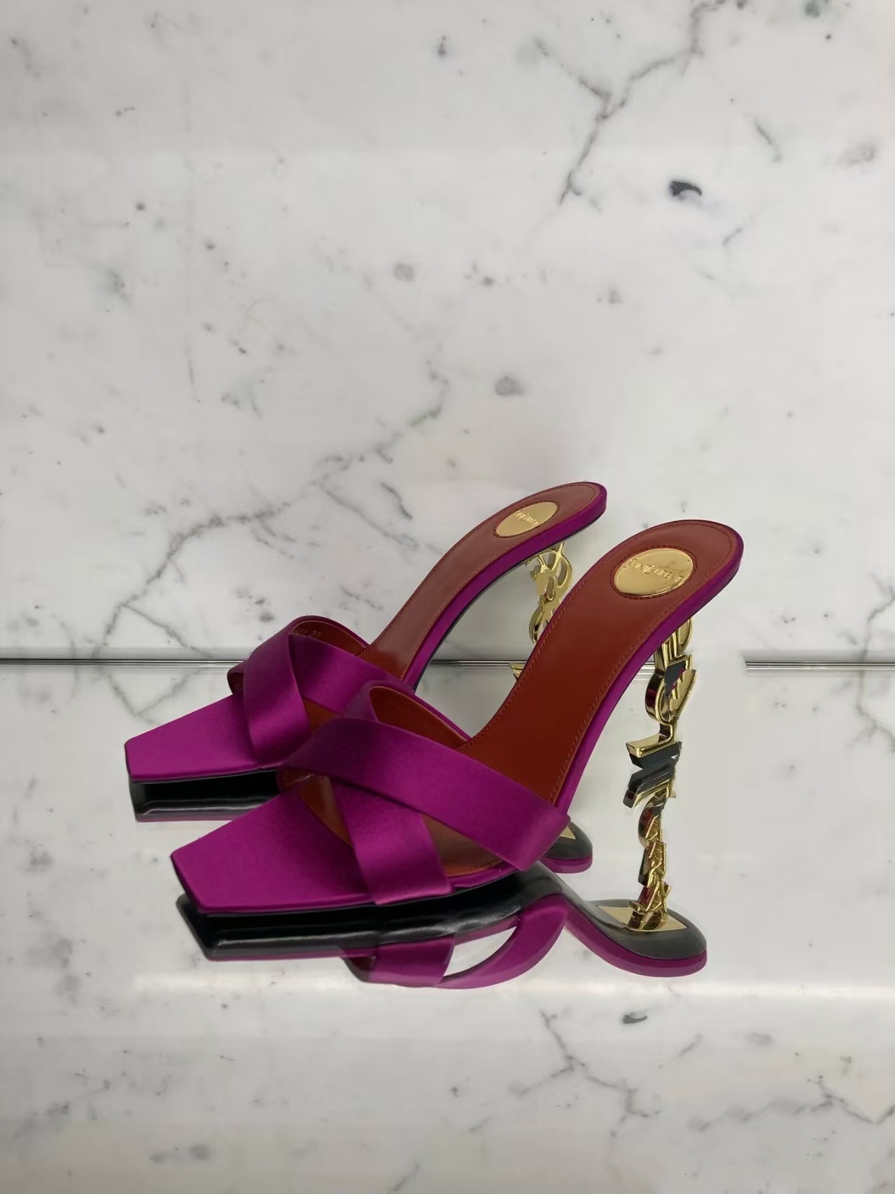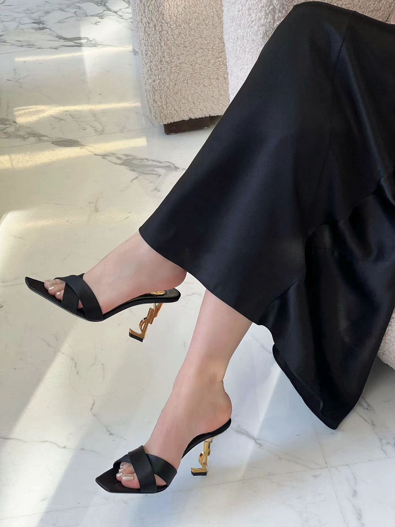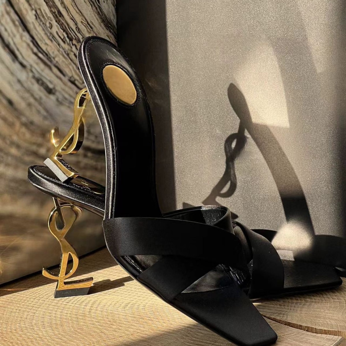 2026 봄 신상 크로스 스트랩 메탈 레터링 힐 오픈토 샌들 섹시한 스틸레토 힐 프렌치 스타일 여성용 하이힐스토어 가기
