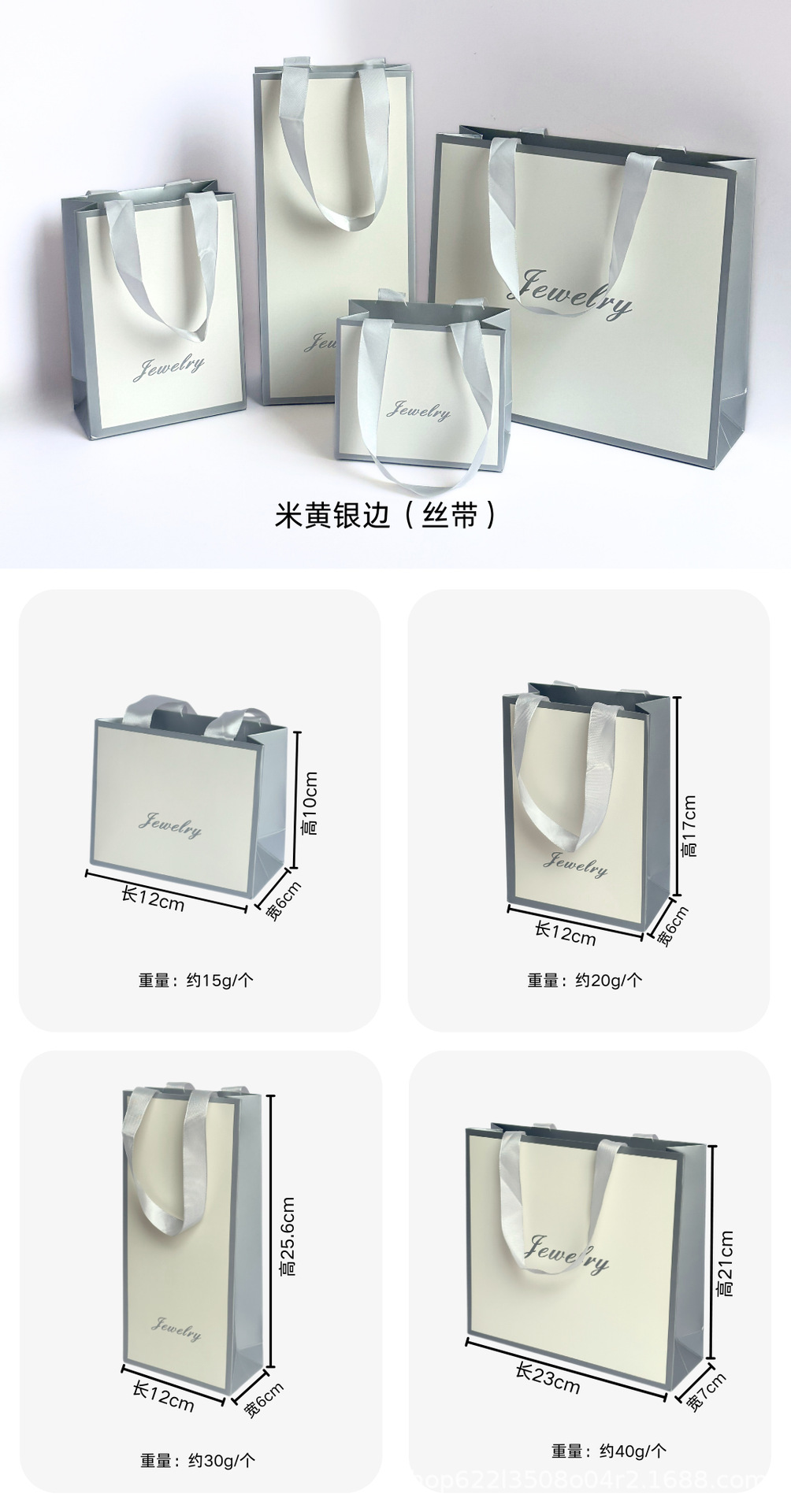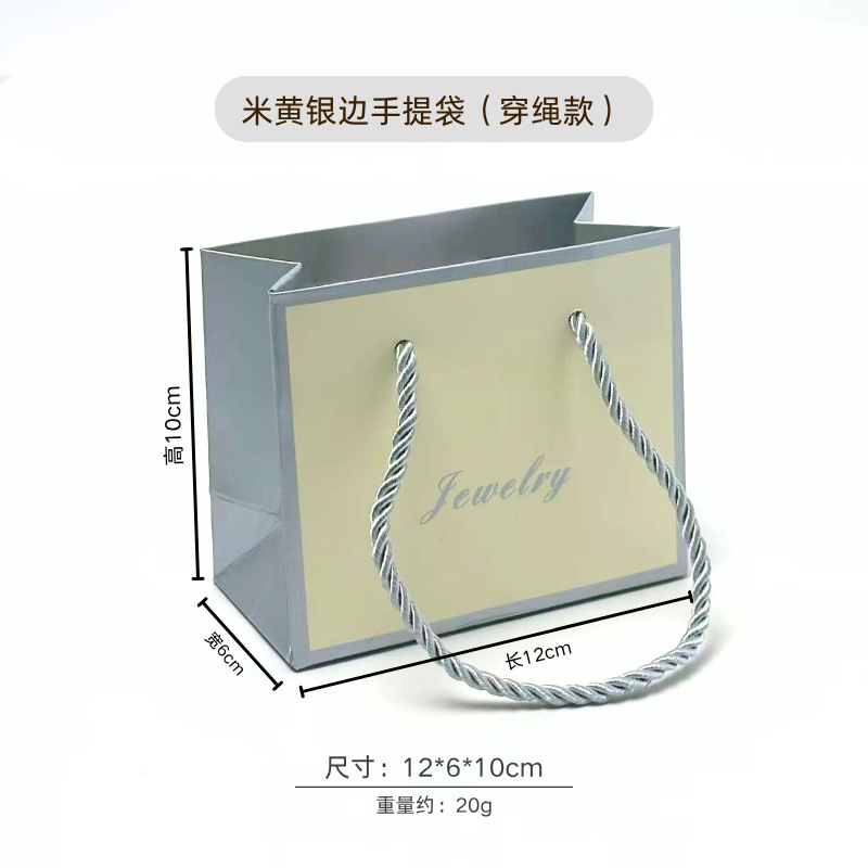 • 베이지 실버 엣지 핸드백(끈 스타일), 흰색 판지, 12*6*10cm
