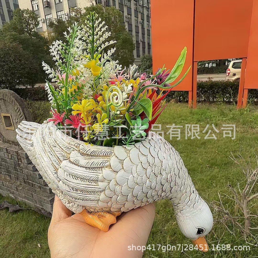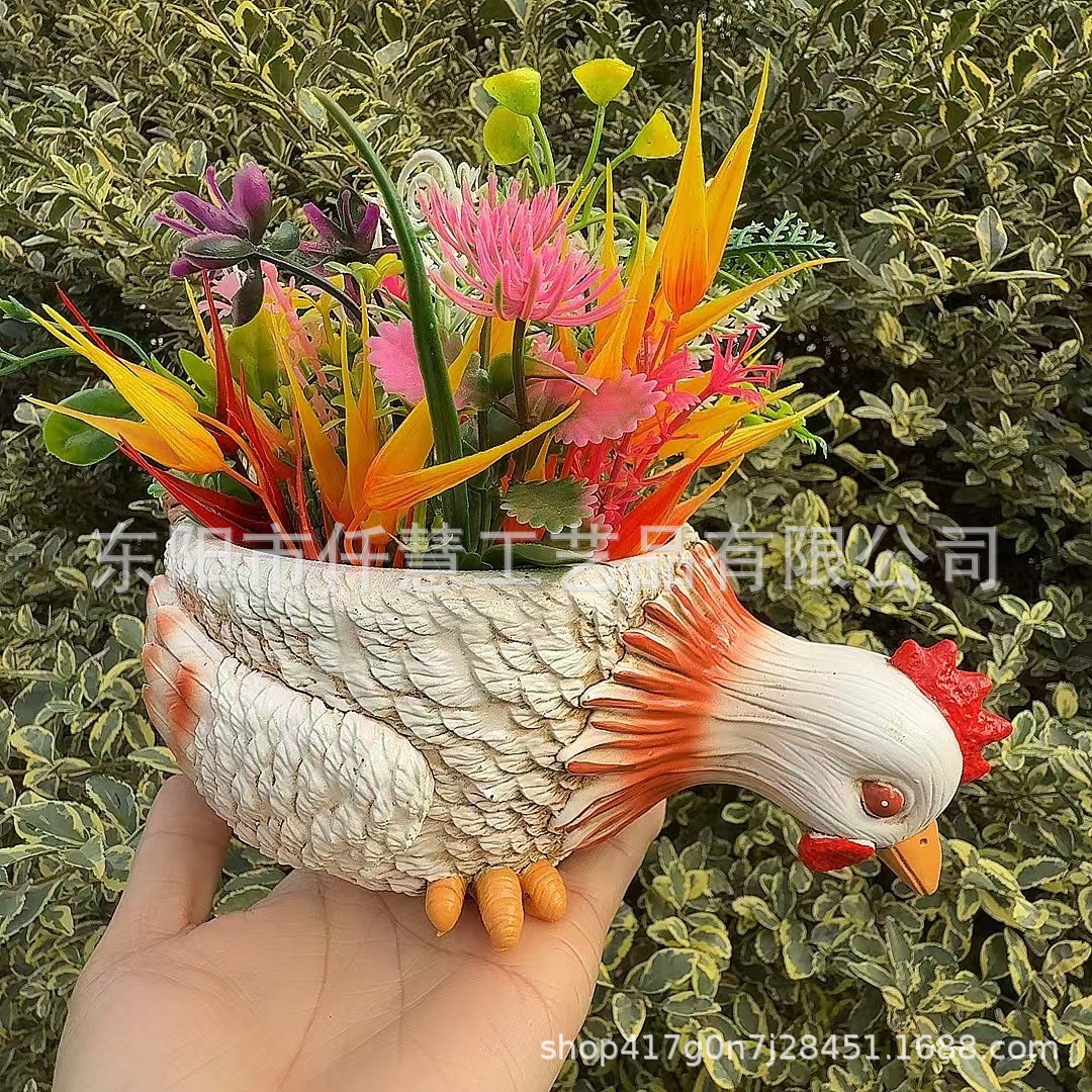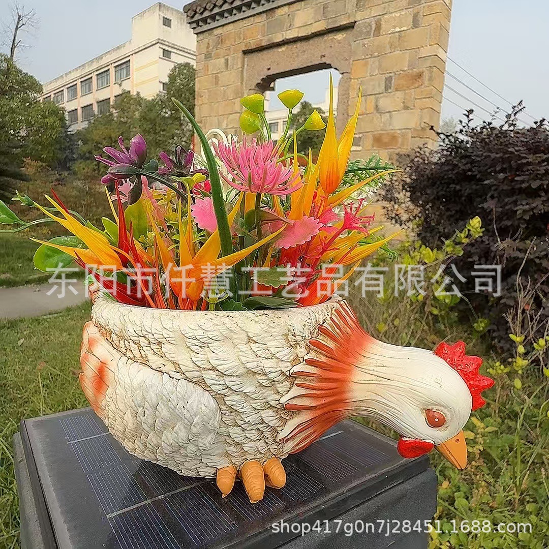국경 간 신제품 정원 안뜰 시뮬레이션 닭 오리 꽃 냄비 장식 정원 풍경 조각 꽃 냄비 창조적 인 야외 치킨