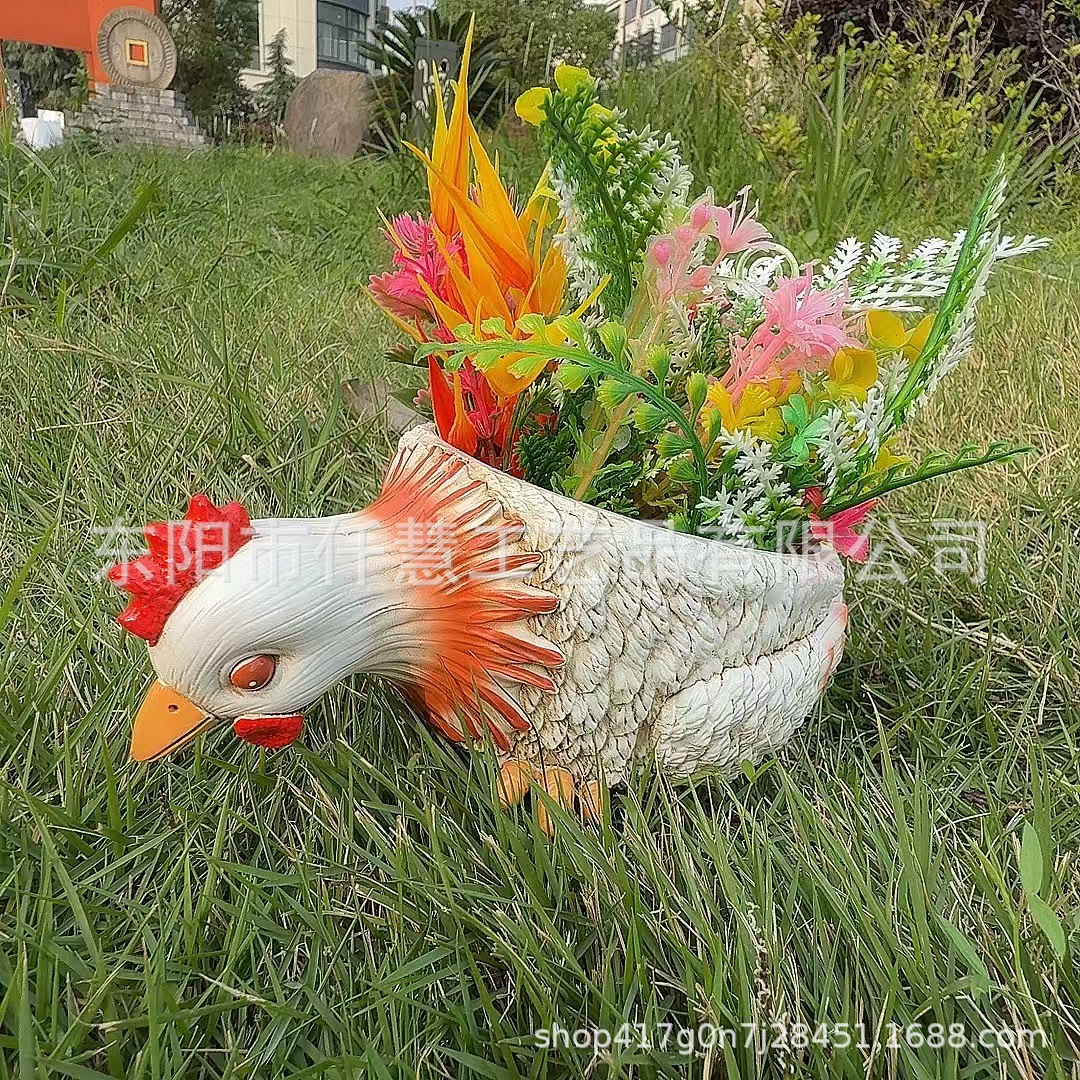 국경 간 신제품 정원 안뜰 시뮬레이션 닭 오리 꽃 냄비 장식 정원 풍경 조각 꽃 냄비 창조적 인 야외 치킨스토어 가기