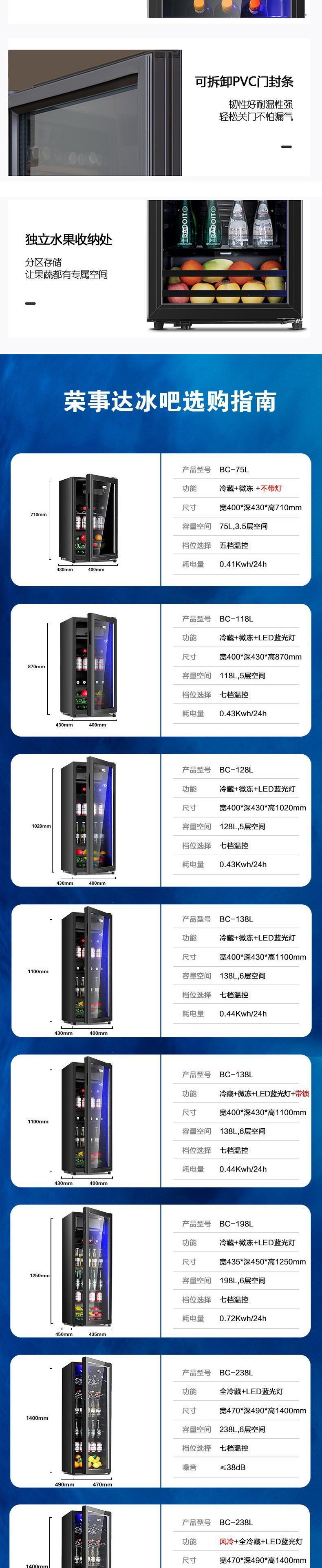 Royalstar 아이스 바 가정용 냉장 보존 캐비닛 음료 과일 차 투명 레드 와인 캐비닛 사무실 상업용 냉장고스토어 가기