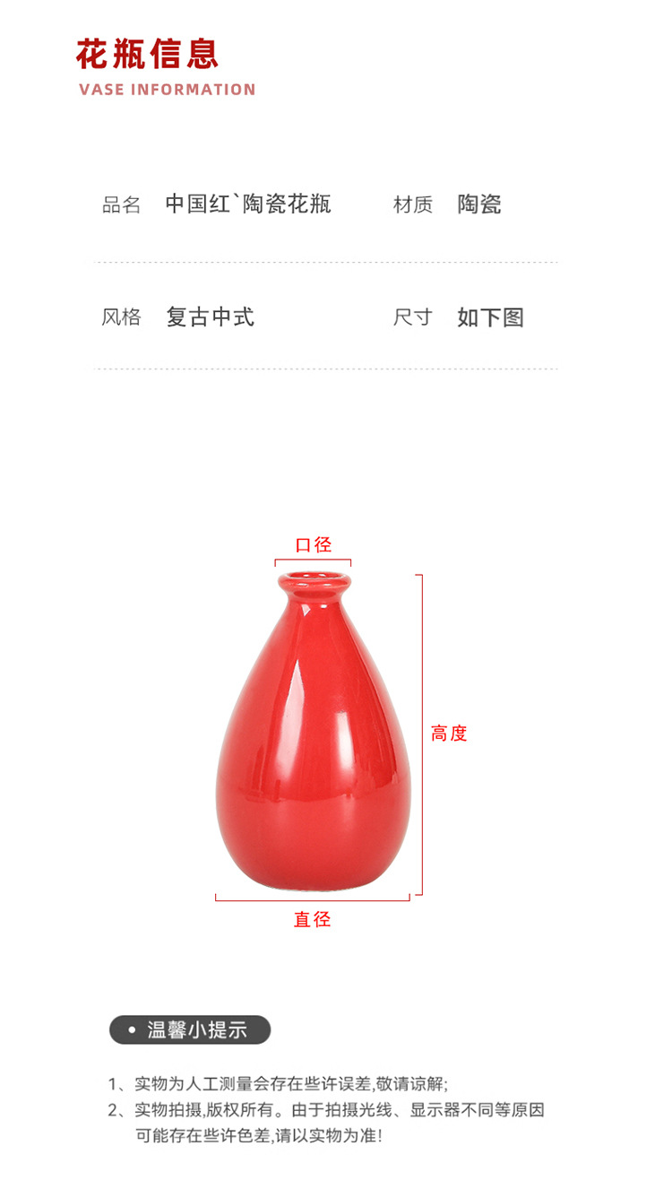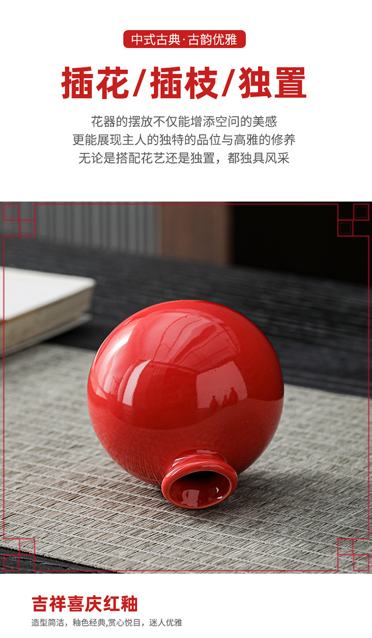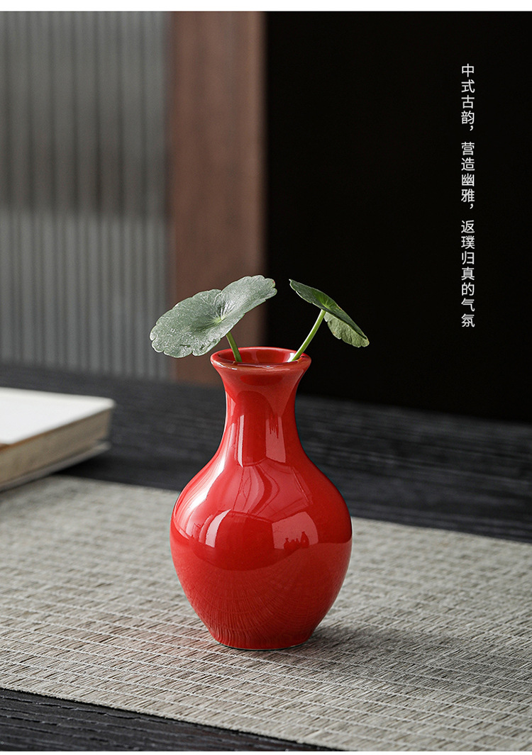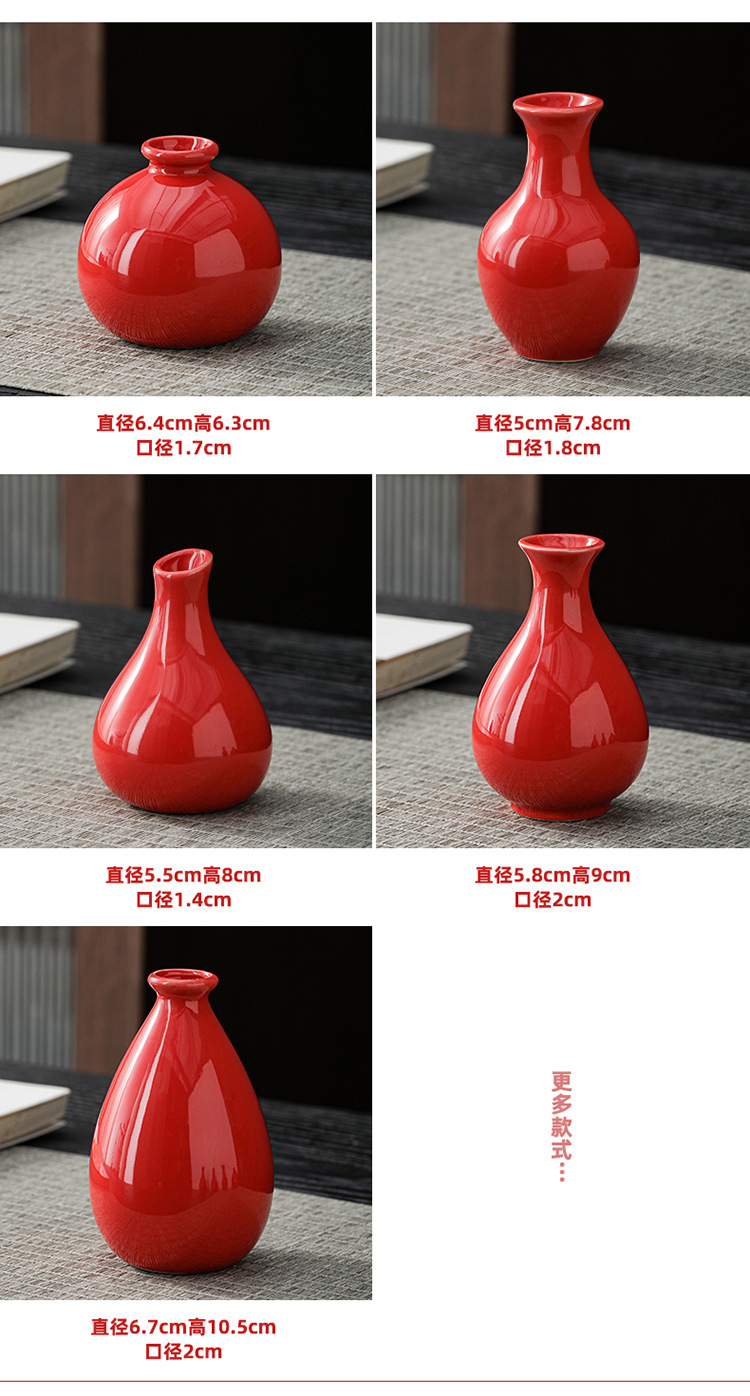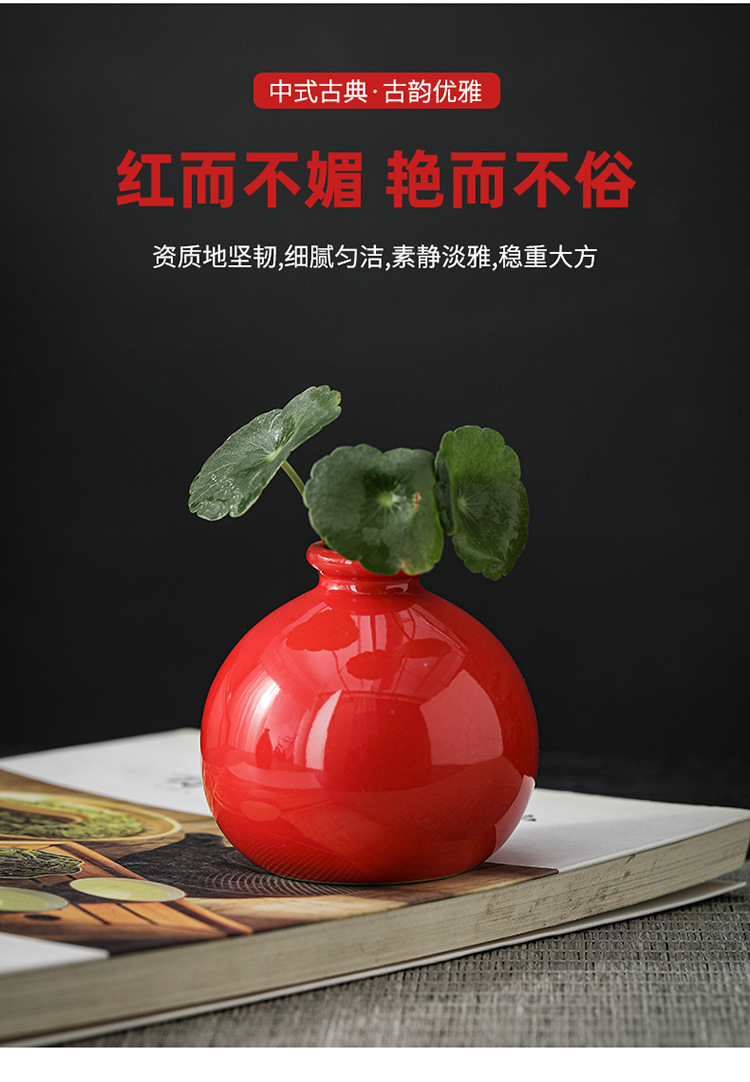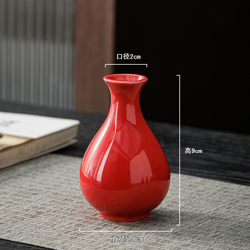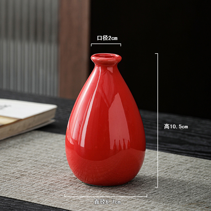 빨간색 복고풍 세라믹 작은 꽃병 결혼식 집들이 새해 아로마 테라피 병 데스크탑 다도 수경 장식 작은 장식품스토어 가기