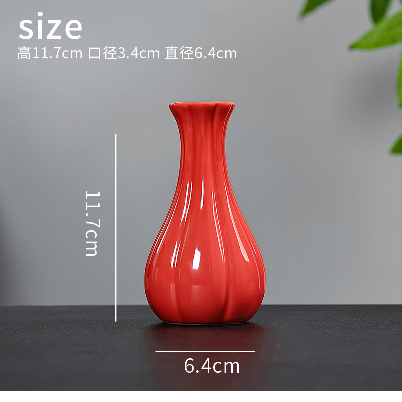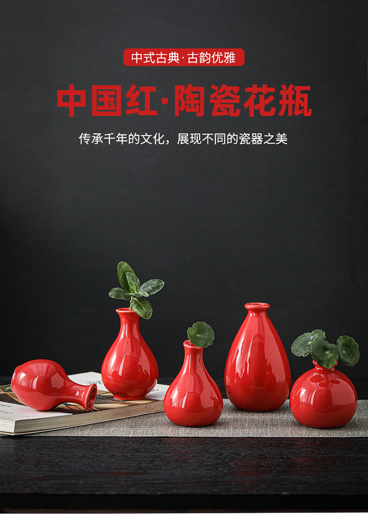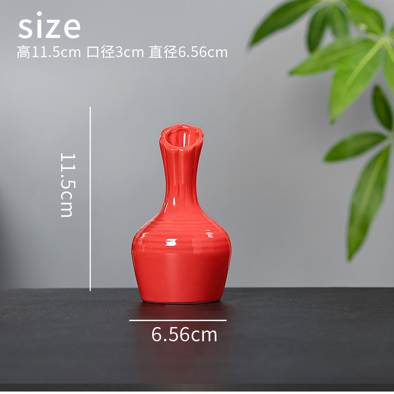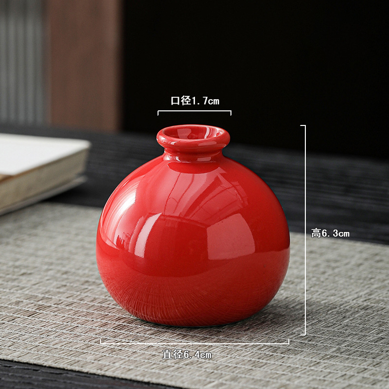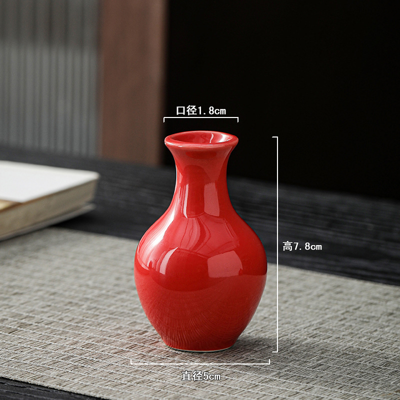 빨간색 복고풍 세라믹 작은 꽃병 결혼식 집들이 새해 아로마 테라피 병 데스크탑 다도 수경 장식 작은 장식품