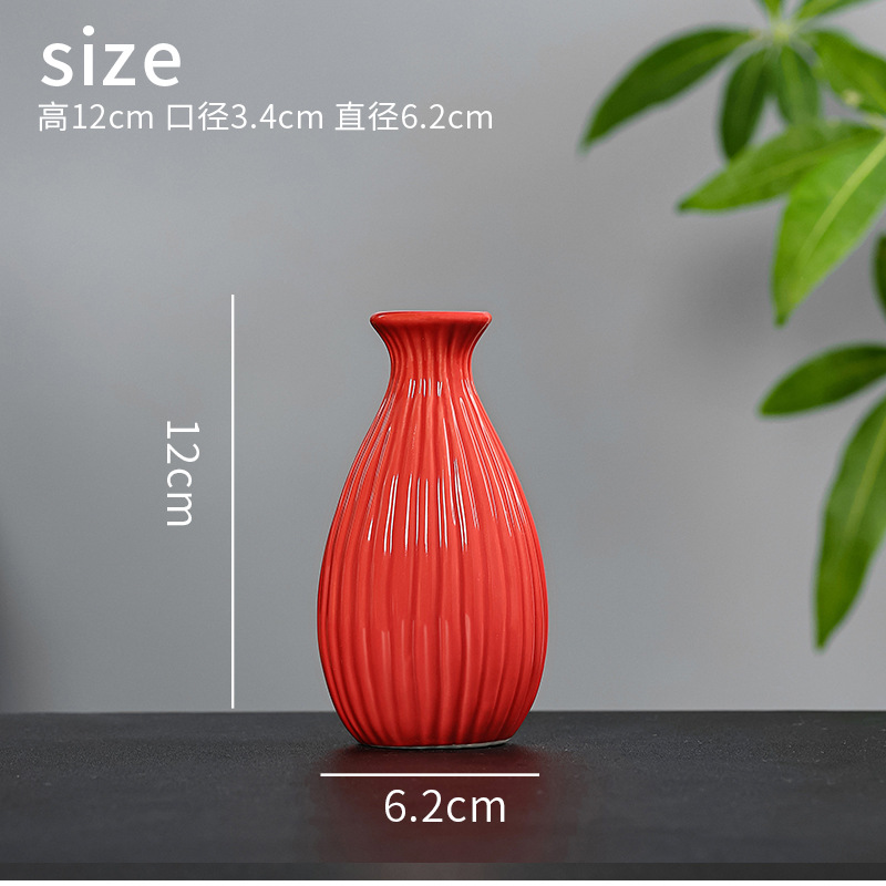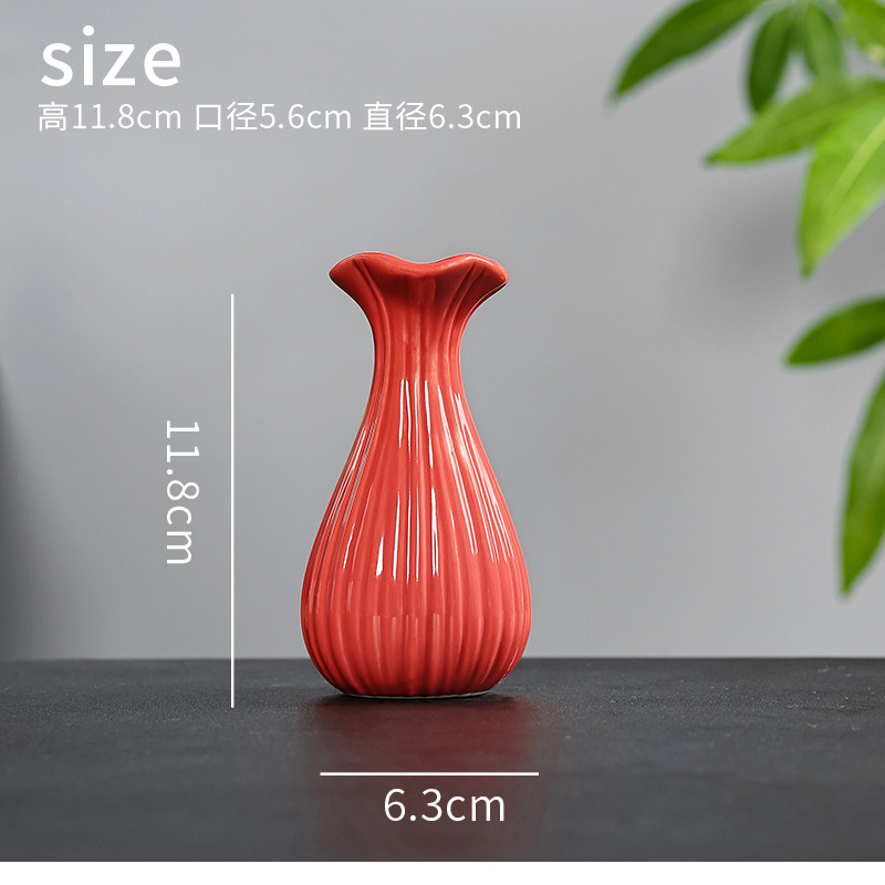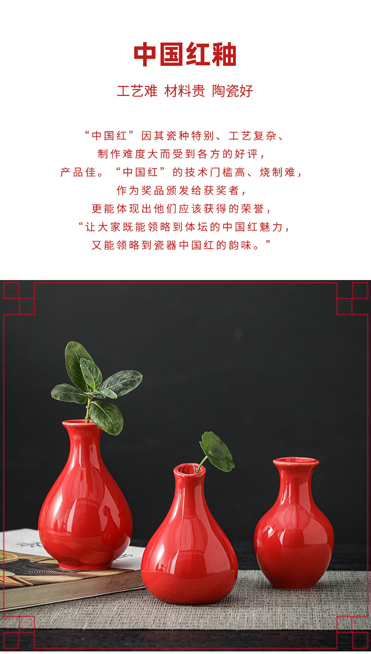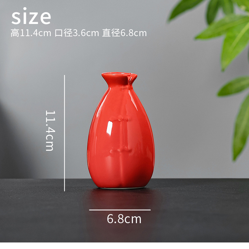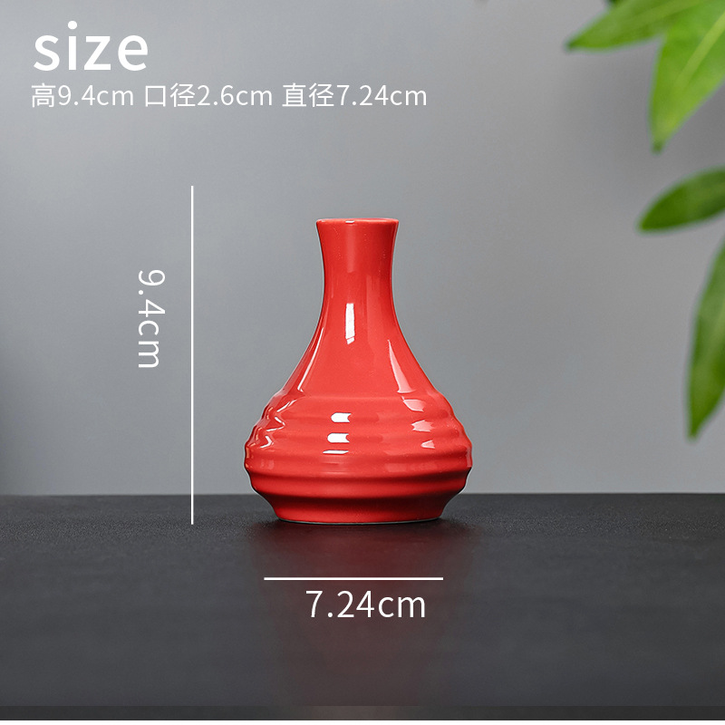 빨간색 복고풍 세라믹 작은 꽃병 결혼식 집들이 새해 아로마 테라피 병 데스크탑 다도 수경 장식 작은 장식품