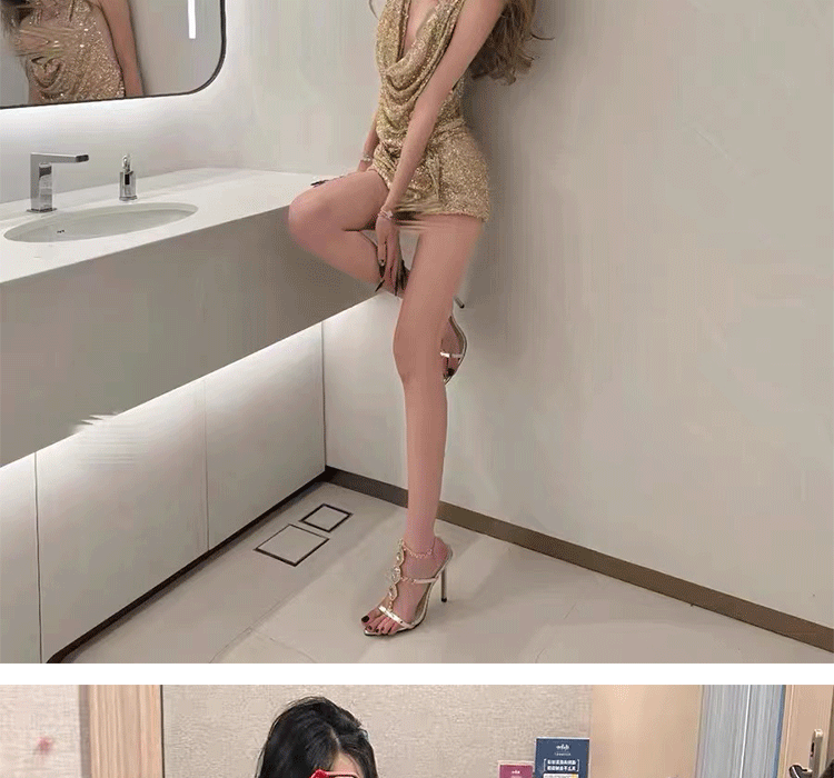 2025 년 여름 새 도착 보석 라인스톤 체인 골드 포인팅 하이힐 여성 우아한 왕실 자매 스틸레토 힐 오픈 발가락 샌들스토어 가기