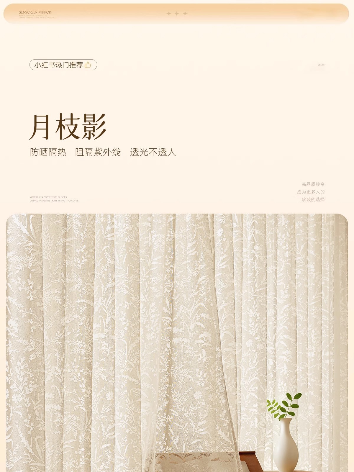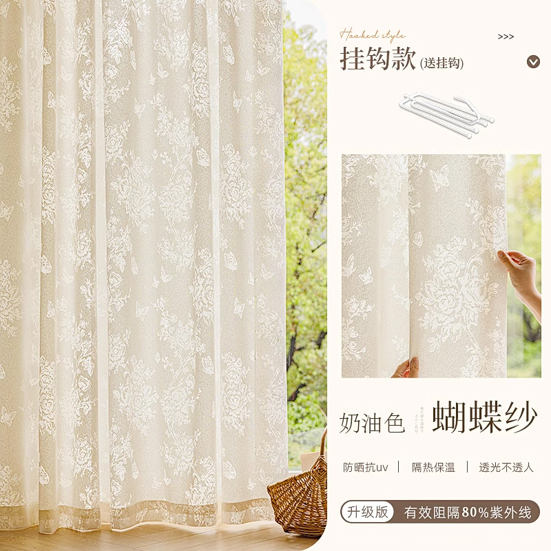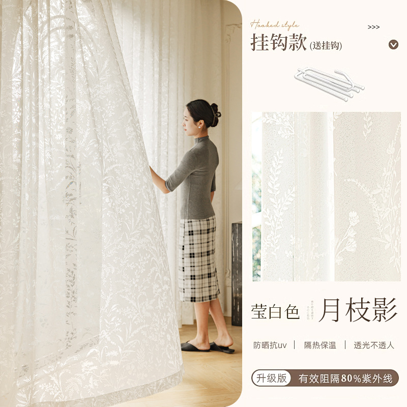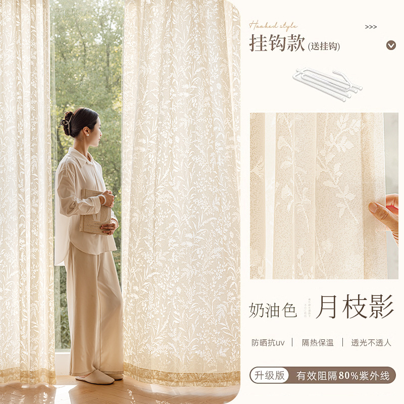 달 분기 그림자 커튼 프랑스 속이 빈 2025 새로운 발코니 거실 창 화면 투명 불투명 크림 모래스토어 가기