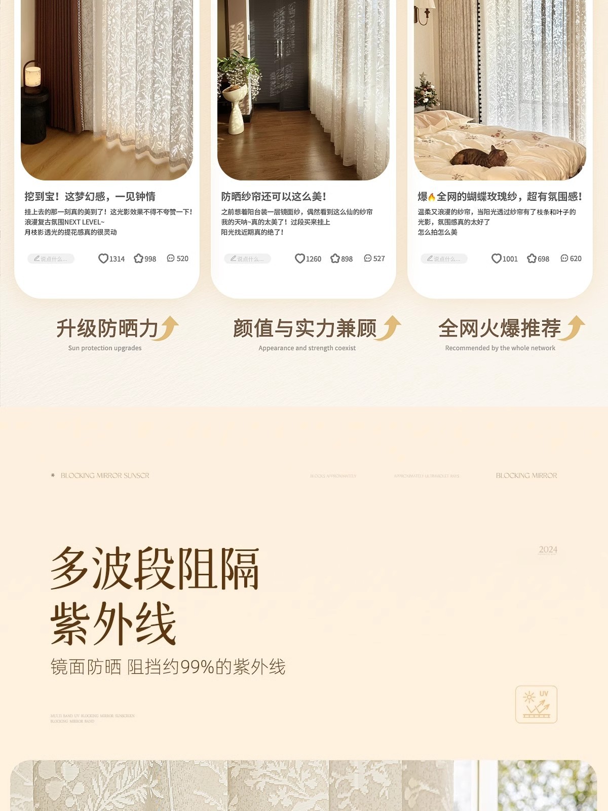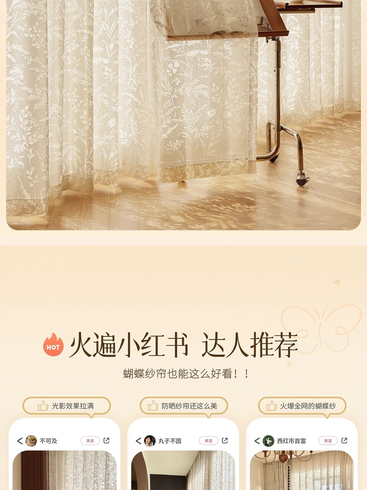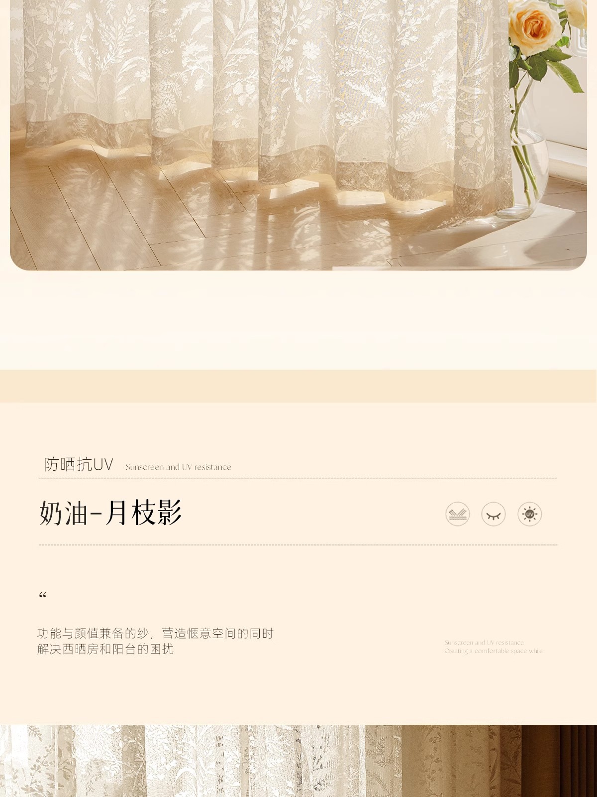 달 분기 그림자 커튼 프랑스 속이 빈 2025 새로운 발코니 거실 창 화면 투명 불투명 크림 모래스토어 가기
