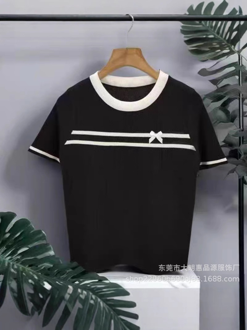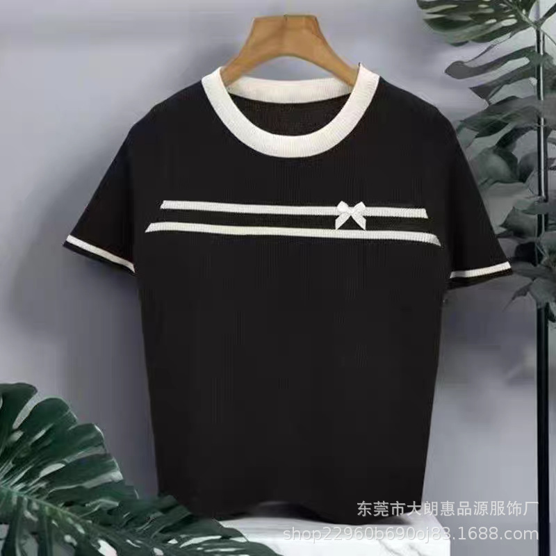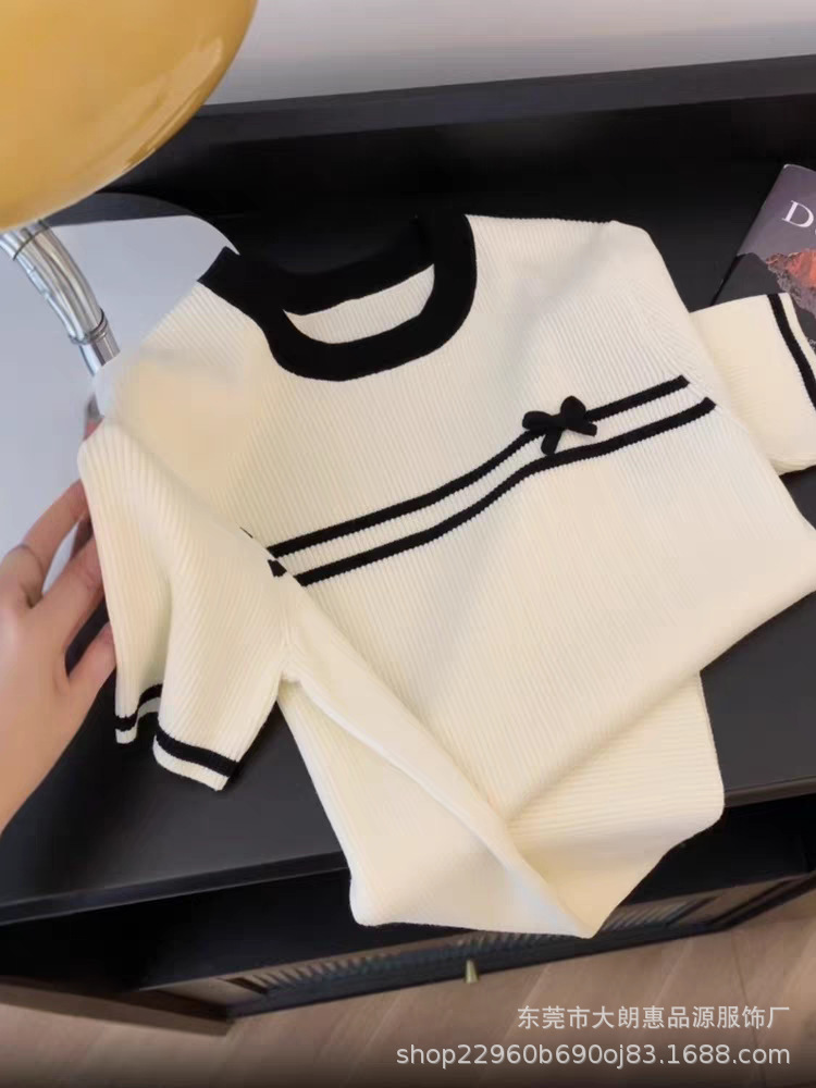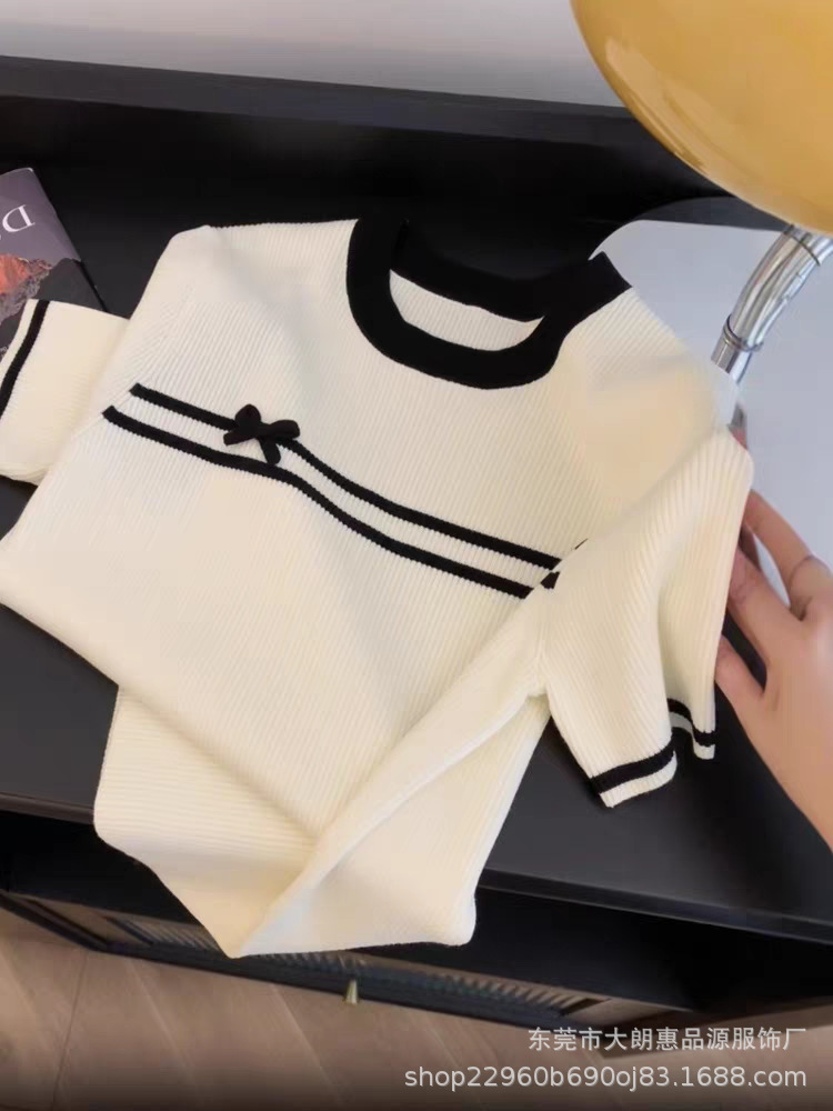 짧은 소매 2025 새로운 여름 샤넬 스타일 크루 넥 스웨터 올 매치 디자인 센스 작은 탑스토어 가기