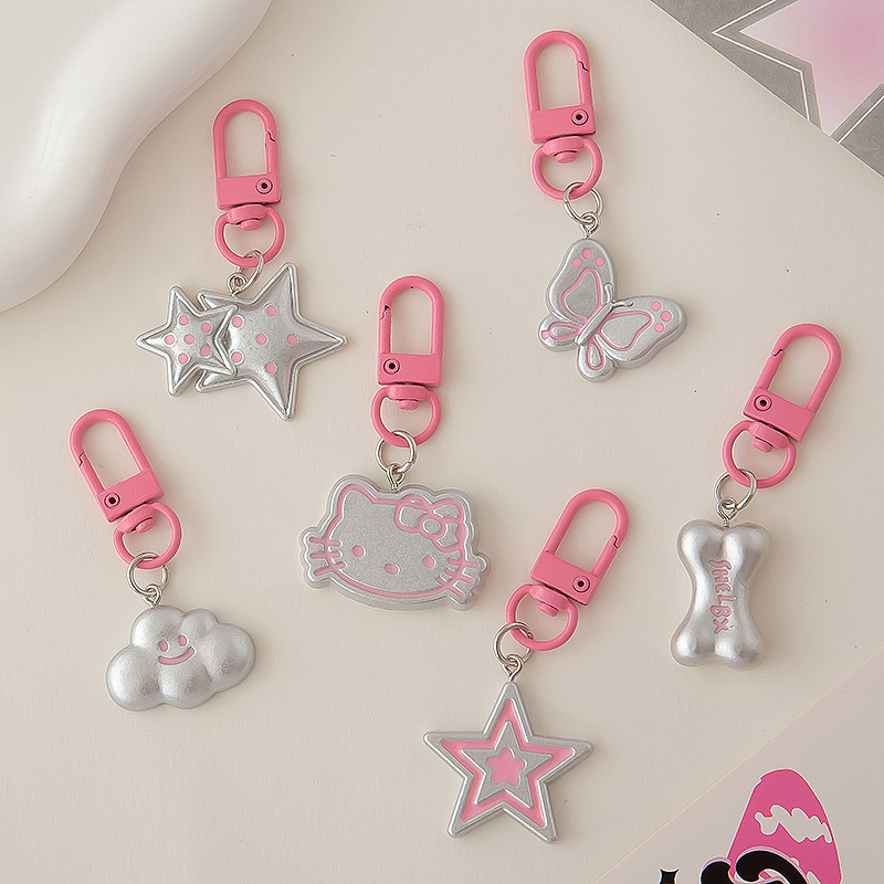 Y2K 스타일 귀여운 달콤한 쿨 KT 고양이 키 체인 가방 교수형 커플 여자 친구 키 체인 펜던트 선물