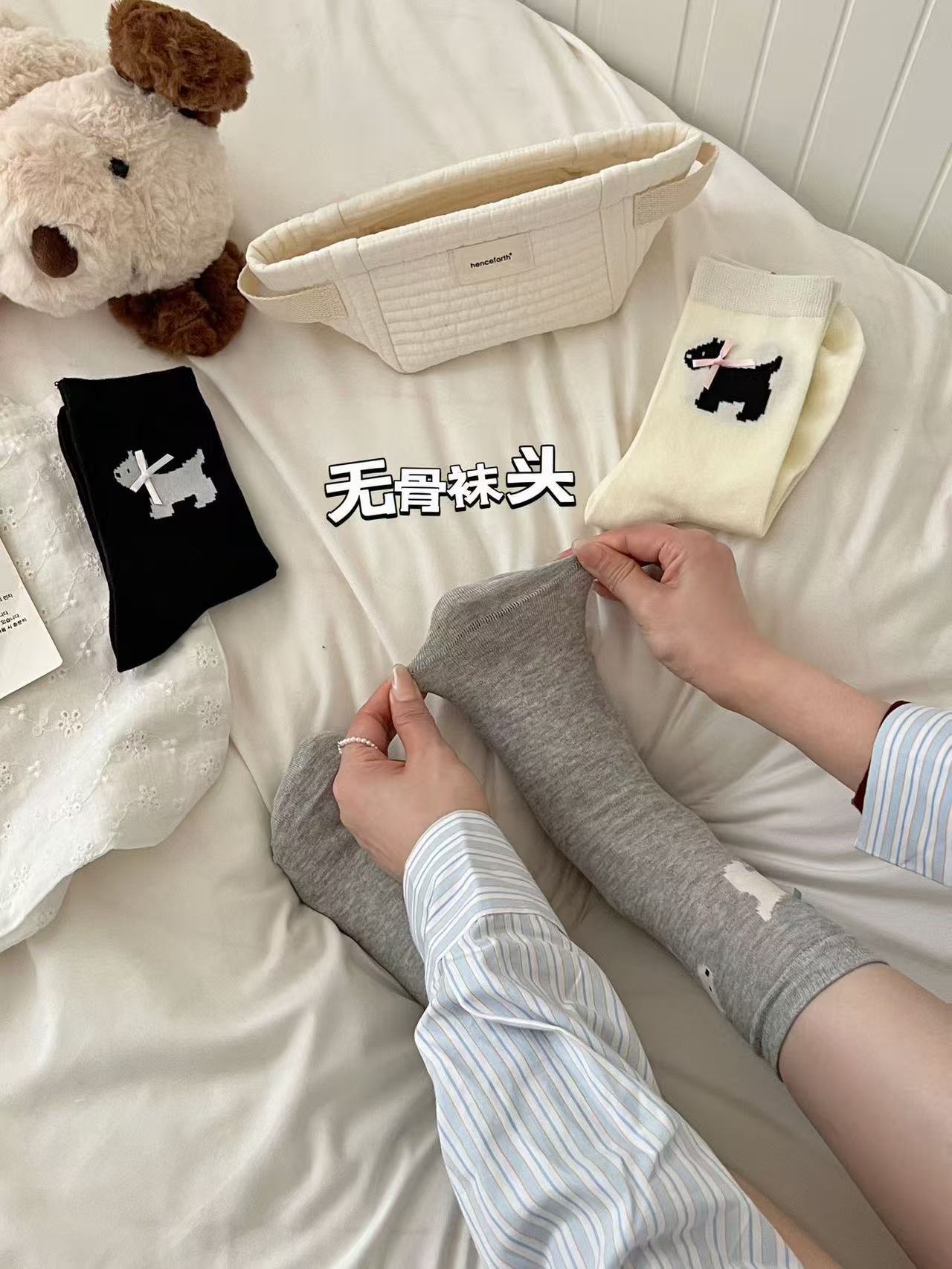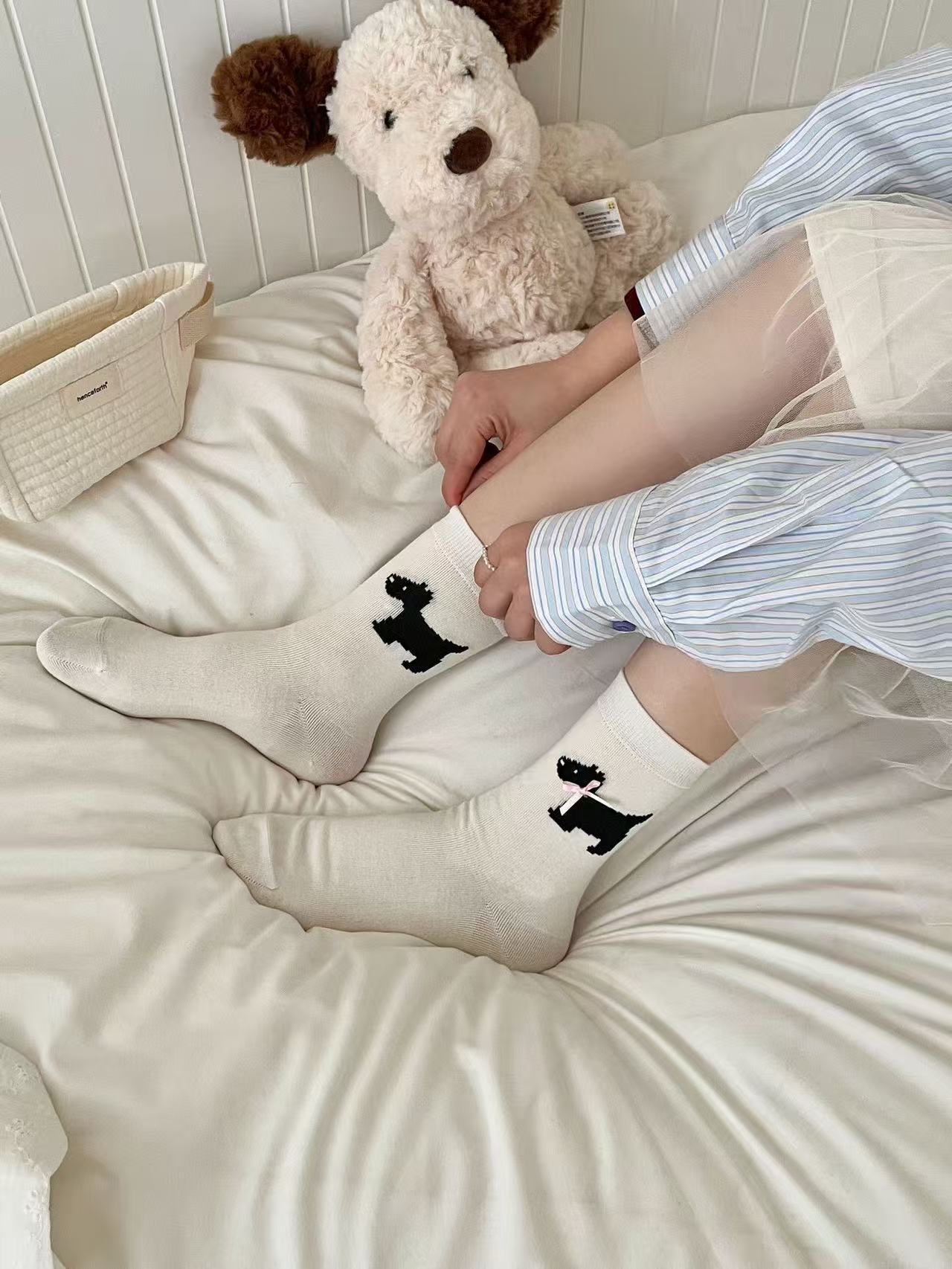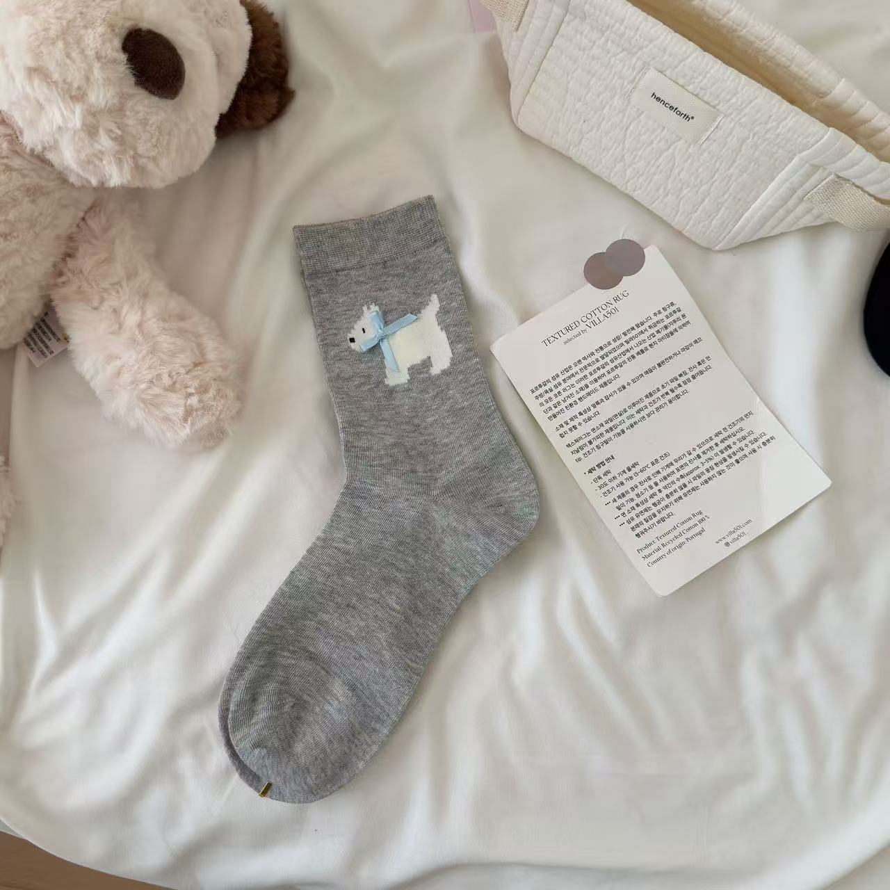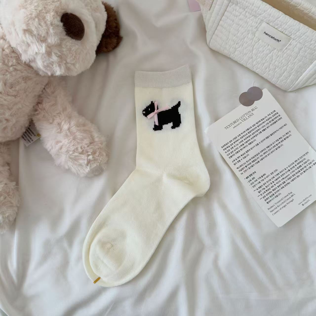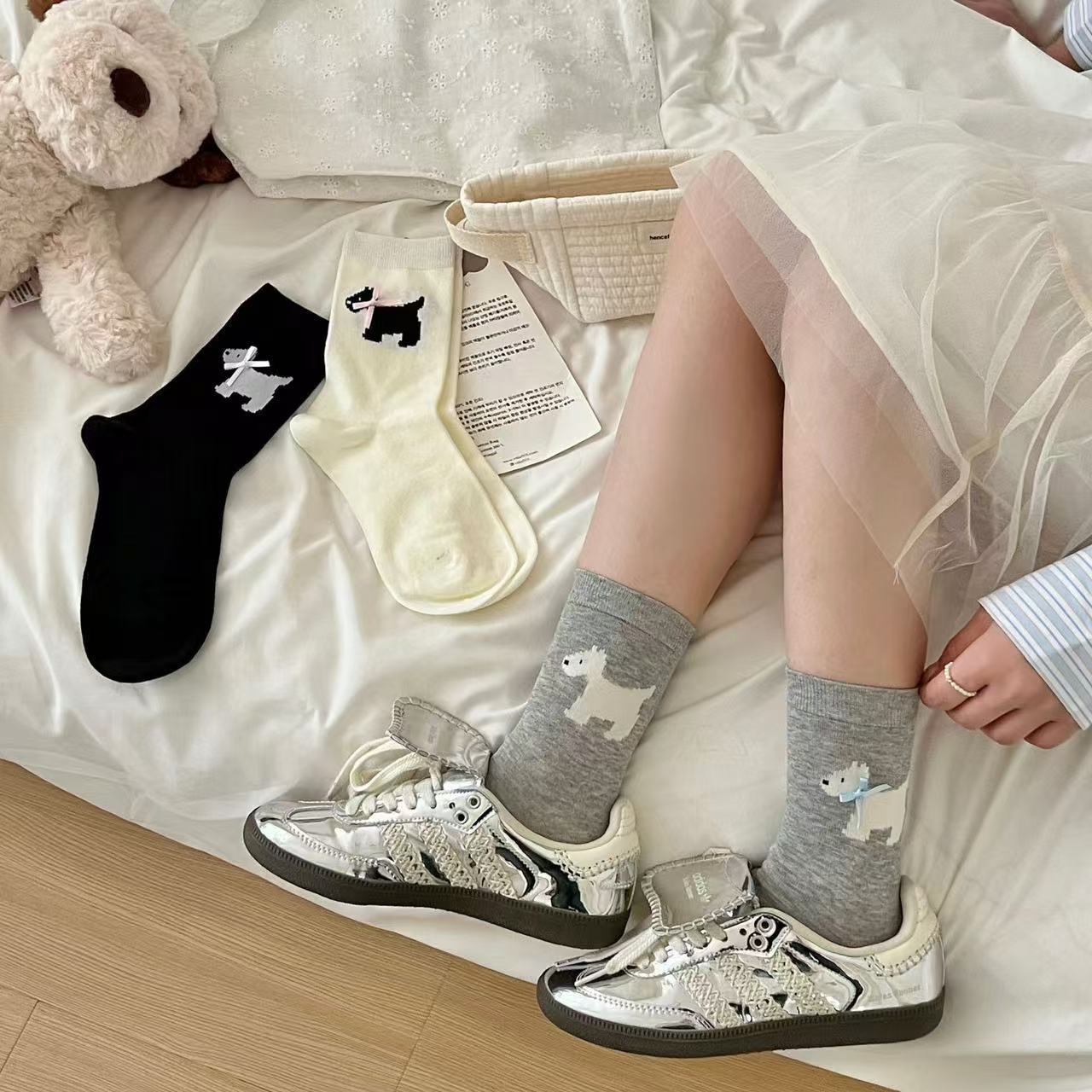 여성용 봄 여름 빗질면 뼈없는 양말 한국어 버전 만화 웨스트 하이랜드 강아지 보우 미드 튜브 양말 귀여운 양말스토어 가기