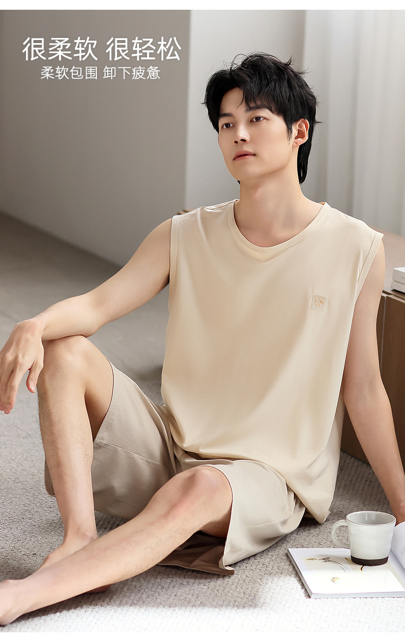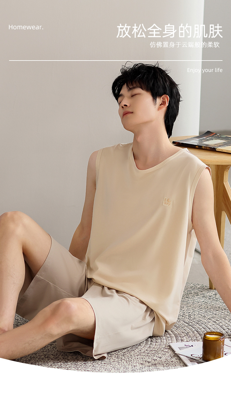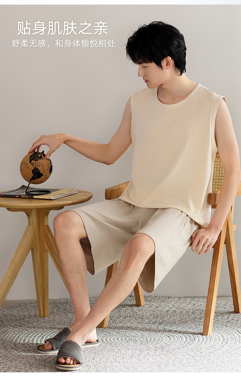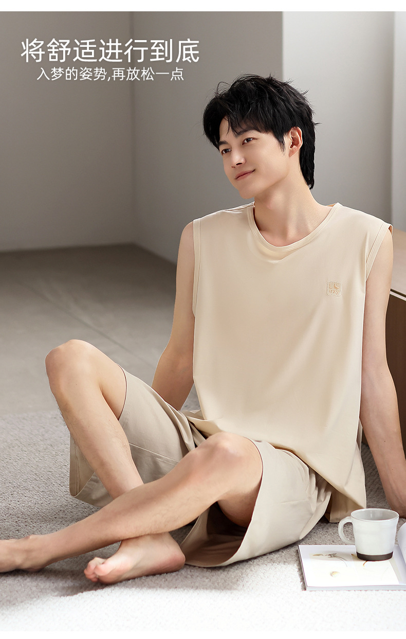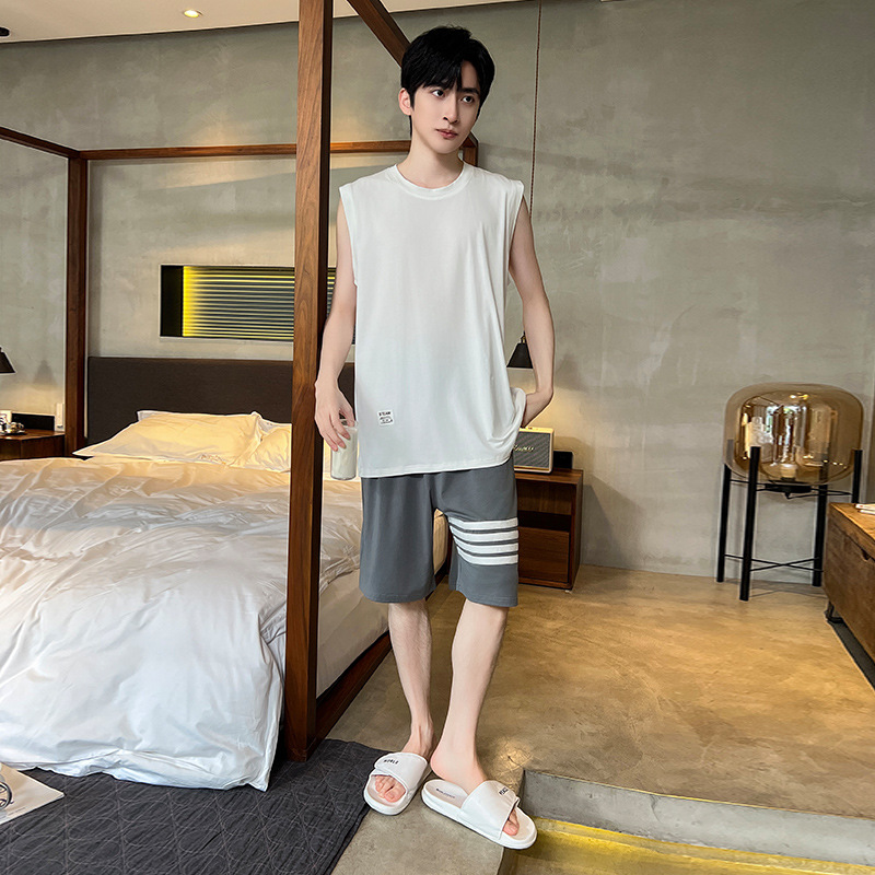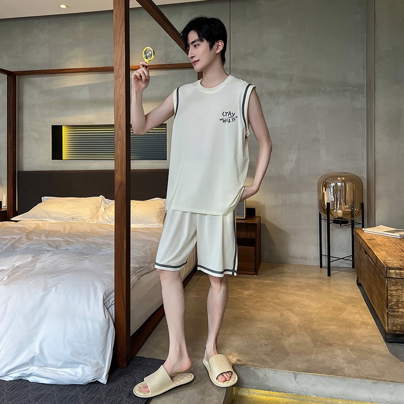 모달 남자 잠옷 여름 얇은 아이스 실크 쿨 조끼 반바지 느슨한 캐주얼 플러스 사이즈 홈 의류 세트스토어 가기