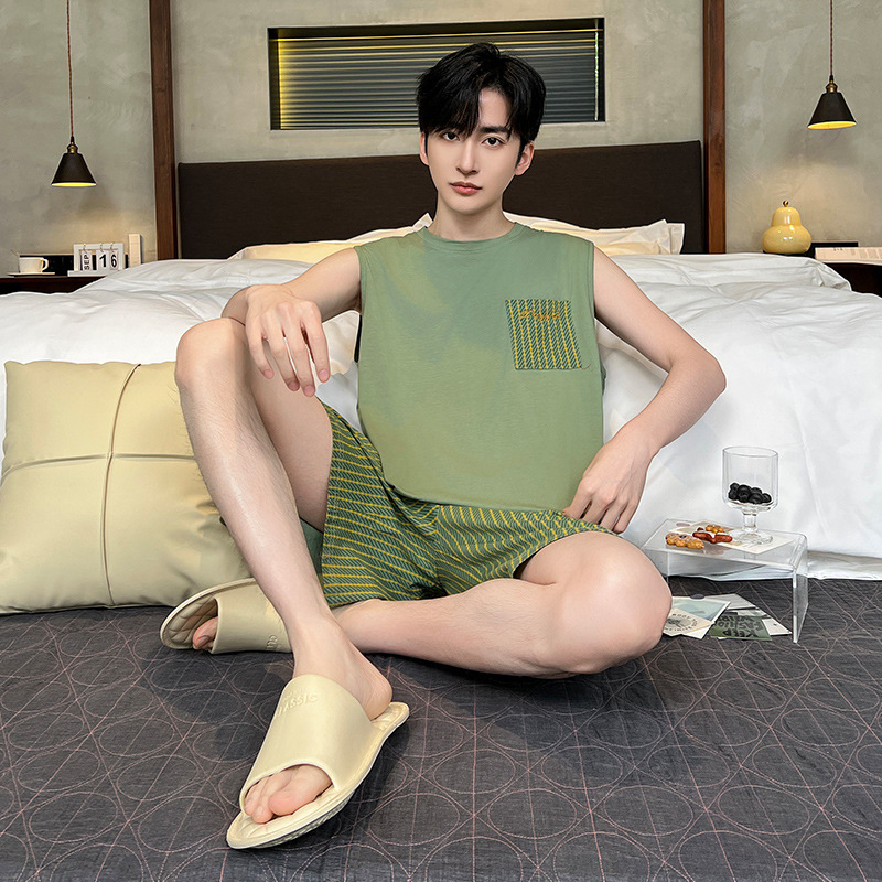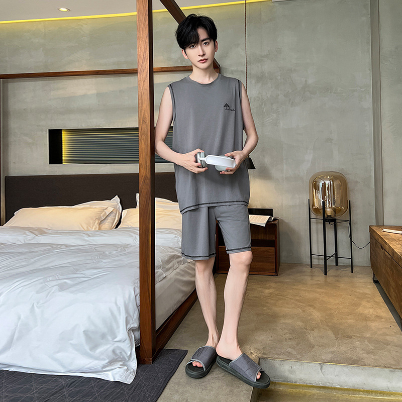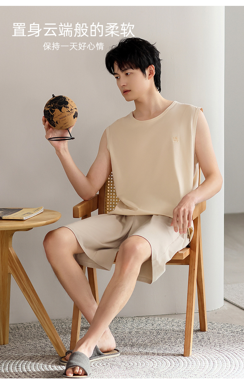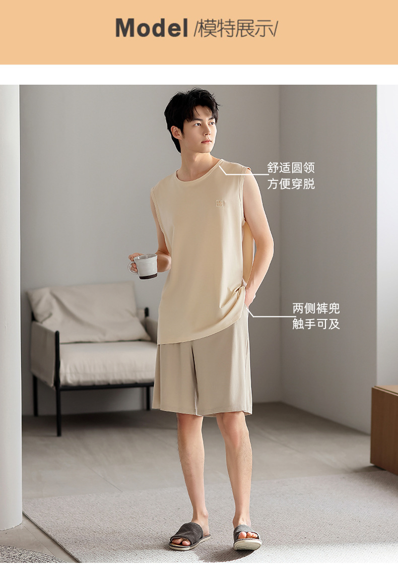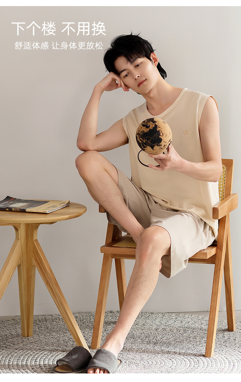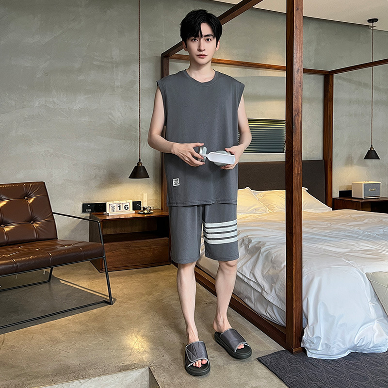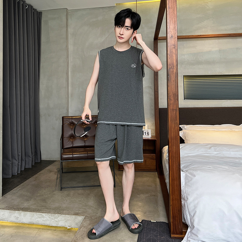 모달 남자 잠옷 여름 얇은 아이스 실크 쿨 조끼 반바지 느슨한 캐주얼 플러스 사이즈 홈 의류 세트스토어 가기