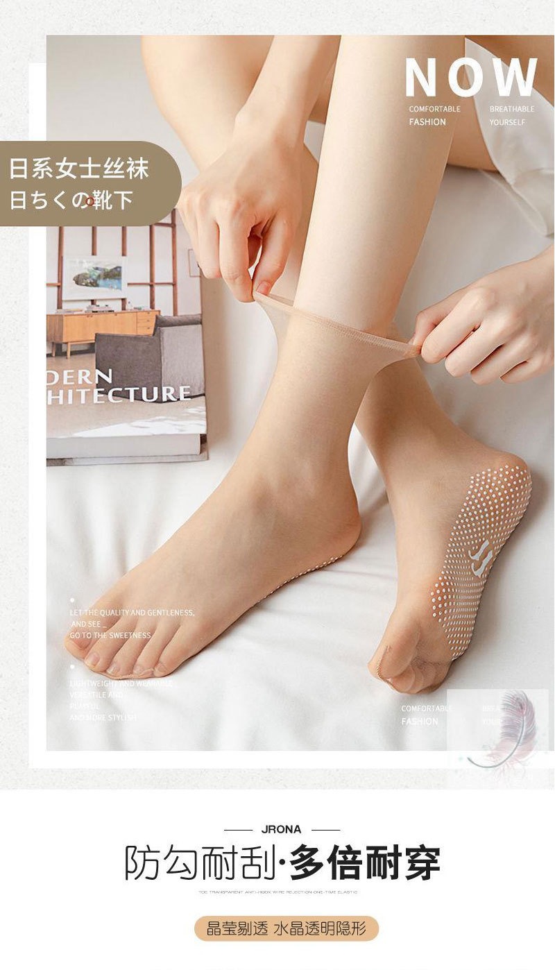 실크 스타킹 여성용 원활한 크리스탈 양말 실리콘 미끄럼 방지 마사지 양말 여름 초박형 안티 후크 보이지 않는 미드 튜브 양말스토어 가기