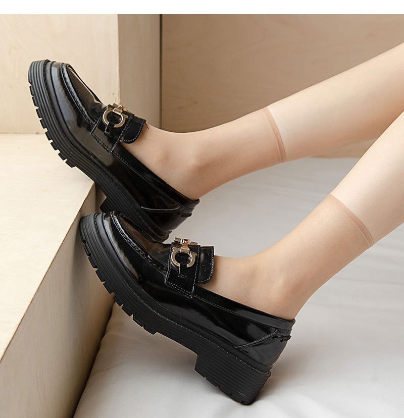 • 초투명 크리스탈 실크 미끄럼 방지 도트 양말 [코튼 블랙]