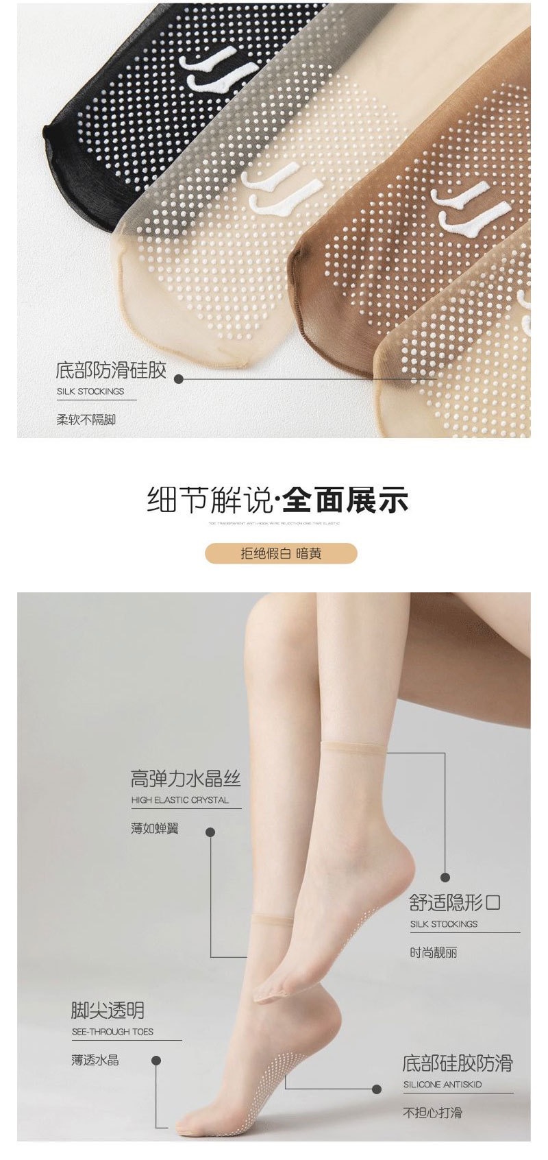 • 초투명 크리스탈 실크 미끄럼 방지 디스펜싱 양말 [스킨 컬러 + 스모크 그레이]
