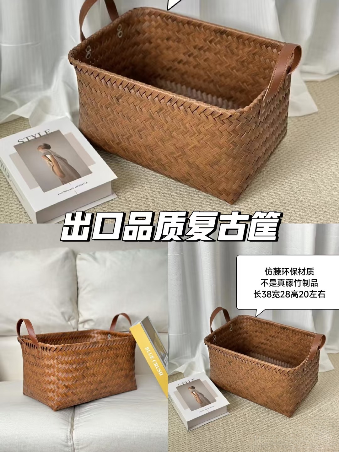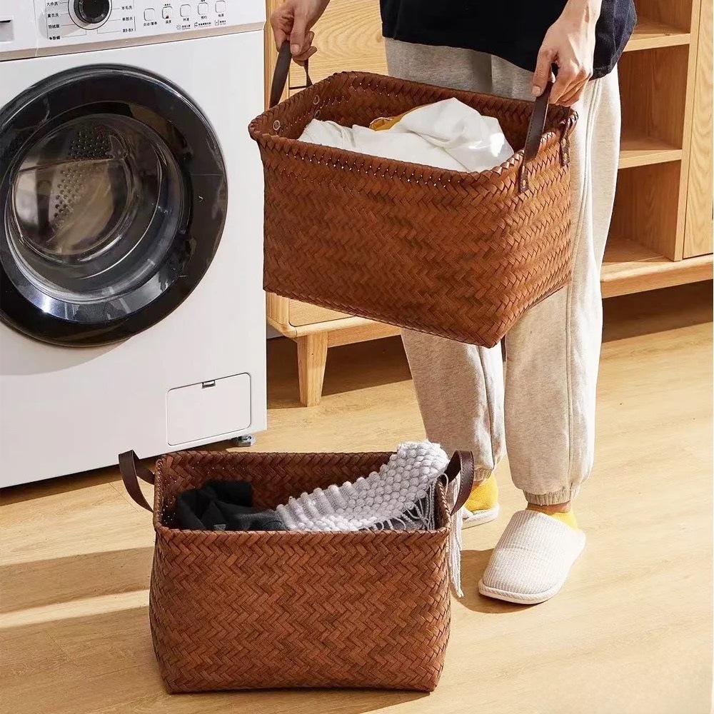 작은 빨간 승마 책 같은 스타일 손으로 짠 저장 바구니 더러운 옷 바구니 가정용 주방 자동차 장난감 간식 보관