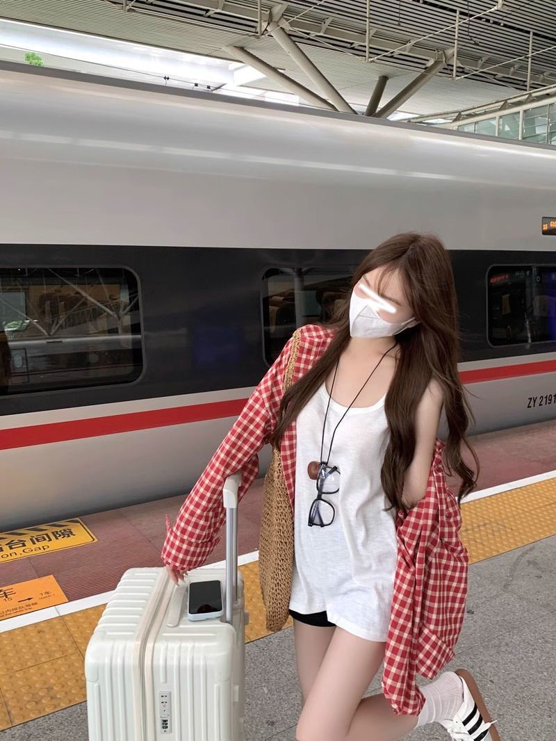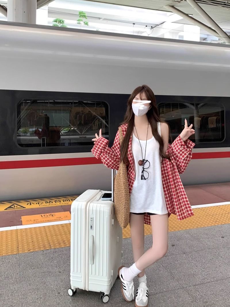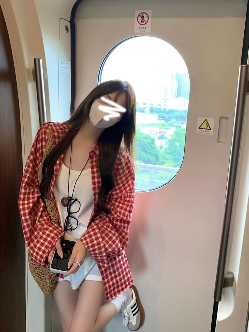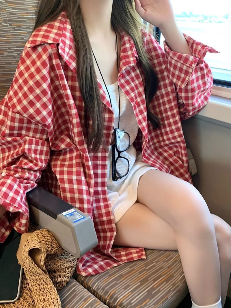 한국식 여름 새 스타일 체크 무늬 캐주얼 태양 보호 셔츠 코트 여성용 게으른 조커 느슨한 카디건 중간 길이 셔츠스토어 가기