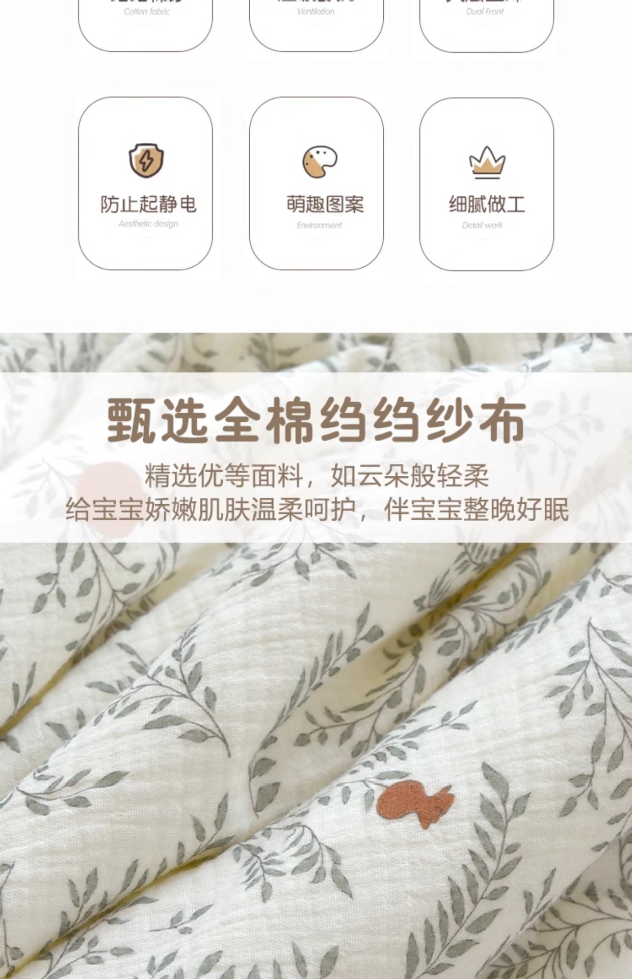 双层泡泡纱纱布,细腻柔软,透气亲肤