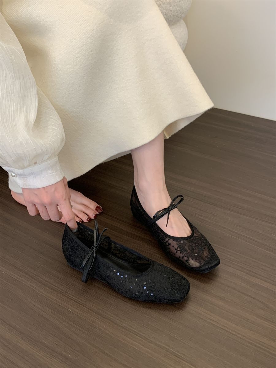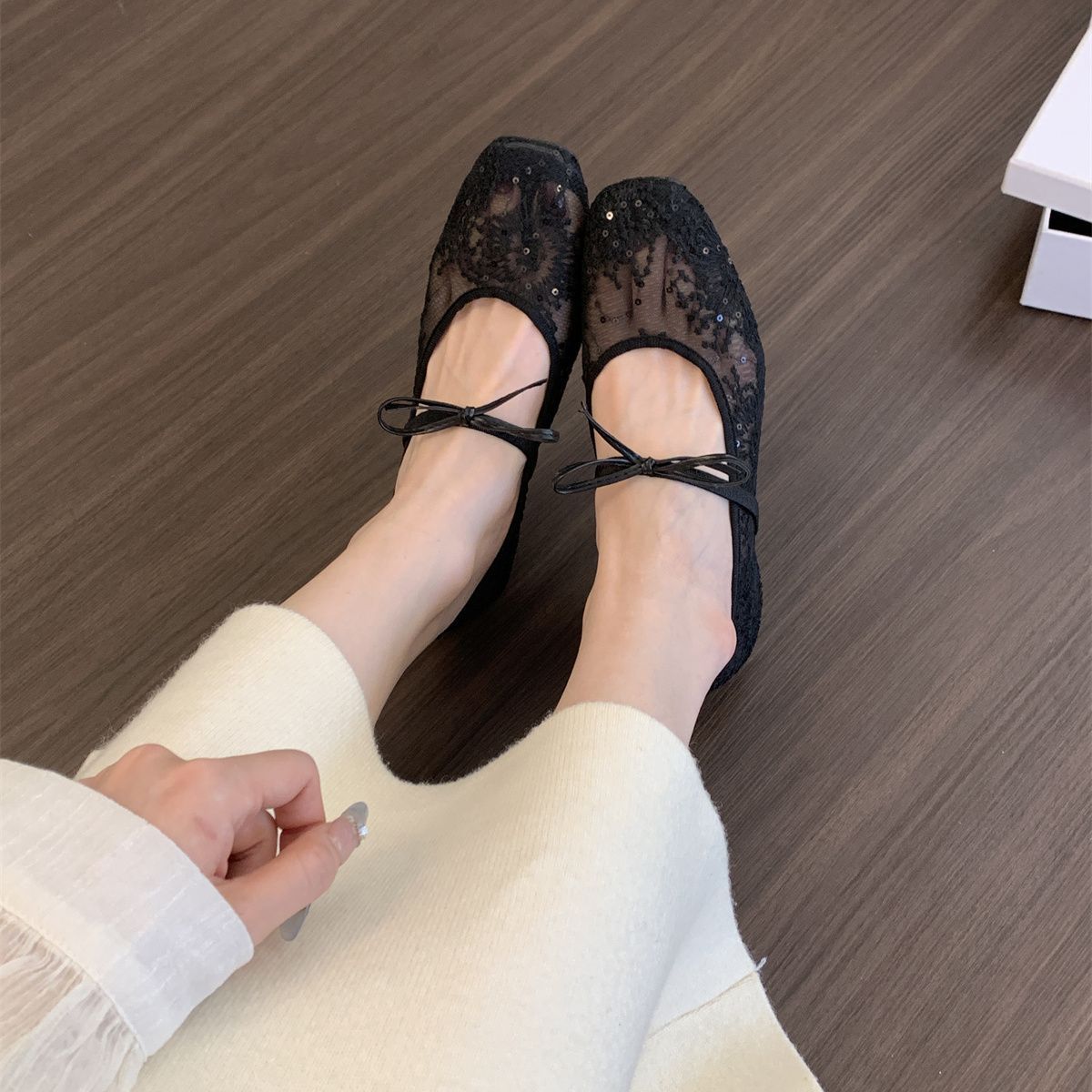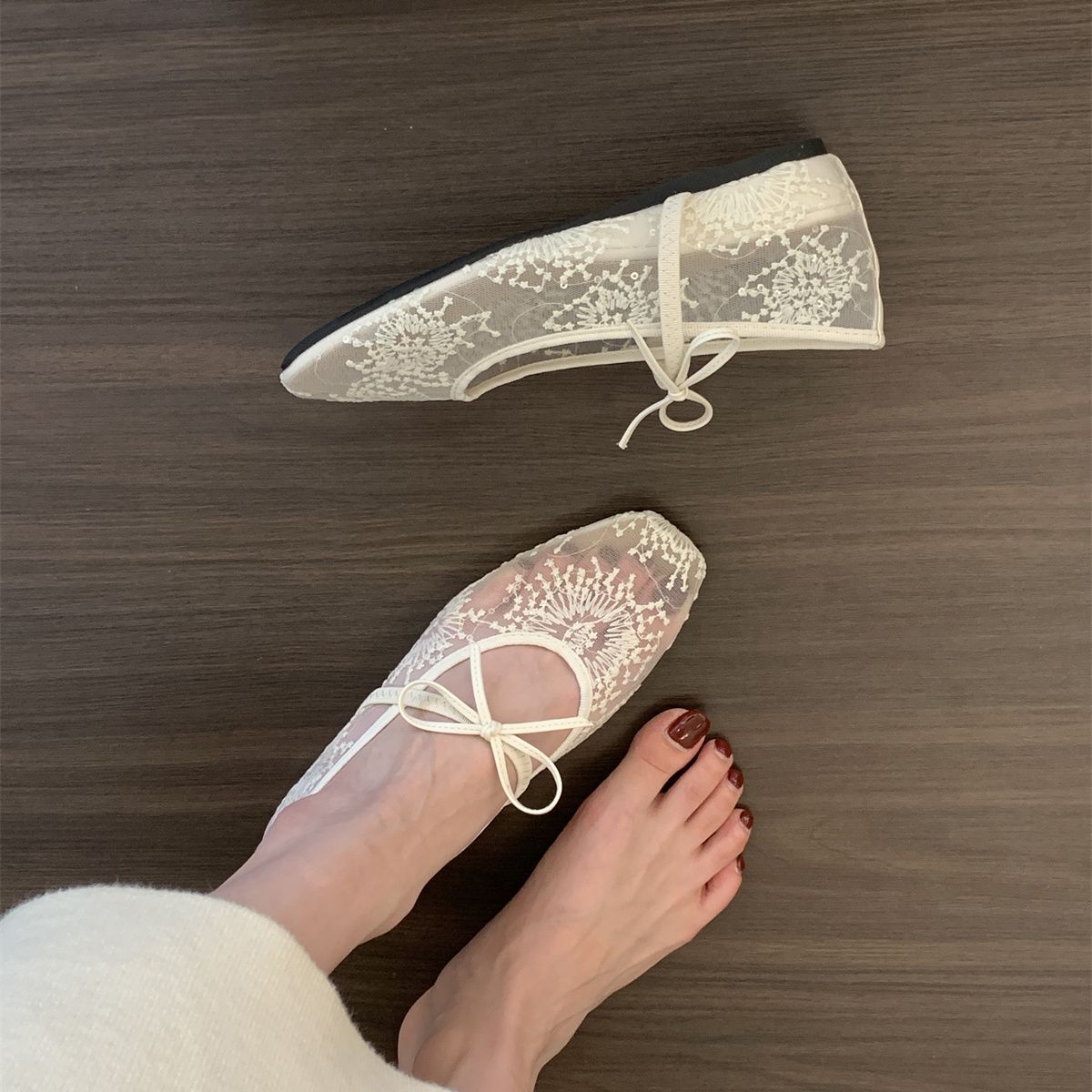 강화 된 여름 메쉬 신발 여성의 2025 년 초봄 새로운 중국 발레 스타일 원피스 요정 통기성 싱글 레이어 신발 샌들스토어 가기
