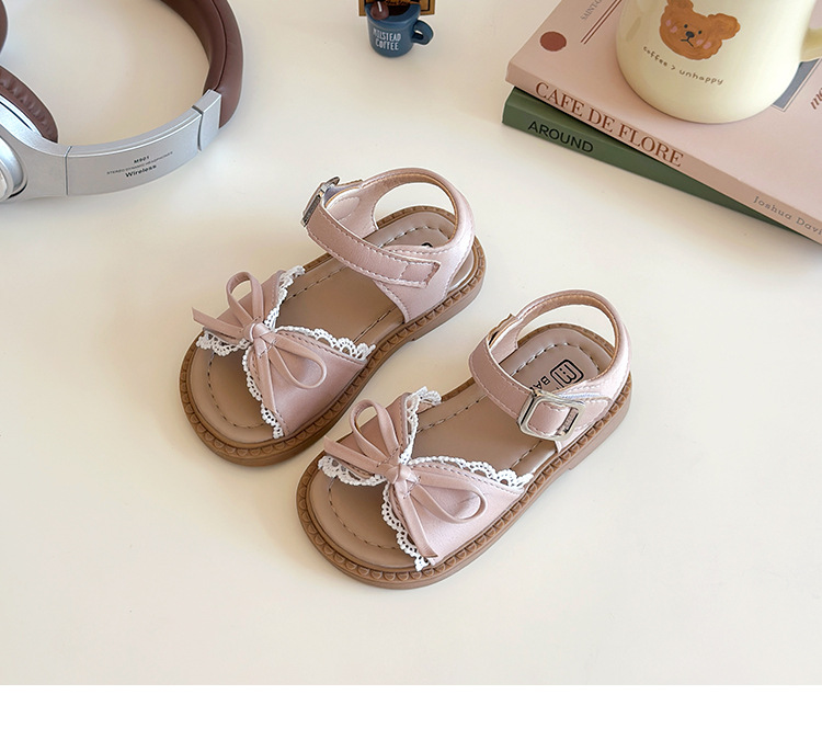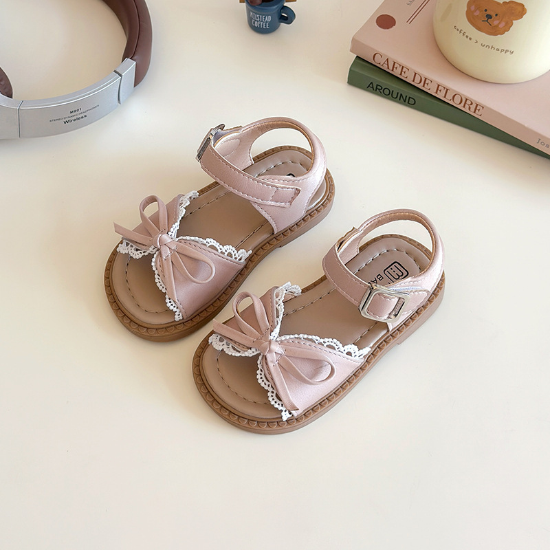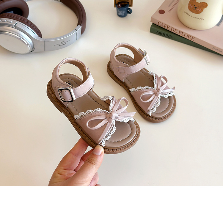새로운 한국 스타일 귀여운 레이스 활 공주 샌들 걸스 샌들 고등학교 학생들을위한 하이 페이스 값 부드러운 밑창 샌들스토어 가기
