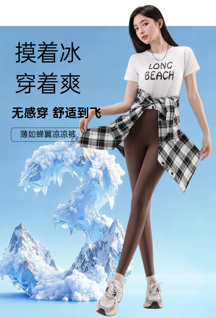 높은 탄성 경량 알몸 우유 가죽 바지 얼음 느낌 마이크로 압력 계란 마스크 바지 벨리 투킹 요가 에어컨 바비 레깅스 여성스토어 가기