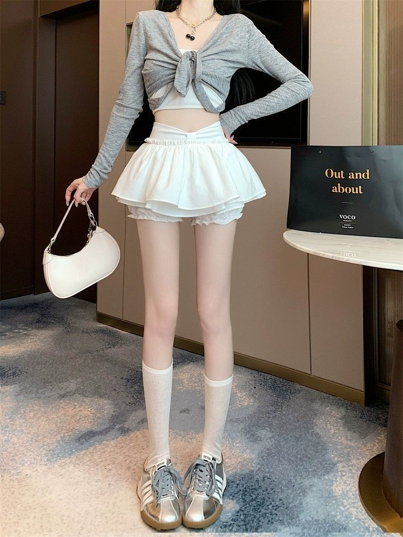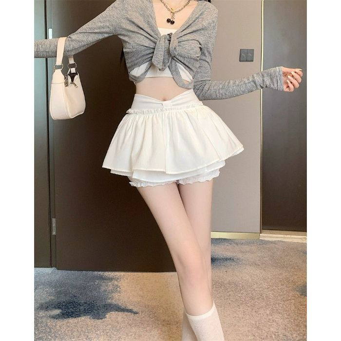 순수한 욕망 스타일 핫 소녀 푹신한 스커트 여성 여름 하이 웨이스트 a 라인 케이크 스커트 노출 방지 작은 초단축 스커트스토어 가기