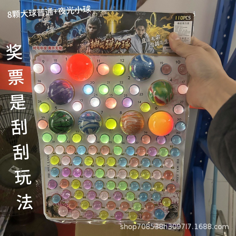5毛110入儿童玩具弹力球抽奖发光大中小号实心蹦蹦跳跳实物纸吊板