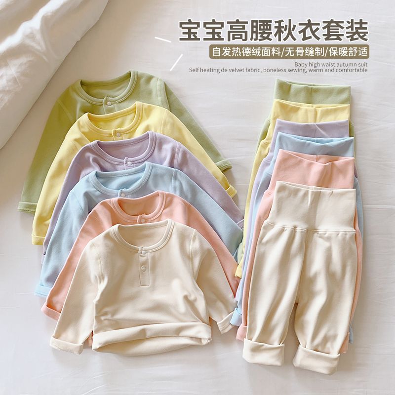 남아 및 여아용 아동용 보온 속옷 세트, 하이웨이스트 배 보호 가을 옷 및 긴 바지, 유아 및 중년 아동용 봄, 가을 옷스토어 가기