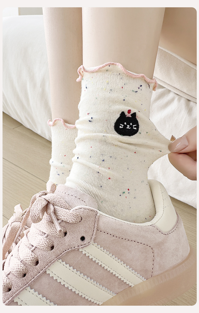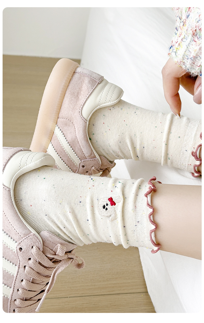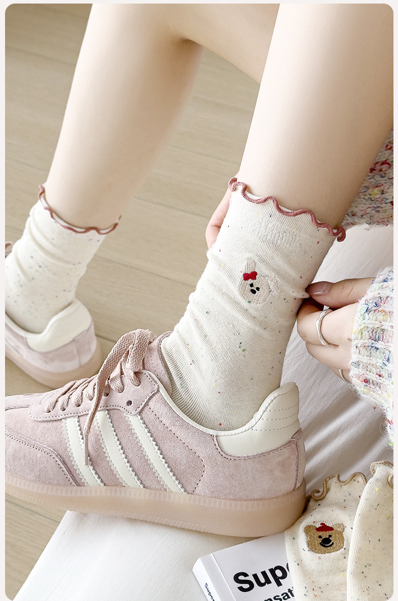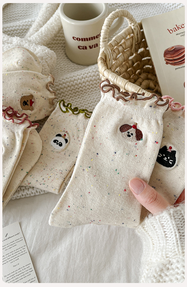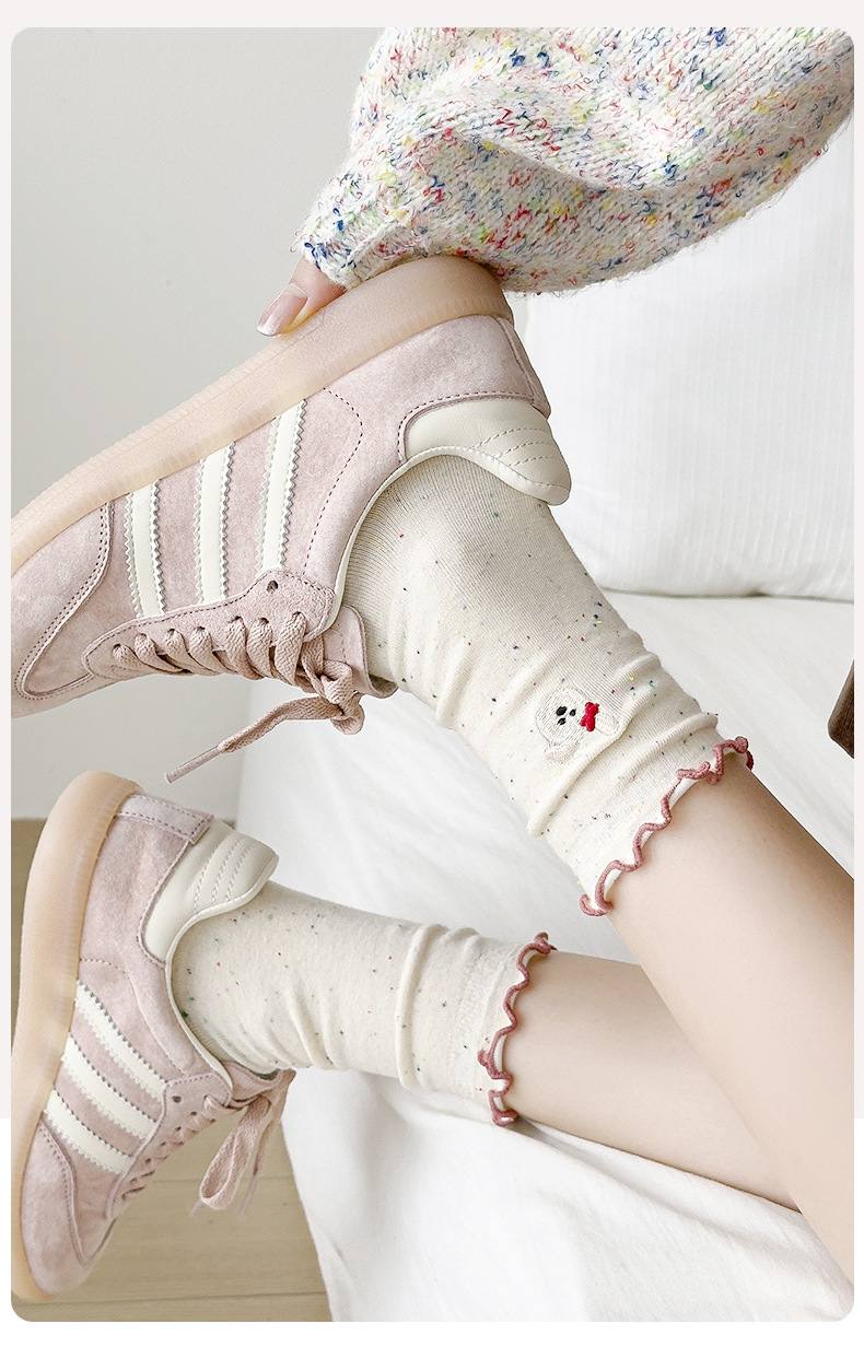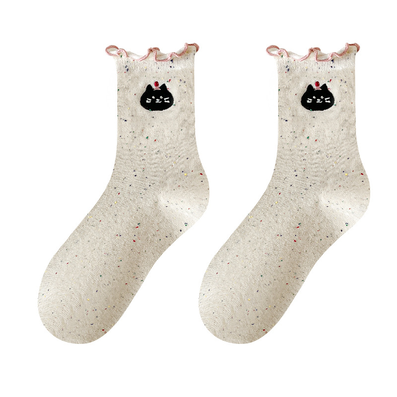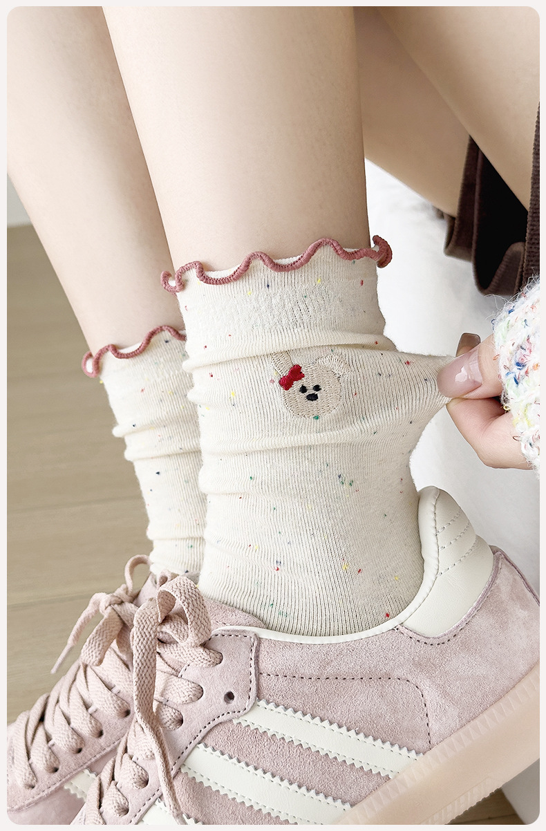 양말 여성의 봄과 가을 대학 스타일 미드 튜브 양말 귀여운 만화 귀 가장자리 학생 양말 Ins 유행 포인트 원사 스택 양말