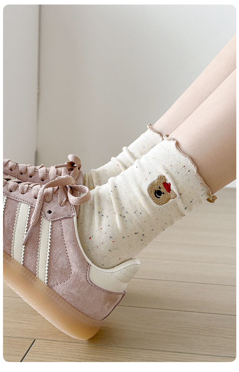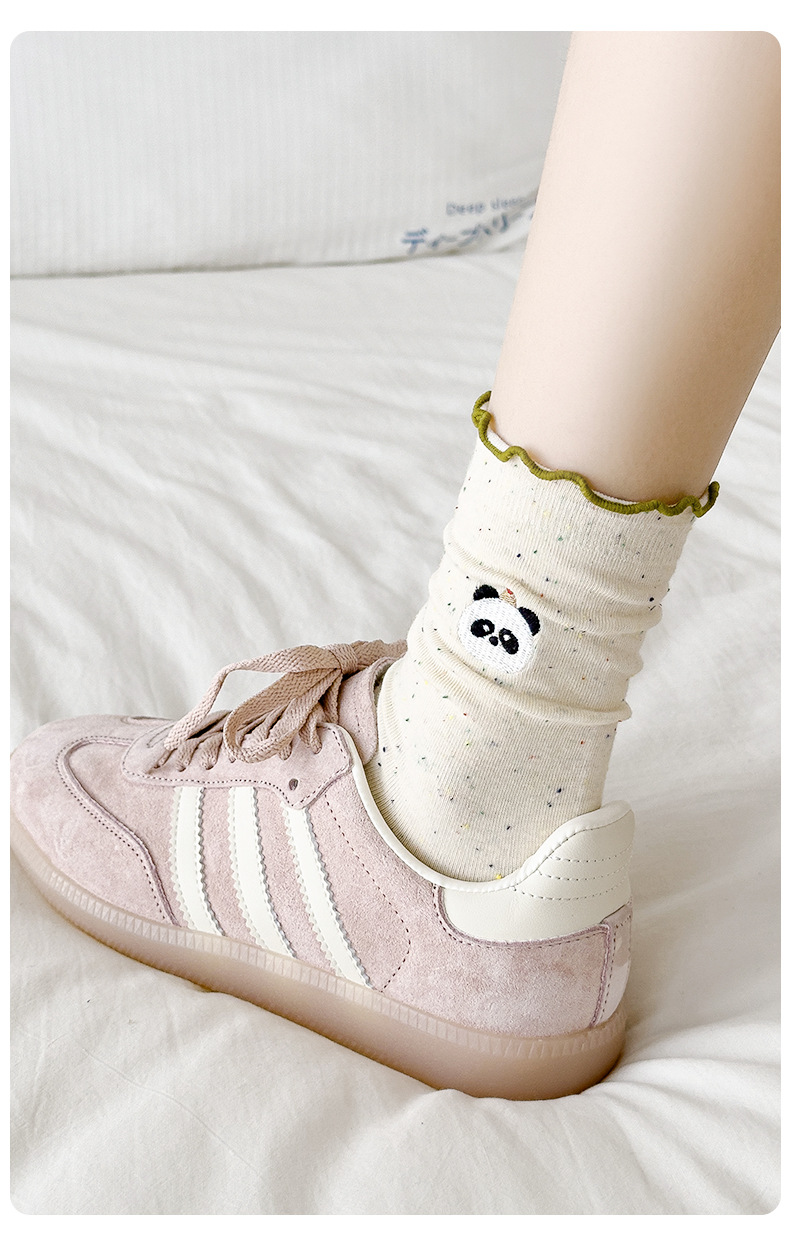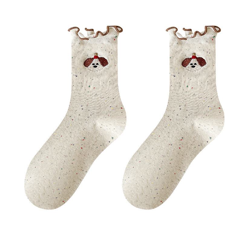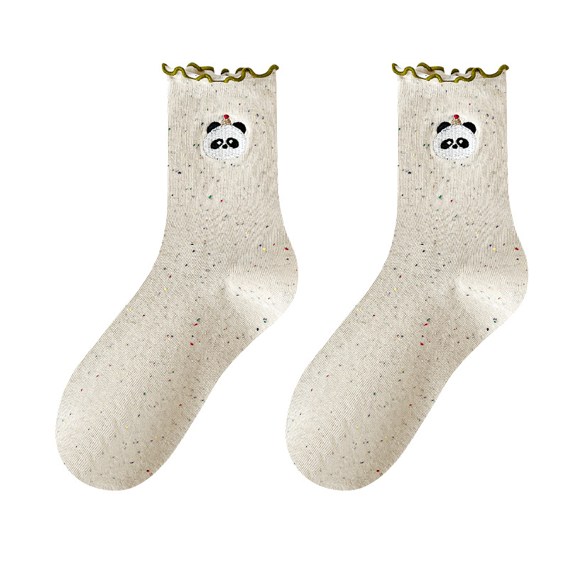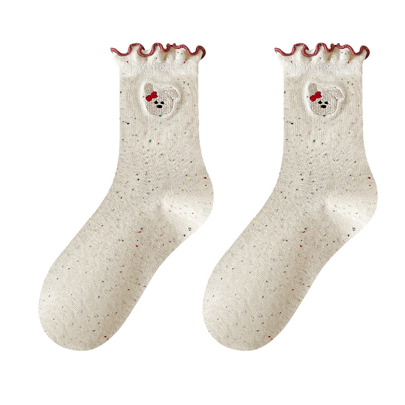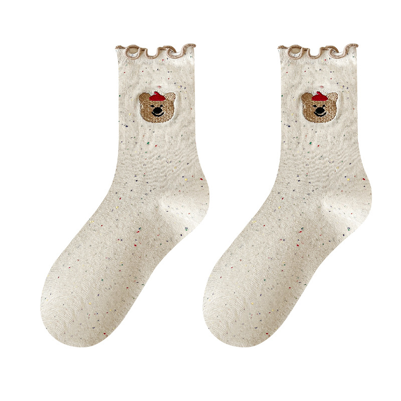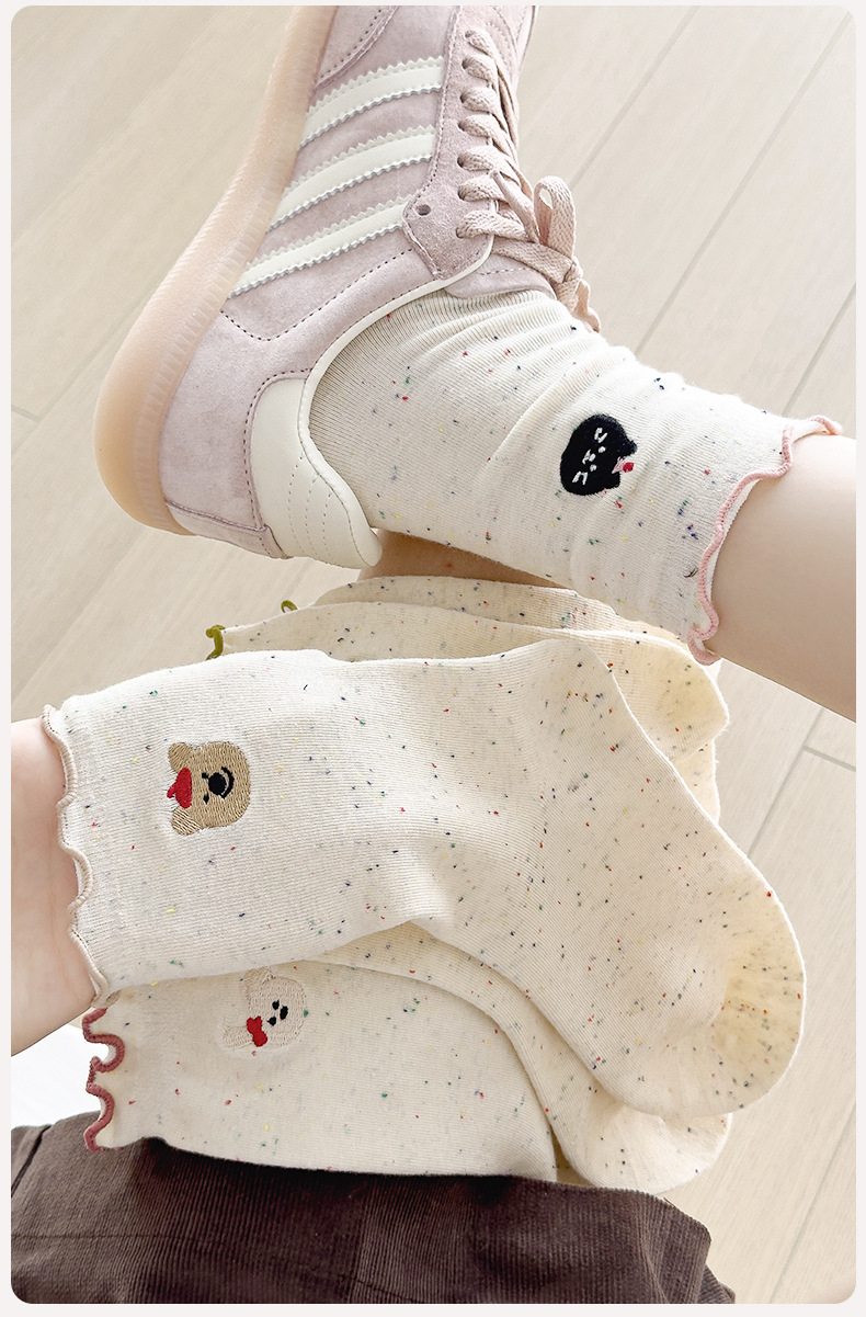 양말 여성의 봄과 가을 대학 스타일 미드 튜브 양말 귀여운 만화 귀 가장자리 학생 양말 Ins 유행 포인트 원사 스택 양말