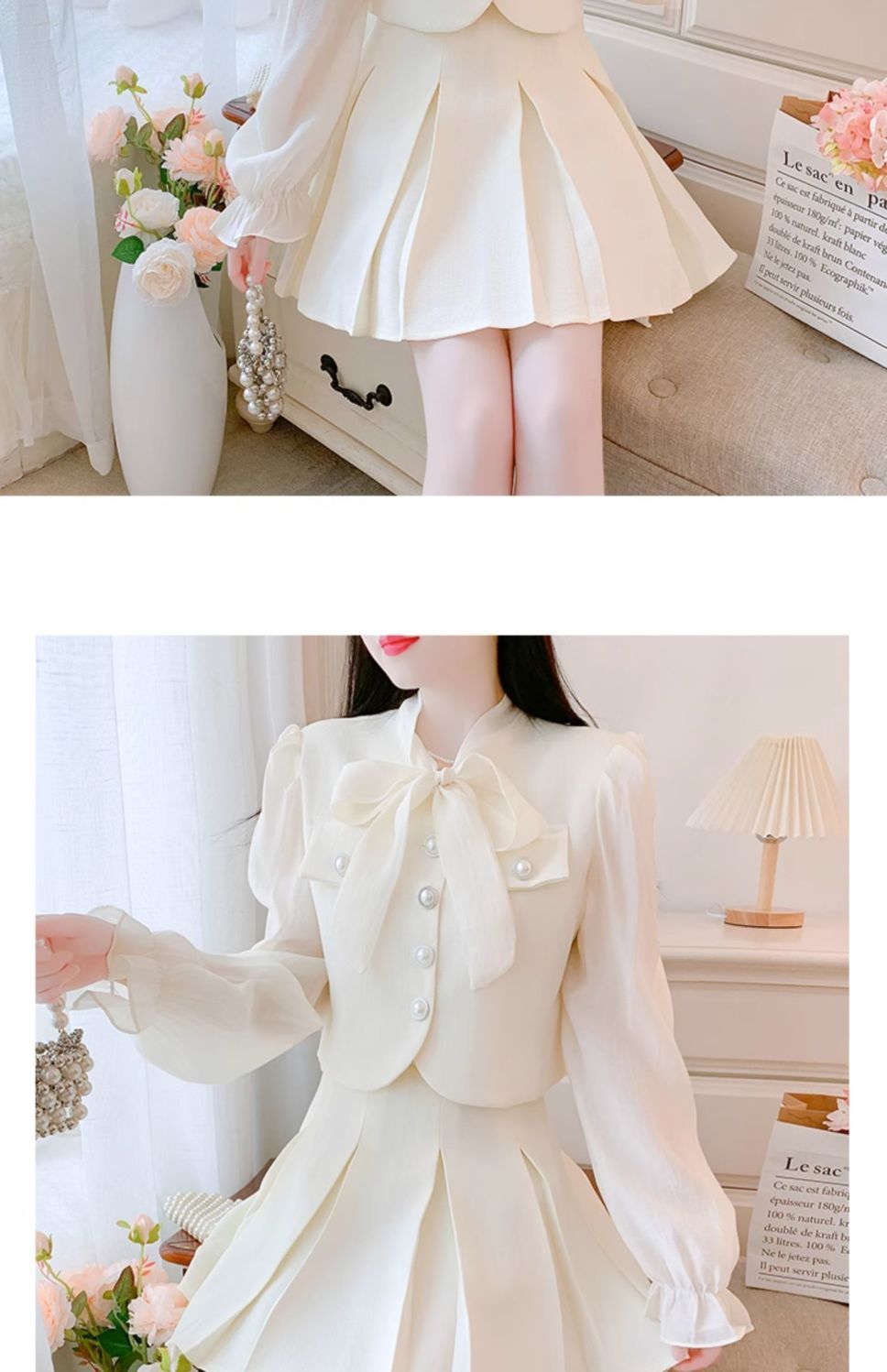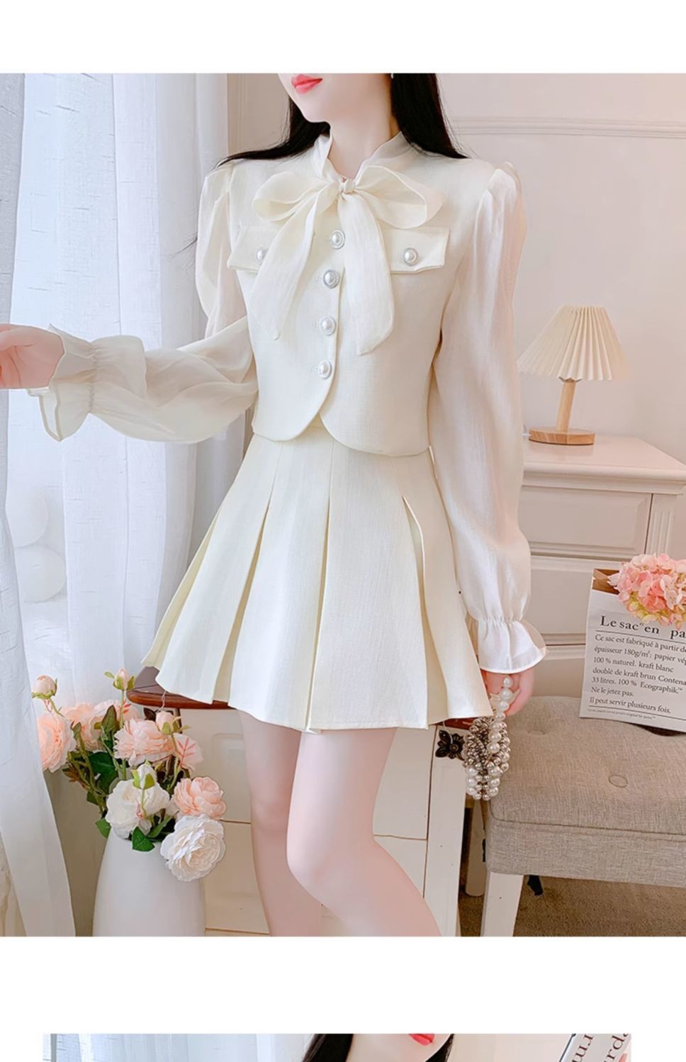 • 오프화이트 탑+스커트 투피스 세트