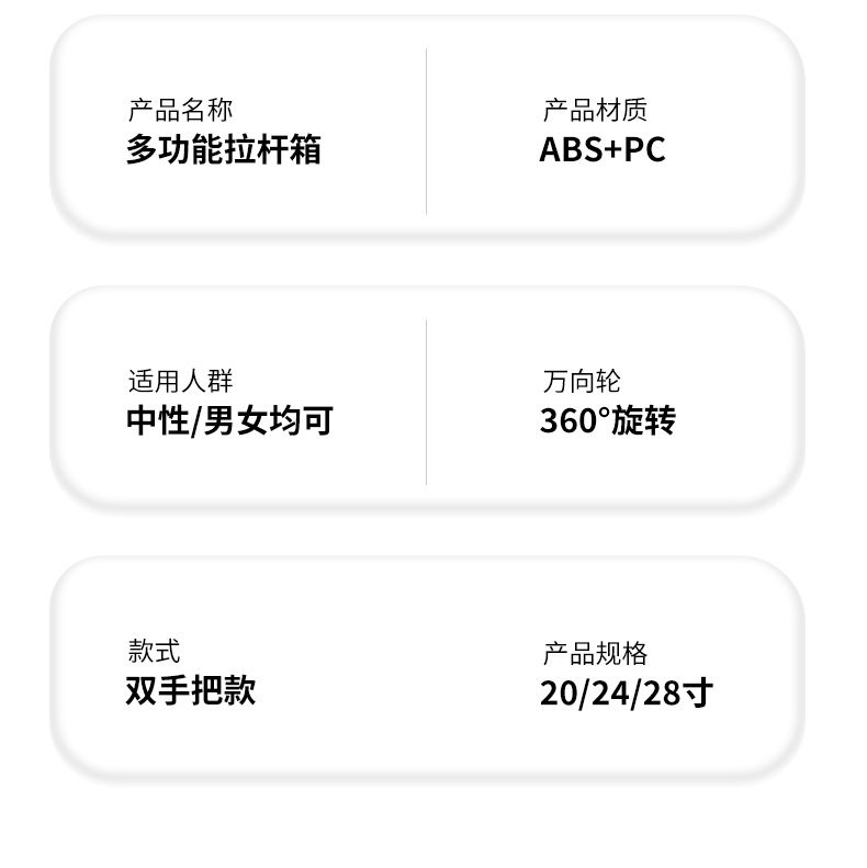 외국 무역용 3종 세트 물컵 홀더 여행가방 방폭 지퍼 여행가방 브레이크 휠 트롤리 케이스 회전 바퀴 기내용 캐리어스토어 가기
