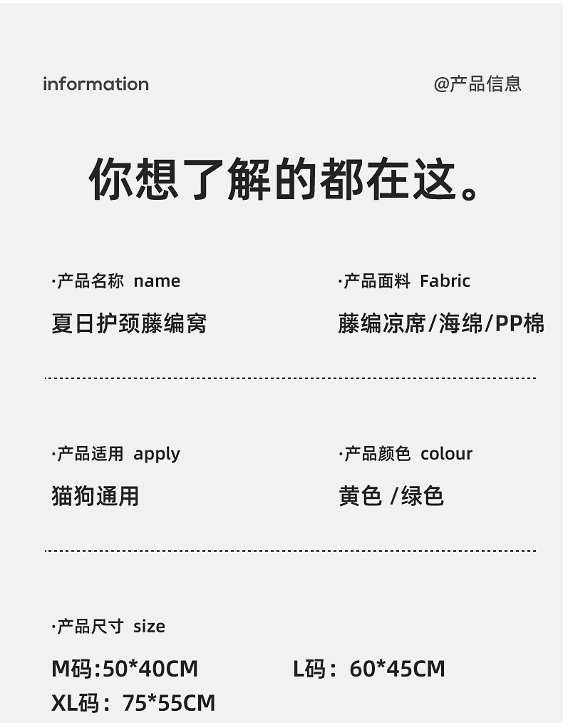새로운 냉각 및 통기성 등나무 매트, 고양이 긁힘 방지 및 내마모성 얼음 매트, 여름 개집, 두꺼운 목 보호 베개 및 냉각 매트스토어 가기