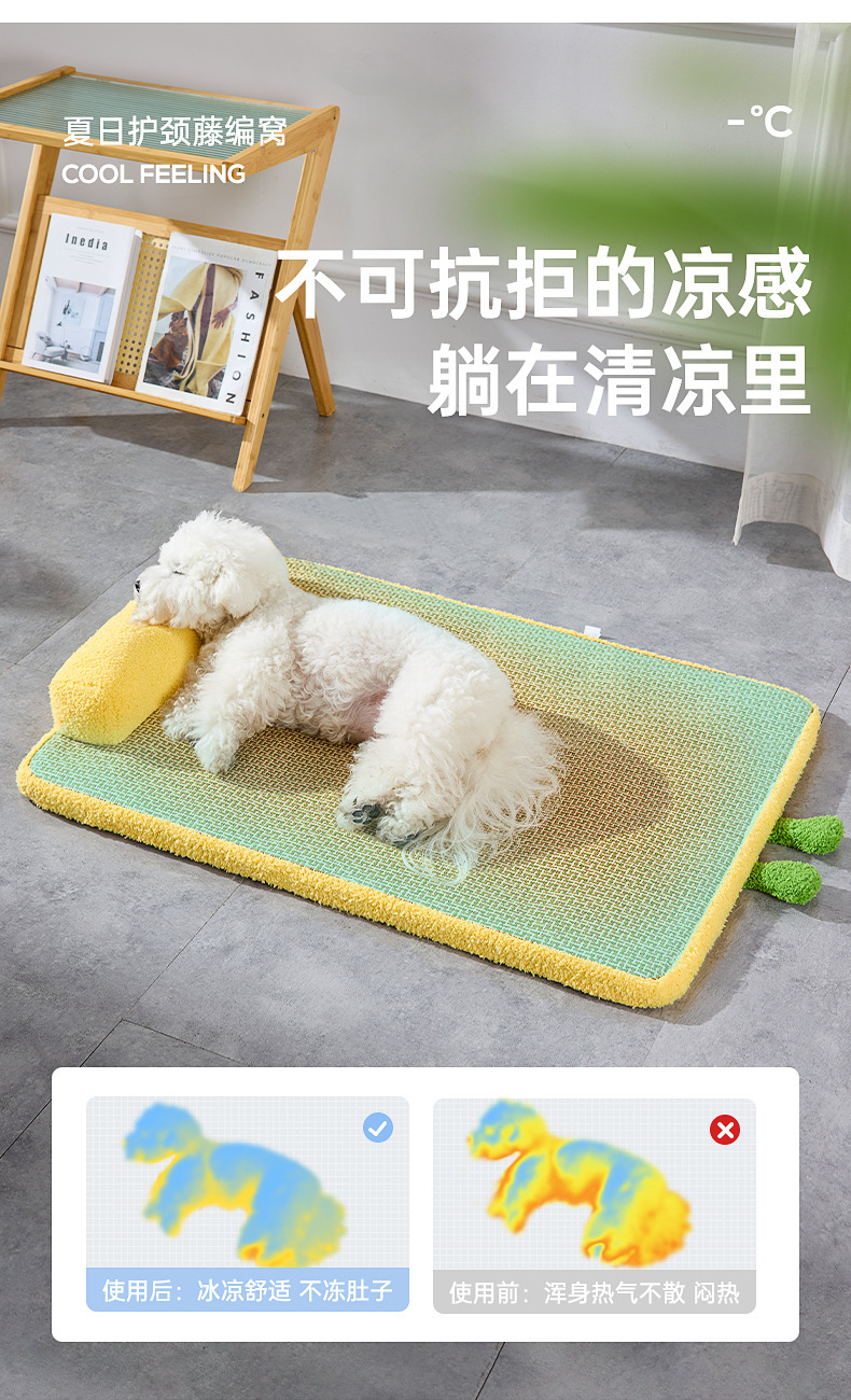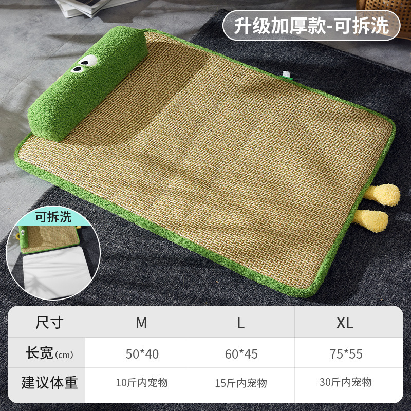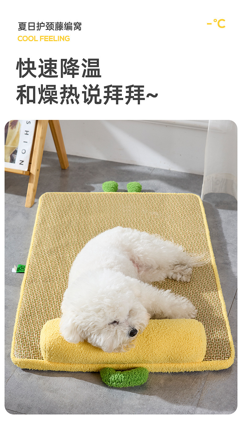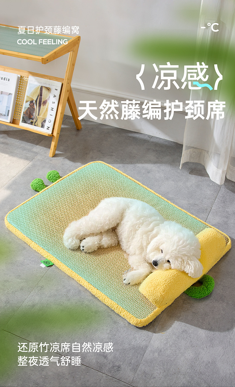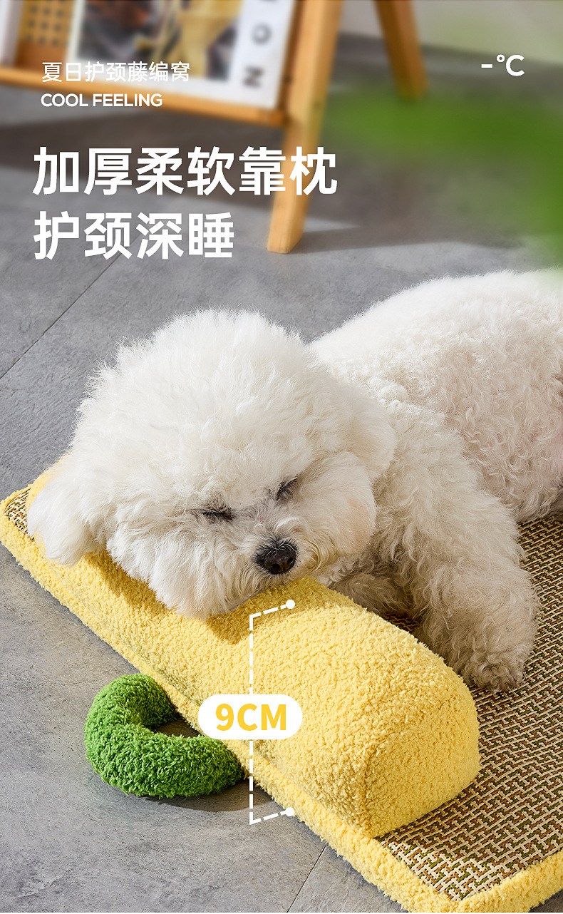 새로운 냉각 및 통기성 등나무 매트, 고양이 긁힘 방지 및 내마모성 얼음 매트, 여름 개집, 두꺼운 목 보호 베개 및 냉각 매트
