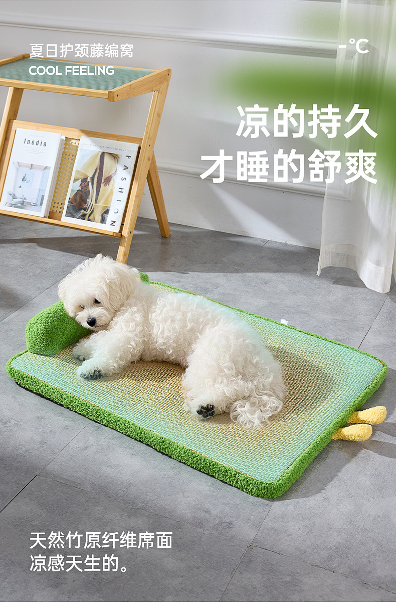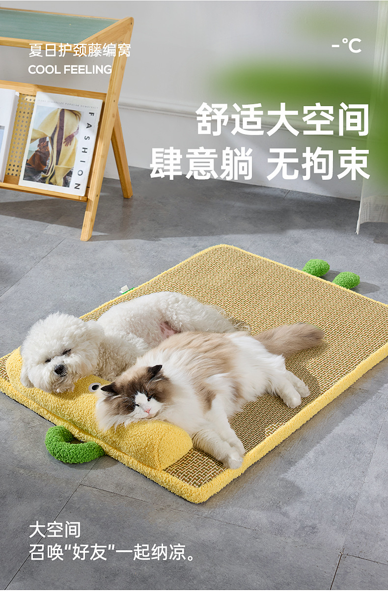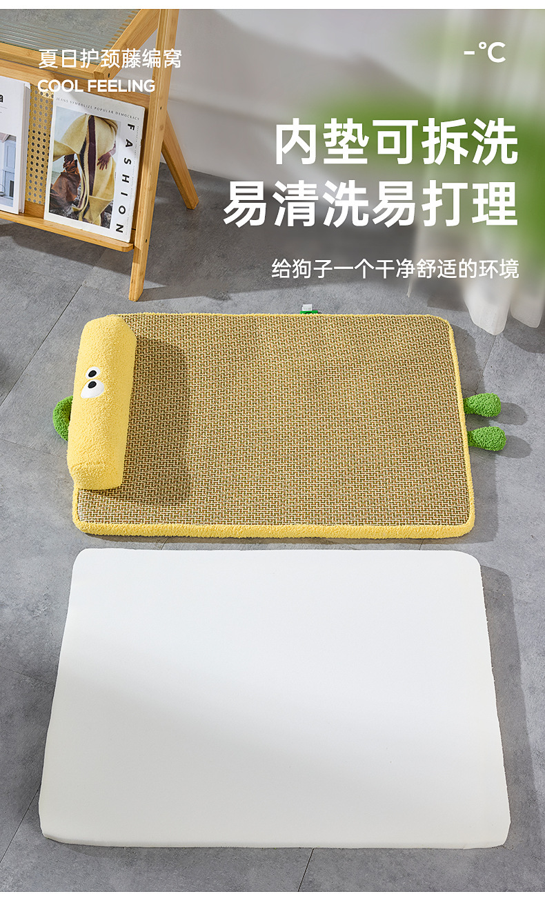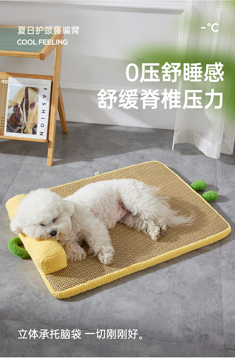 새로운 냉각 및 통기성 등나무 매트, 고양이 긁힘 방지 및 내마모성 얼음 매트, 여름 개집, 두꺼운 목 보호 베개 및 냉각 매트