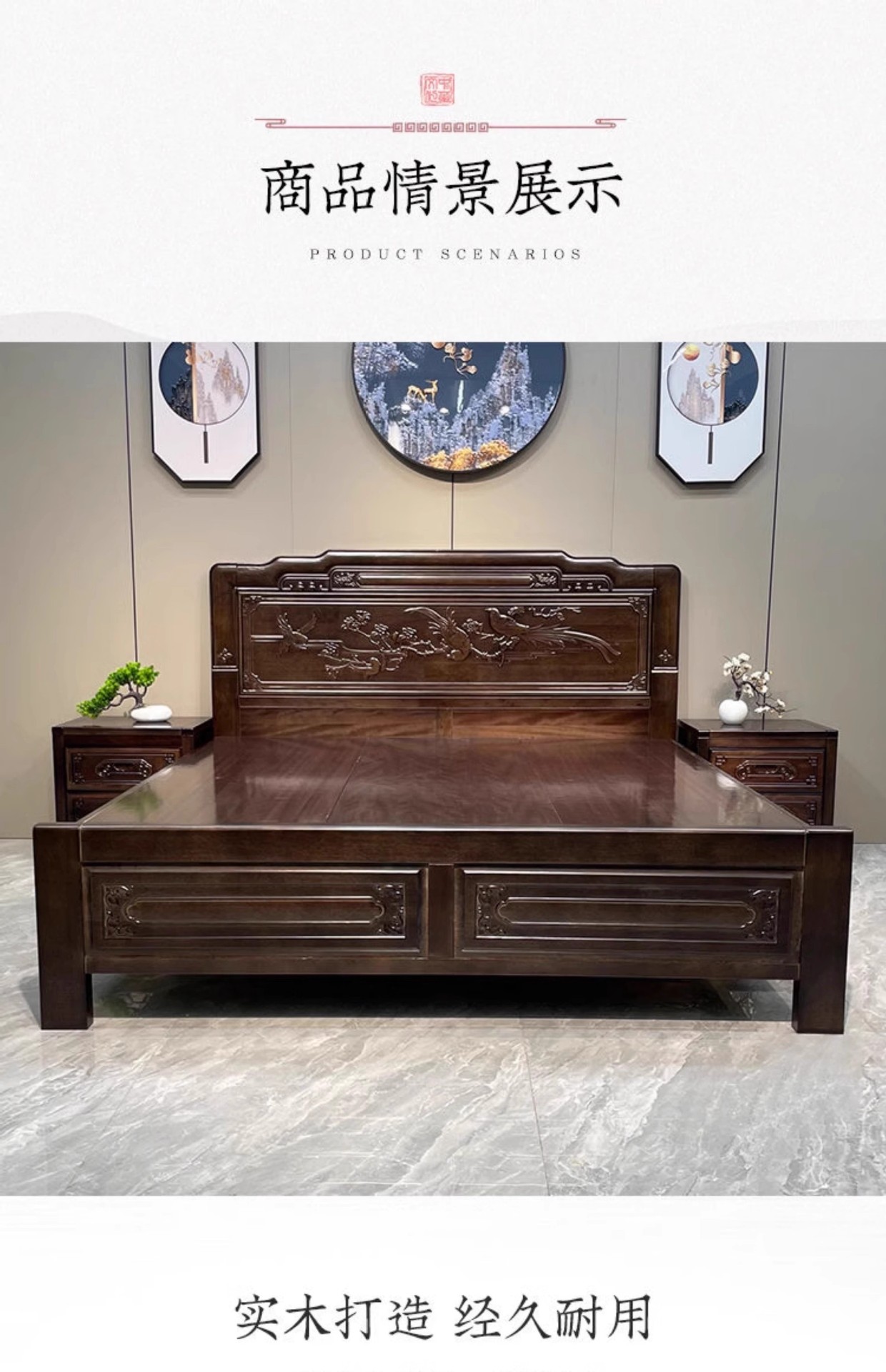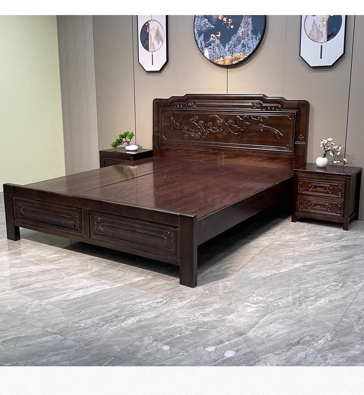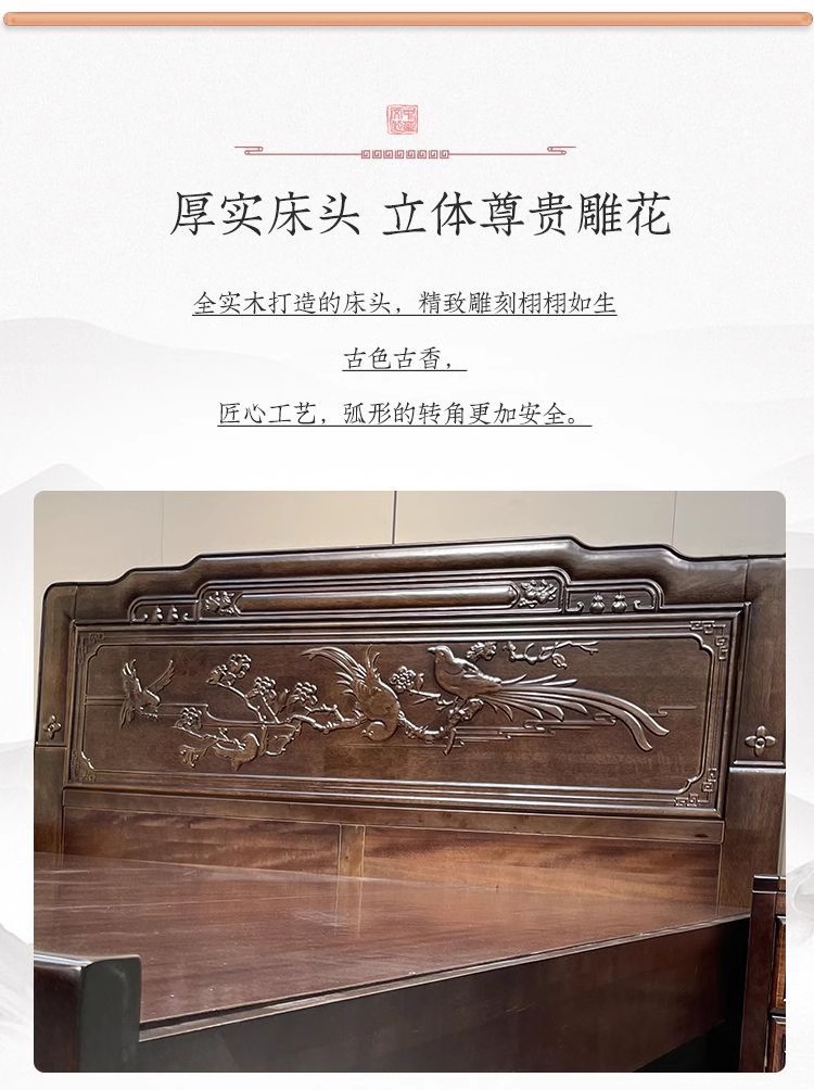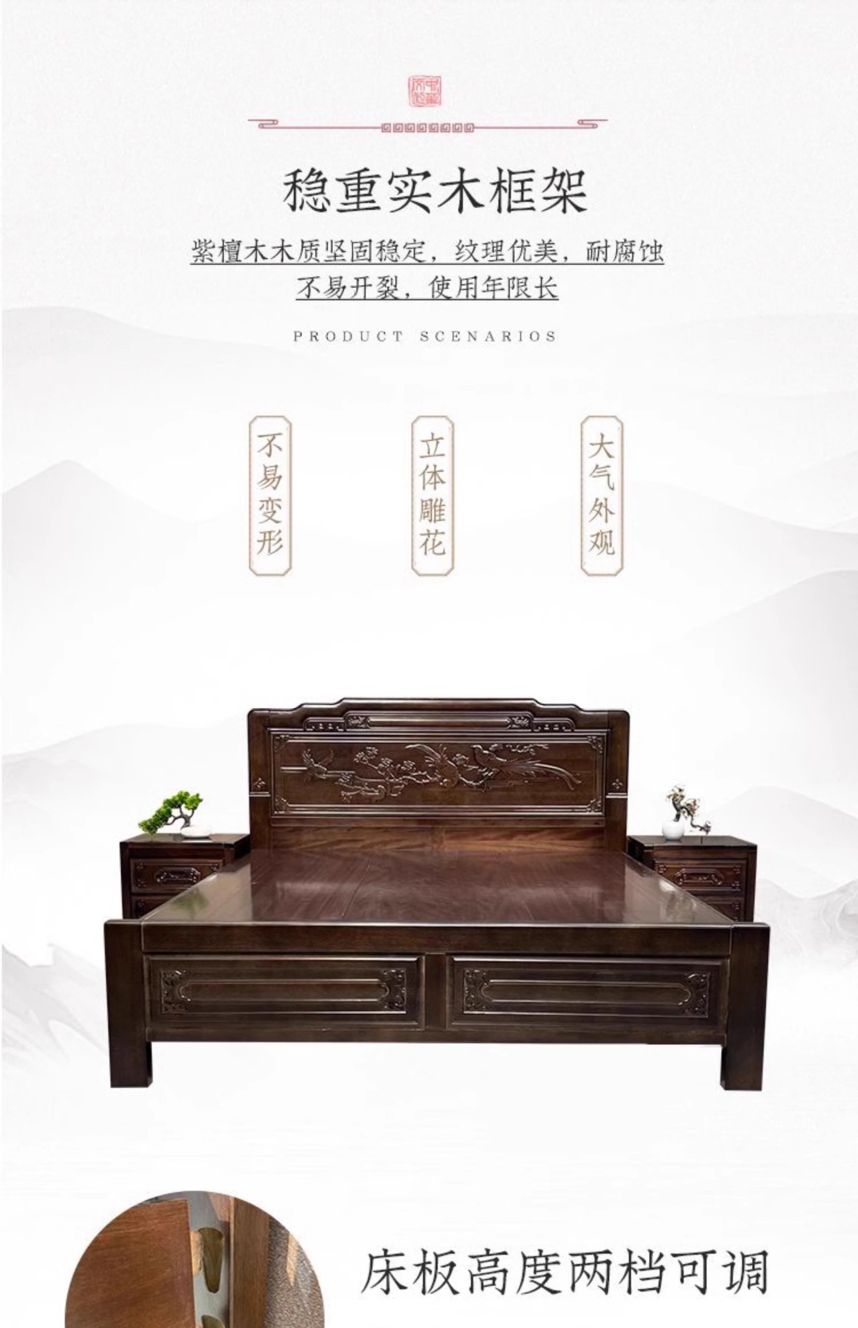 완전한 모따구조의 붉은단단한 원목침대, 두꺼운 더블침대, 중국 명청시대 고전 조각의 고풍스러운 마스터침대