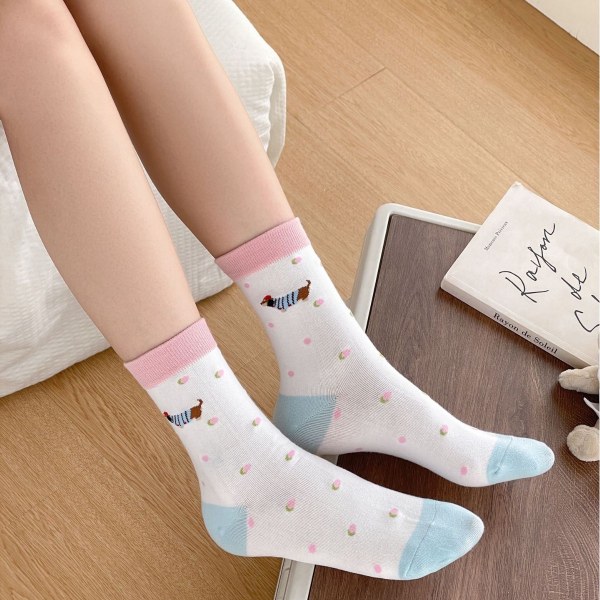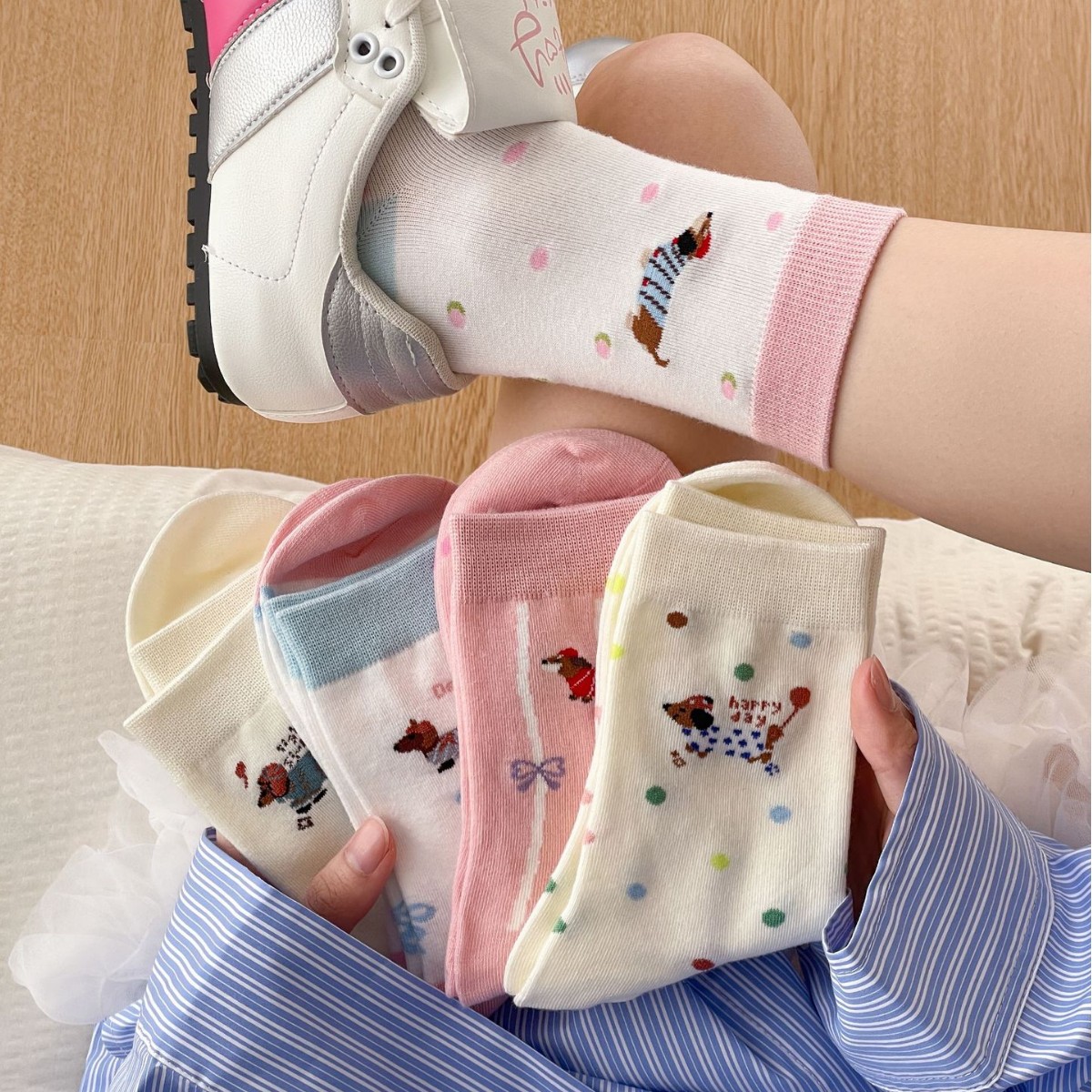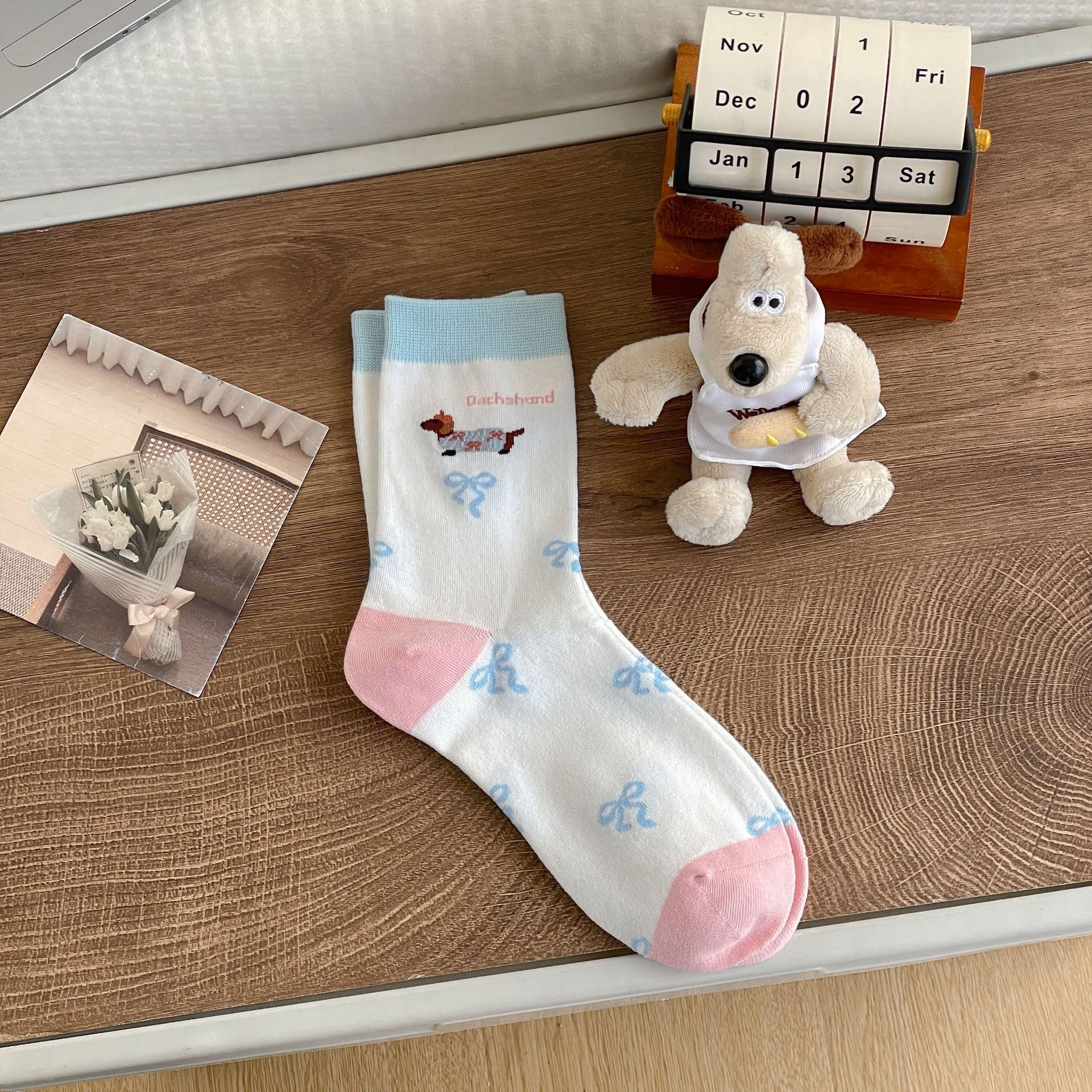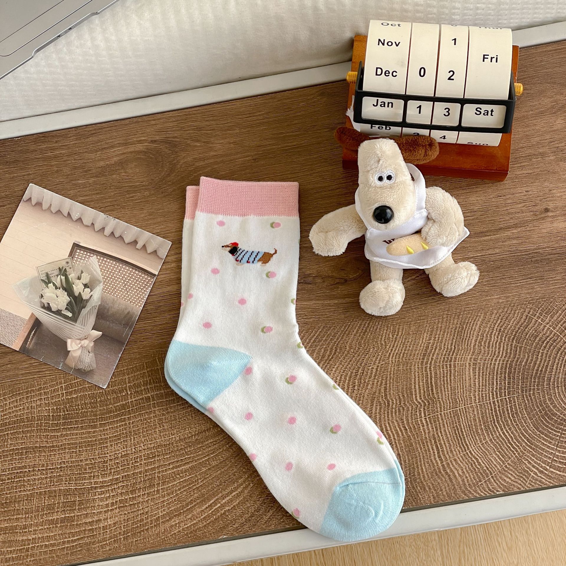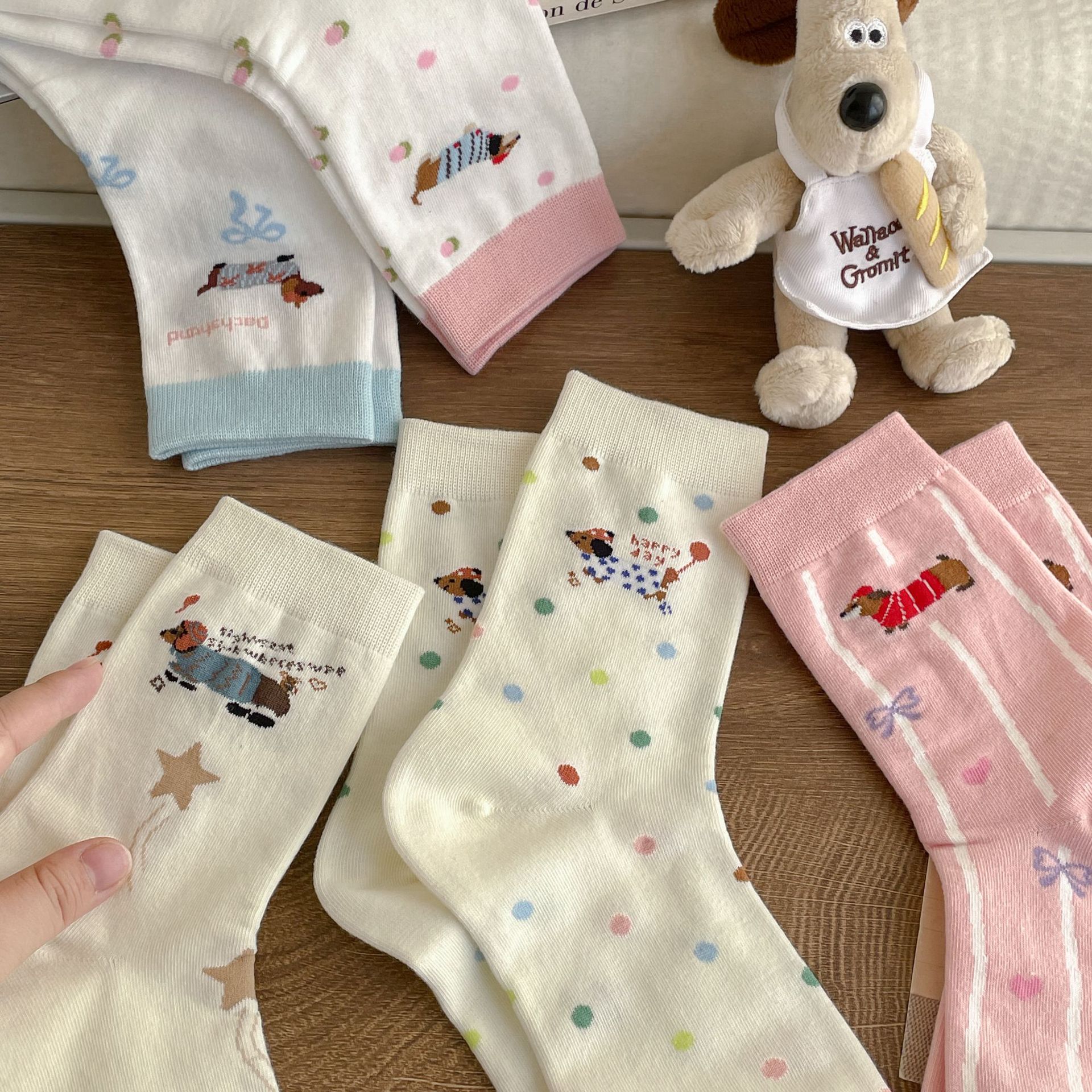 만화 소시지 강아지 양말 중간 배럴 조수 Zhuji 면화 양말 봄과 여름 일본 귀여운 소녀 스타킹 도매