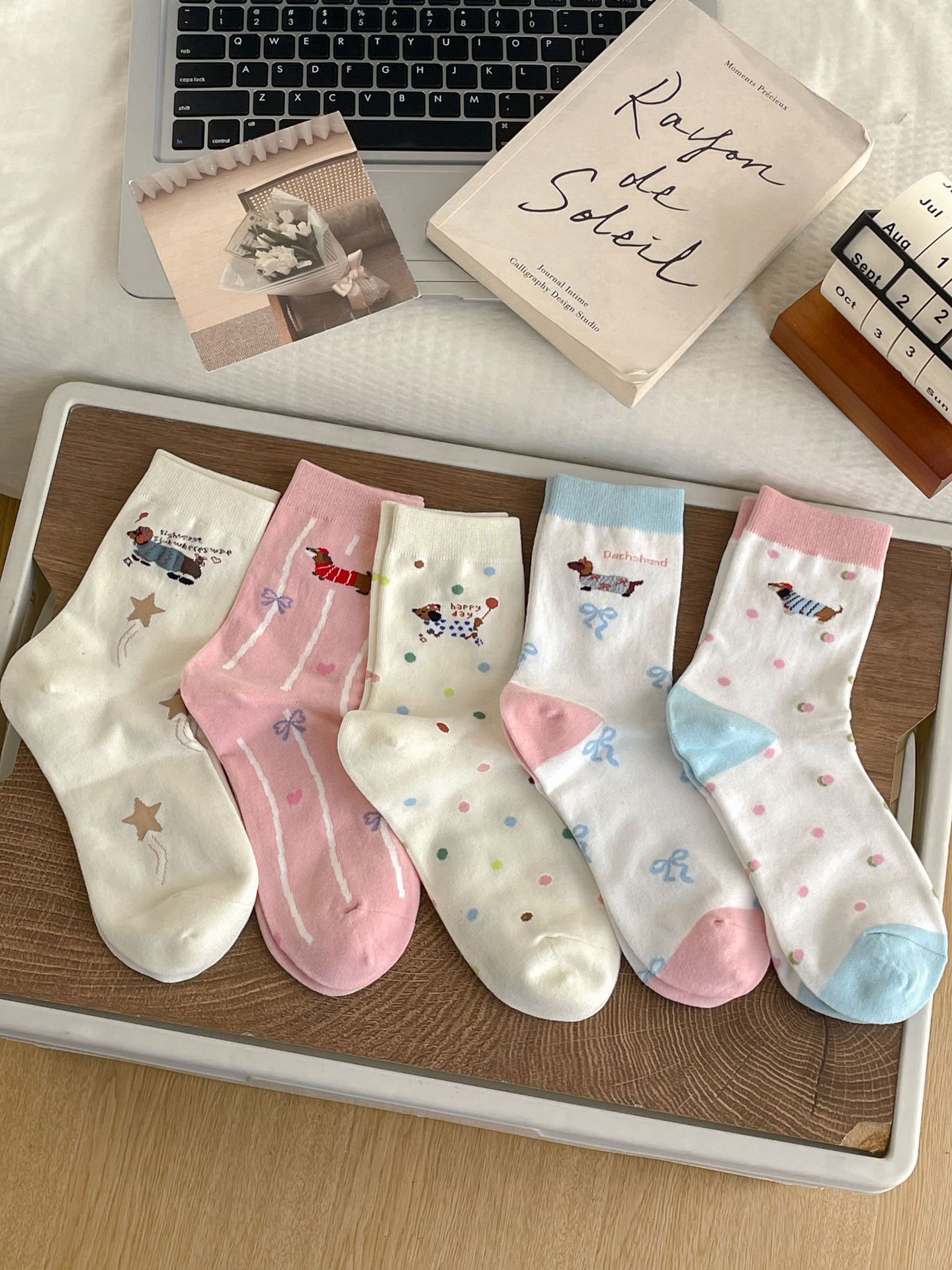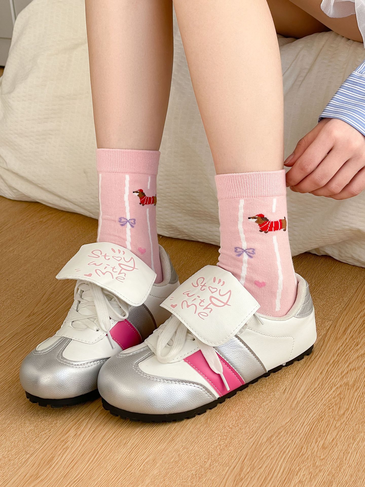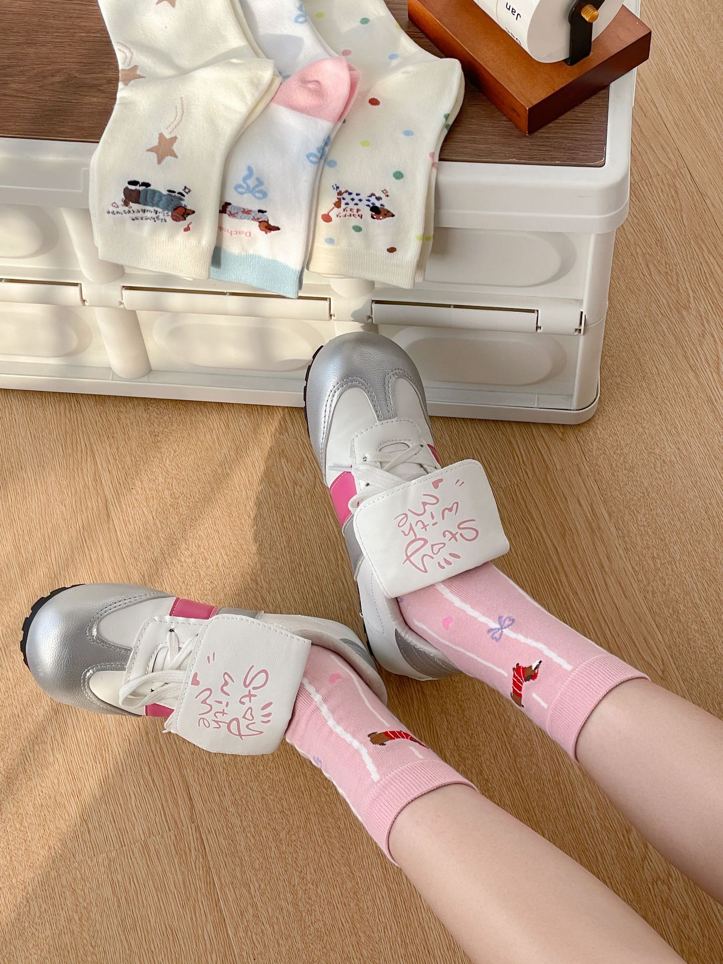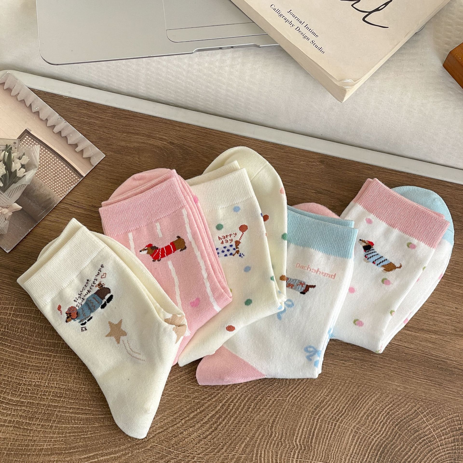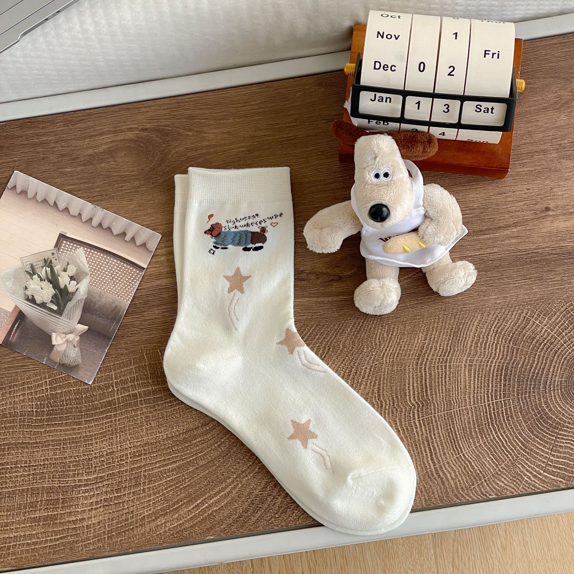 만화 소시지 강아지 양말 중간 배럴 조수 Zhuji 면화 양말 봄과 여름 일본 귀여운 소녀 스타킹 도매