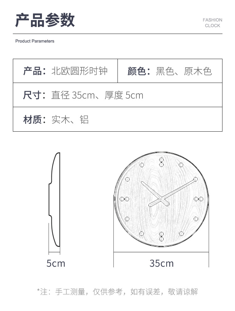Ruizhen 홈 노르딕 솔리드 우드 음소거 시계 벽 라운드 시계 거실 창조적 인 시계 벽 시계 장식품 홈